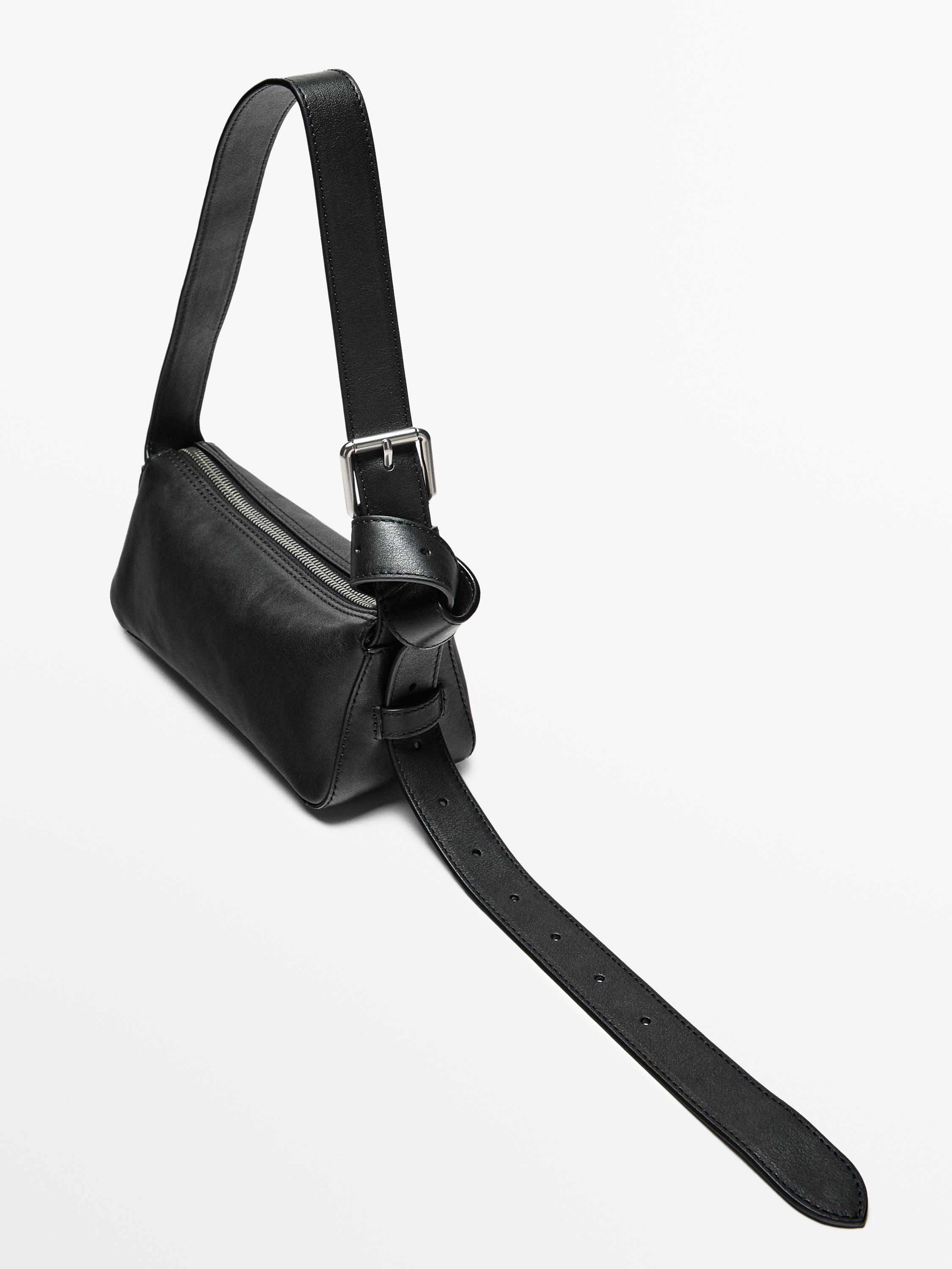 Massimo Dutti Маленькая сумка из кожи наппа с пряжкой, черный