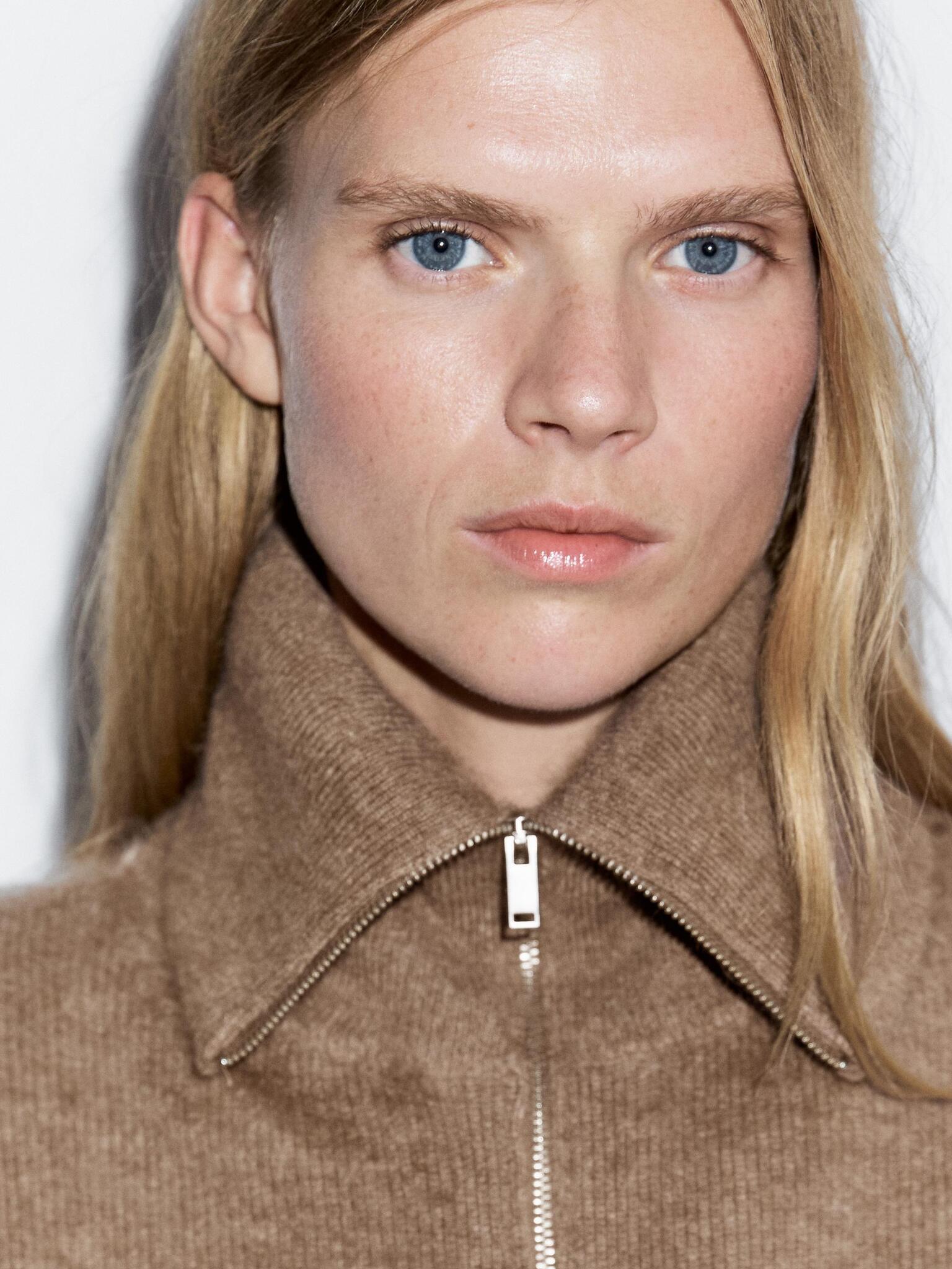 Massimo Dutti Манишка из 100% кашемира с застежкой-молнией, бежевый