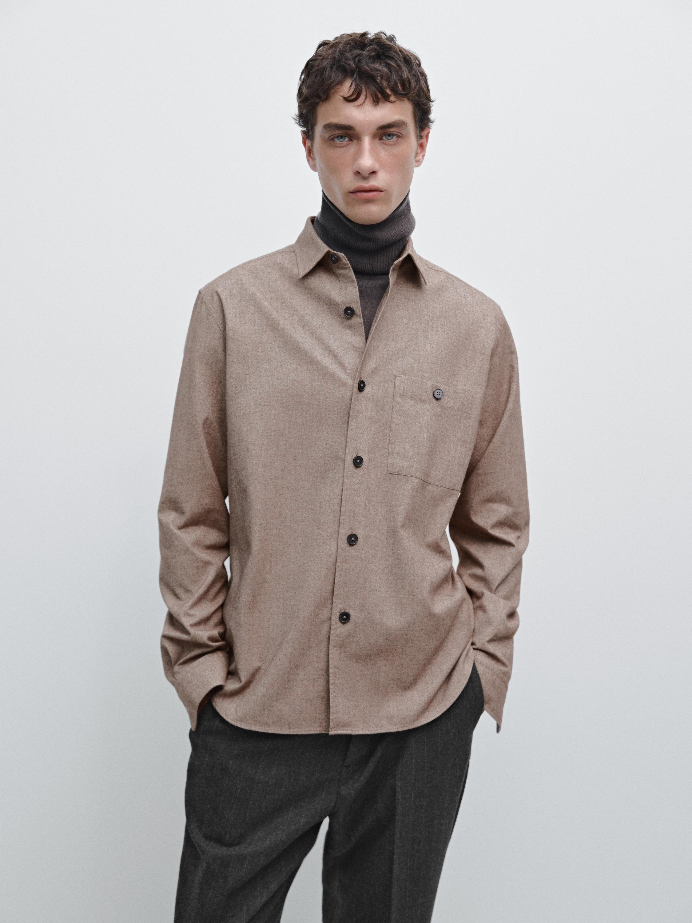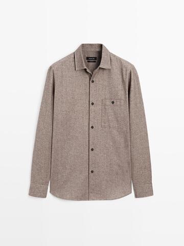 Massimo Dutti Меланжевая куртка-рубашка с карманом, экрю