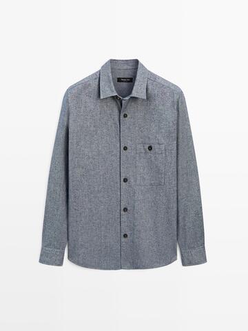 Massimo Dutti Меланжевая куртка-рубашка с карманом, линялый синий