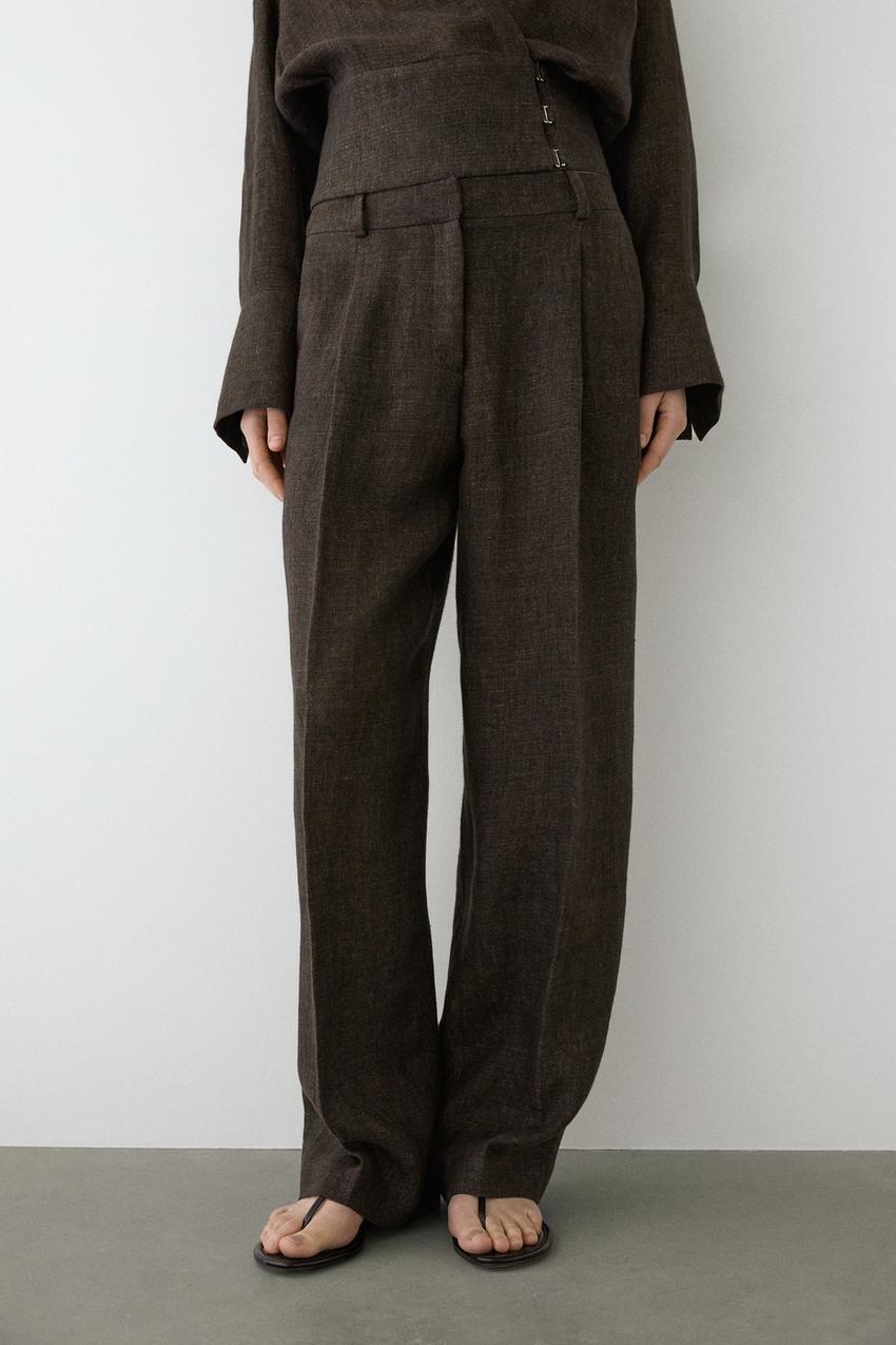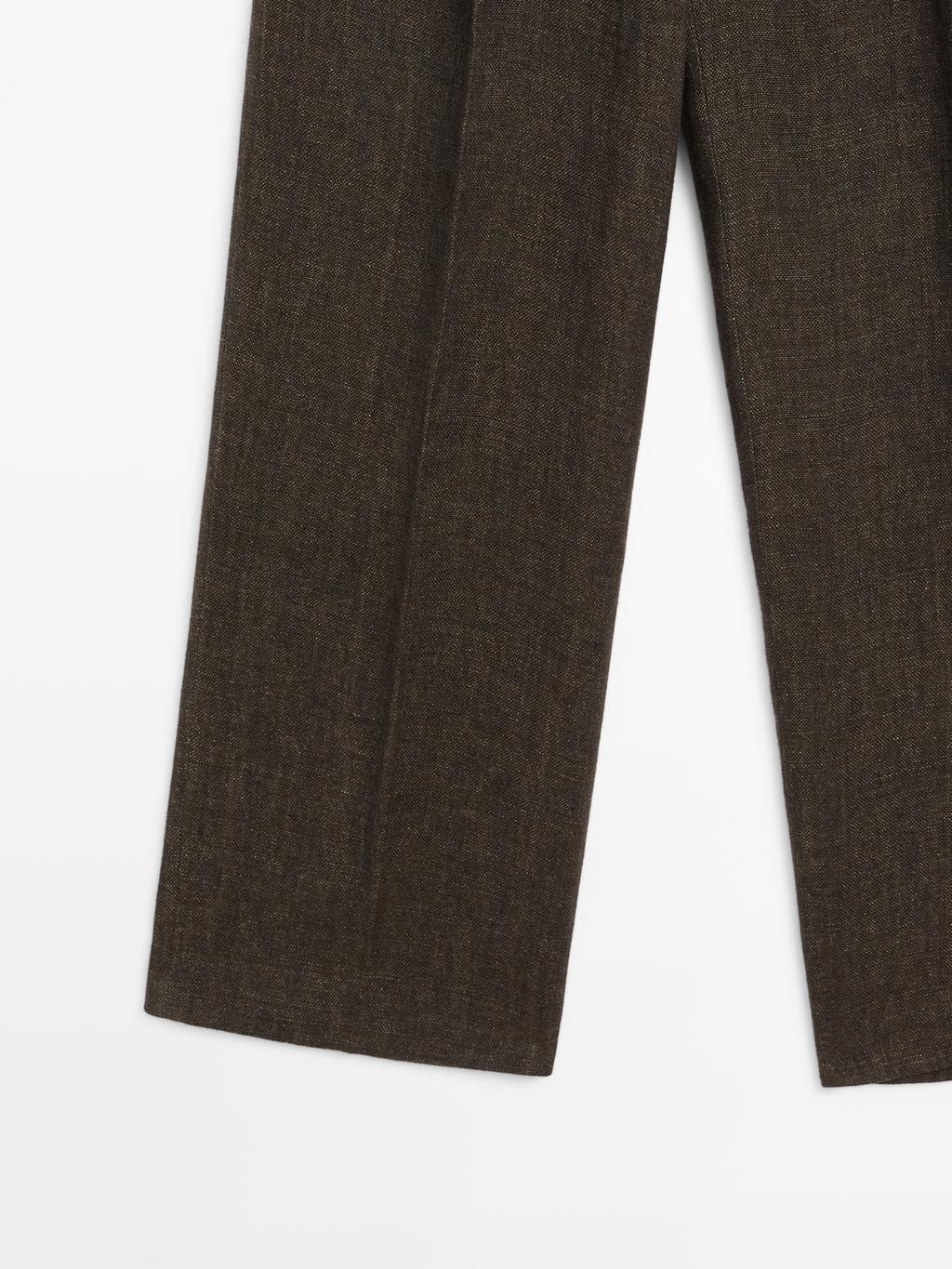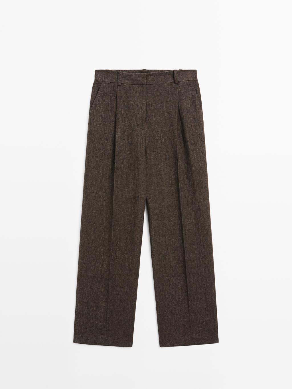 Massimo Dutti Меланжевые льняные брюки с вытачками, серо-коричневый