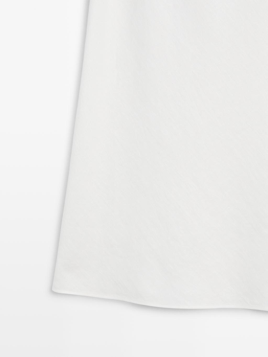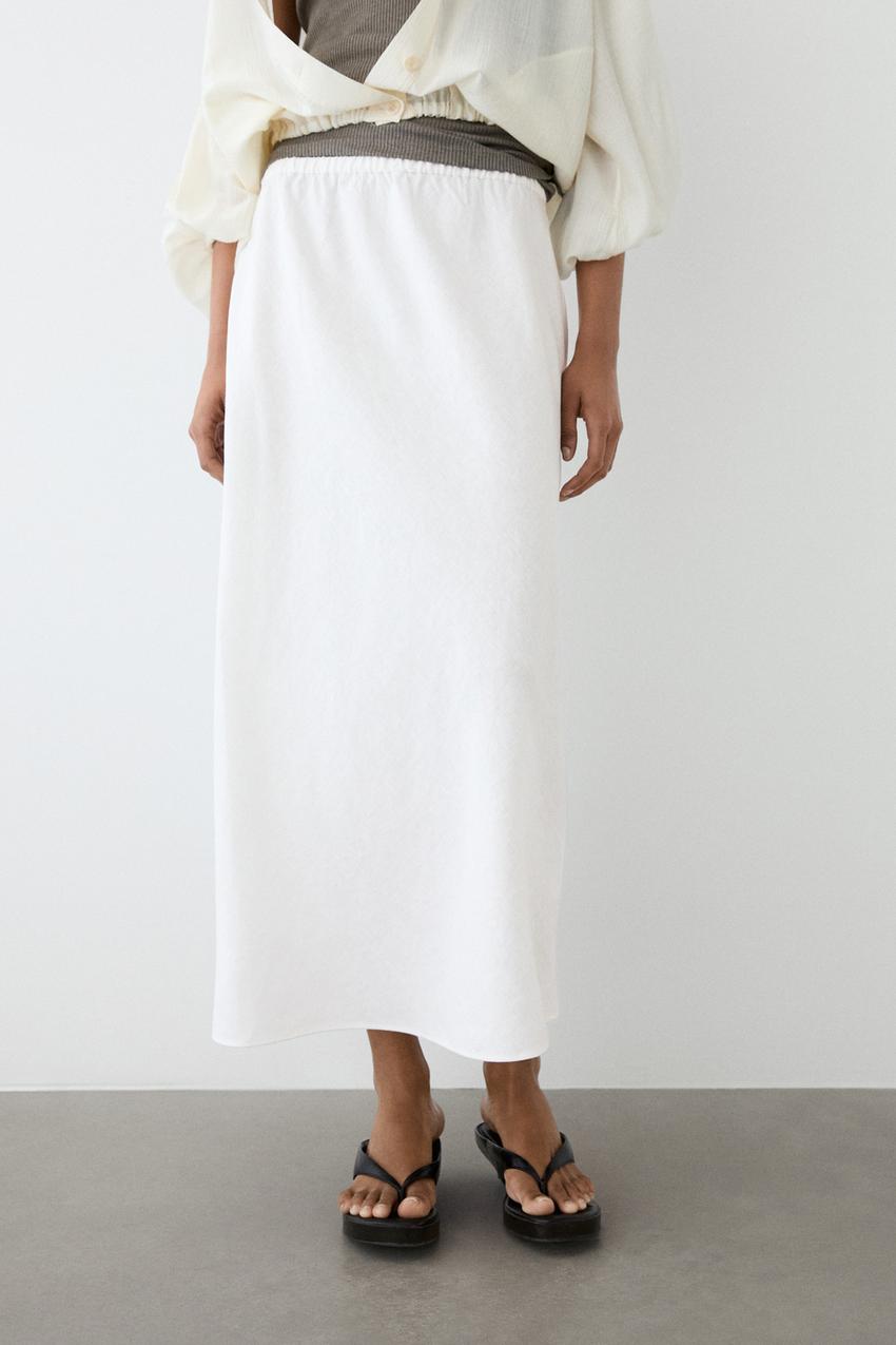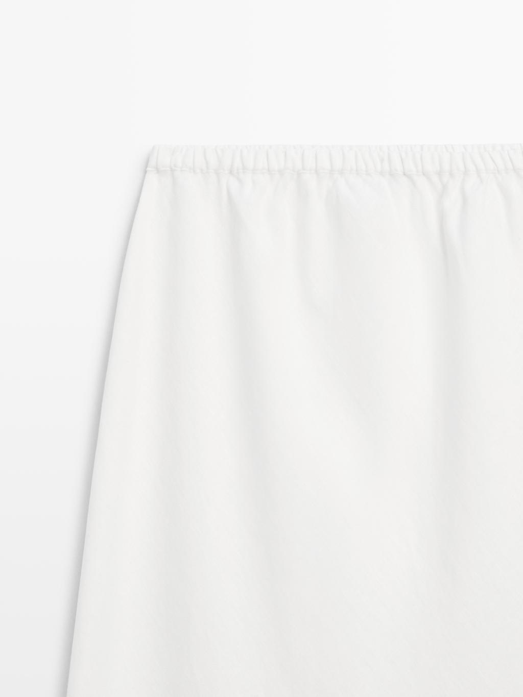 Massimo Dutti Миди-юбка из 100% льна с эластичным поясом, белый