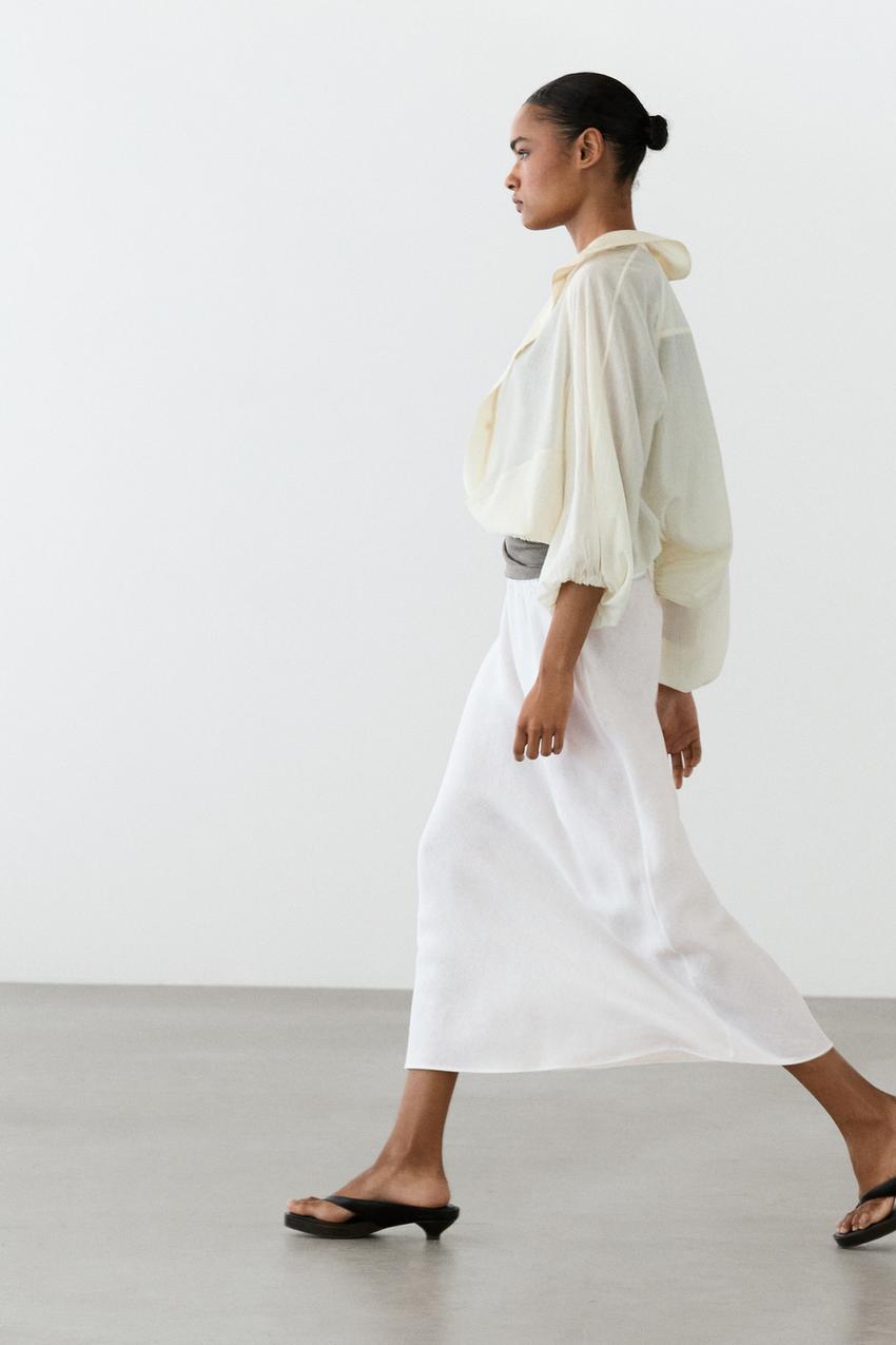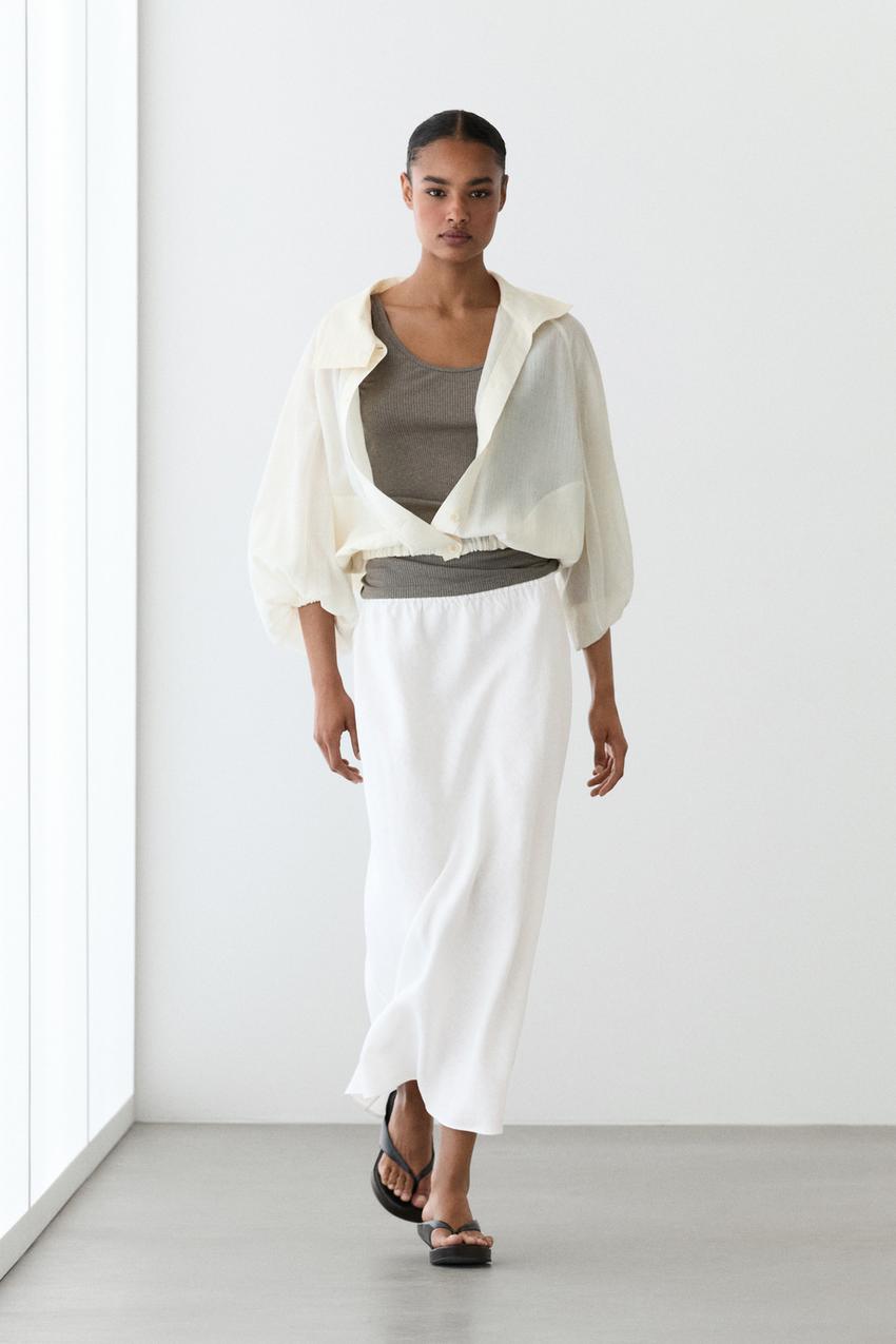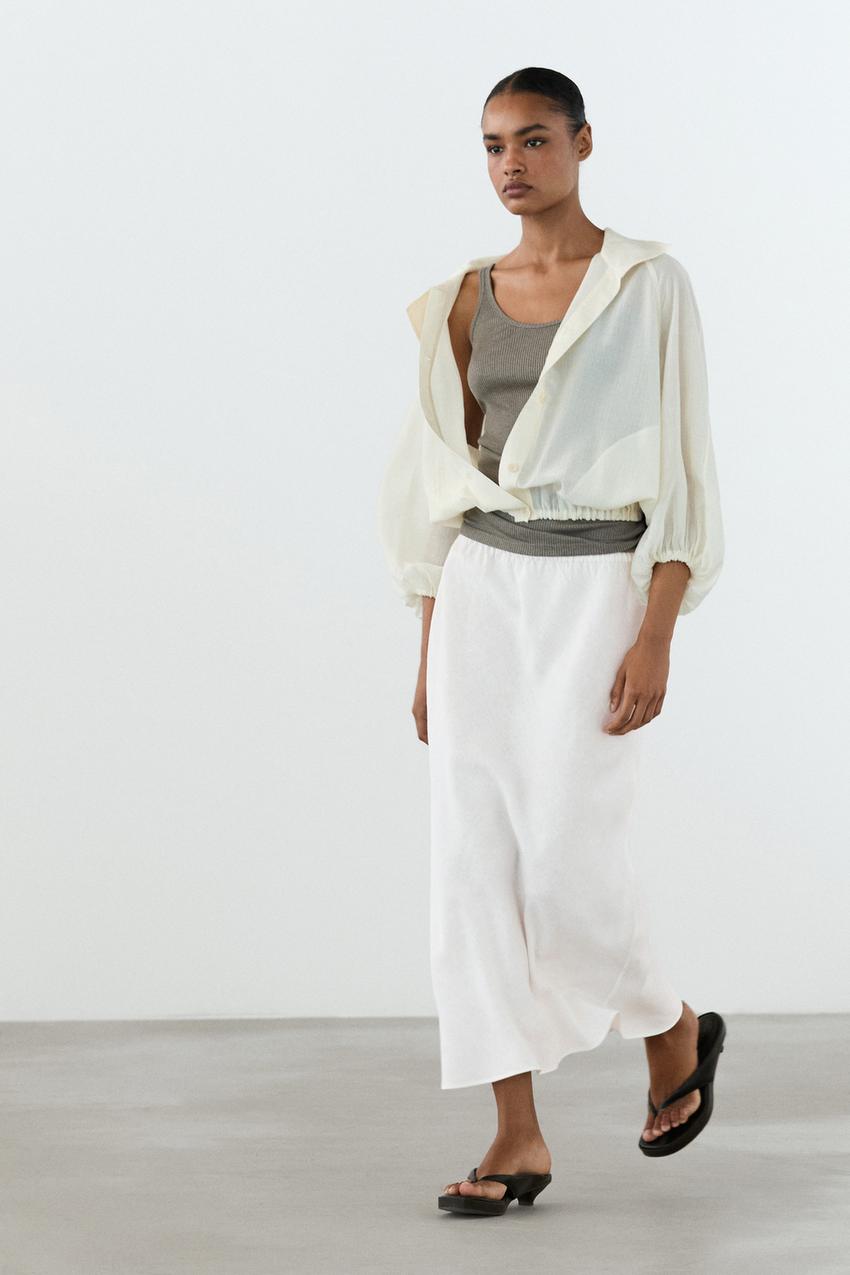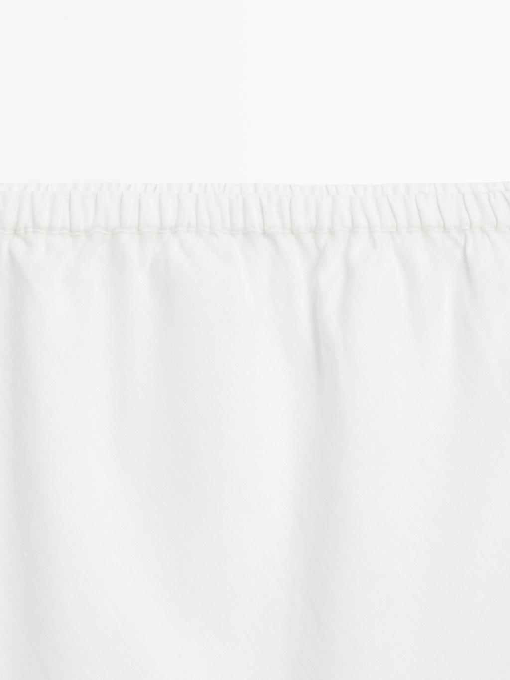 Massimo Dutti Миди-юбка из 100% льна с эластичным поясом, белый