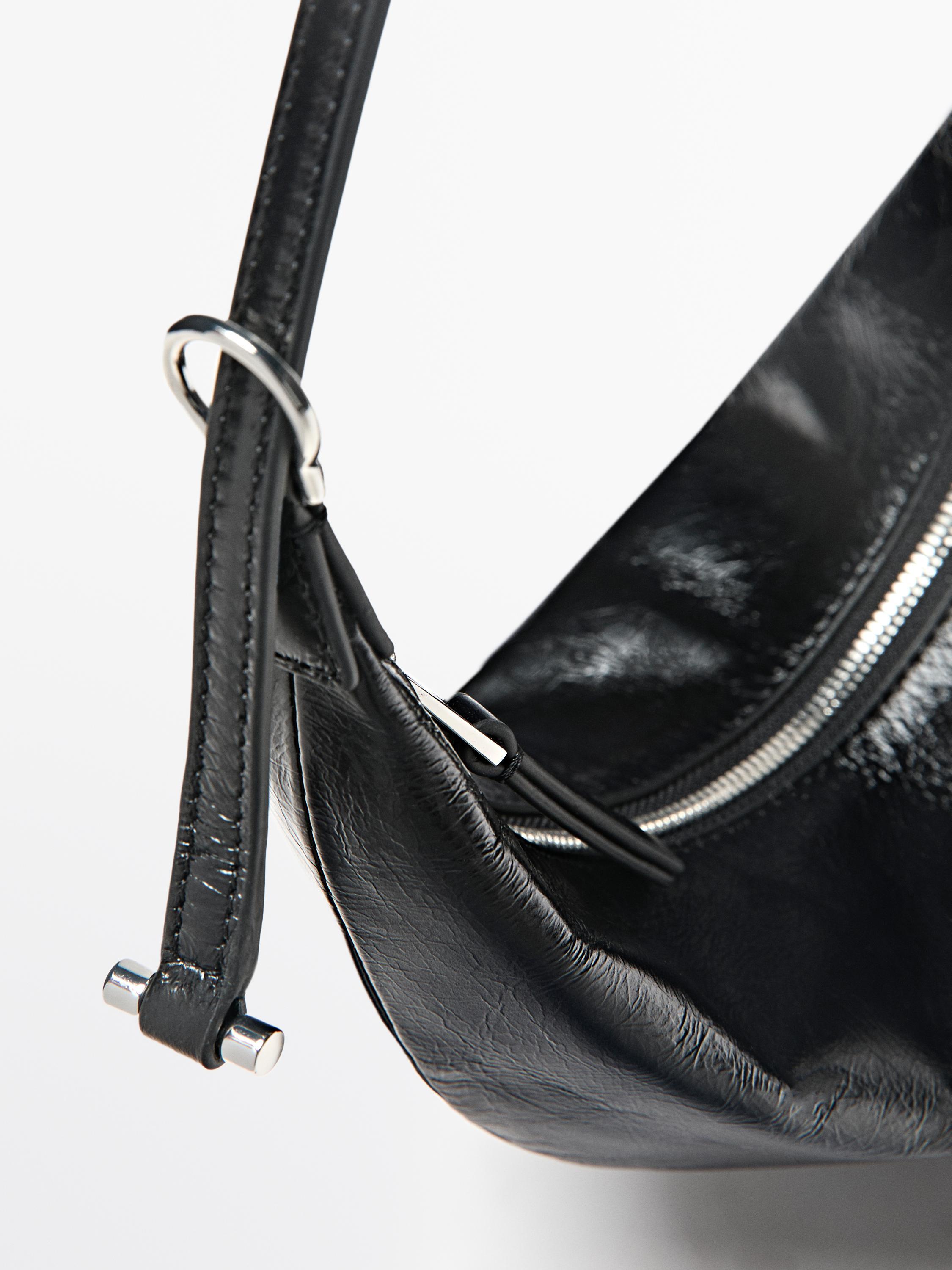 Massimo Dutti Мини-сумка из кожи наппа, черный