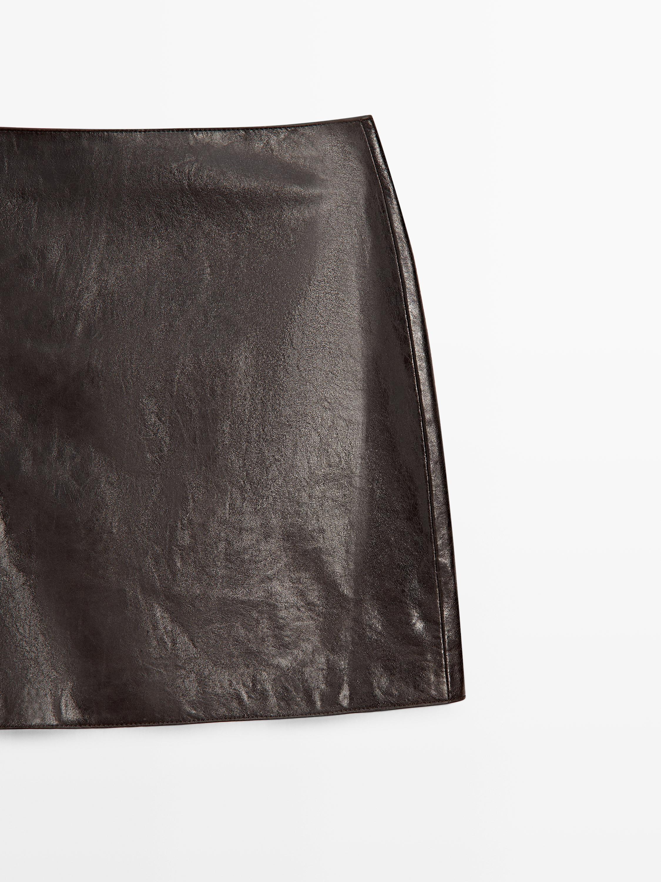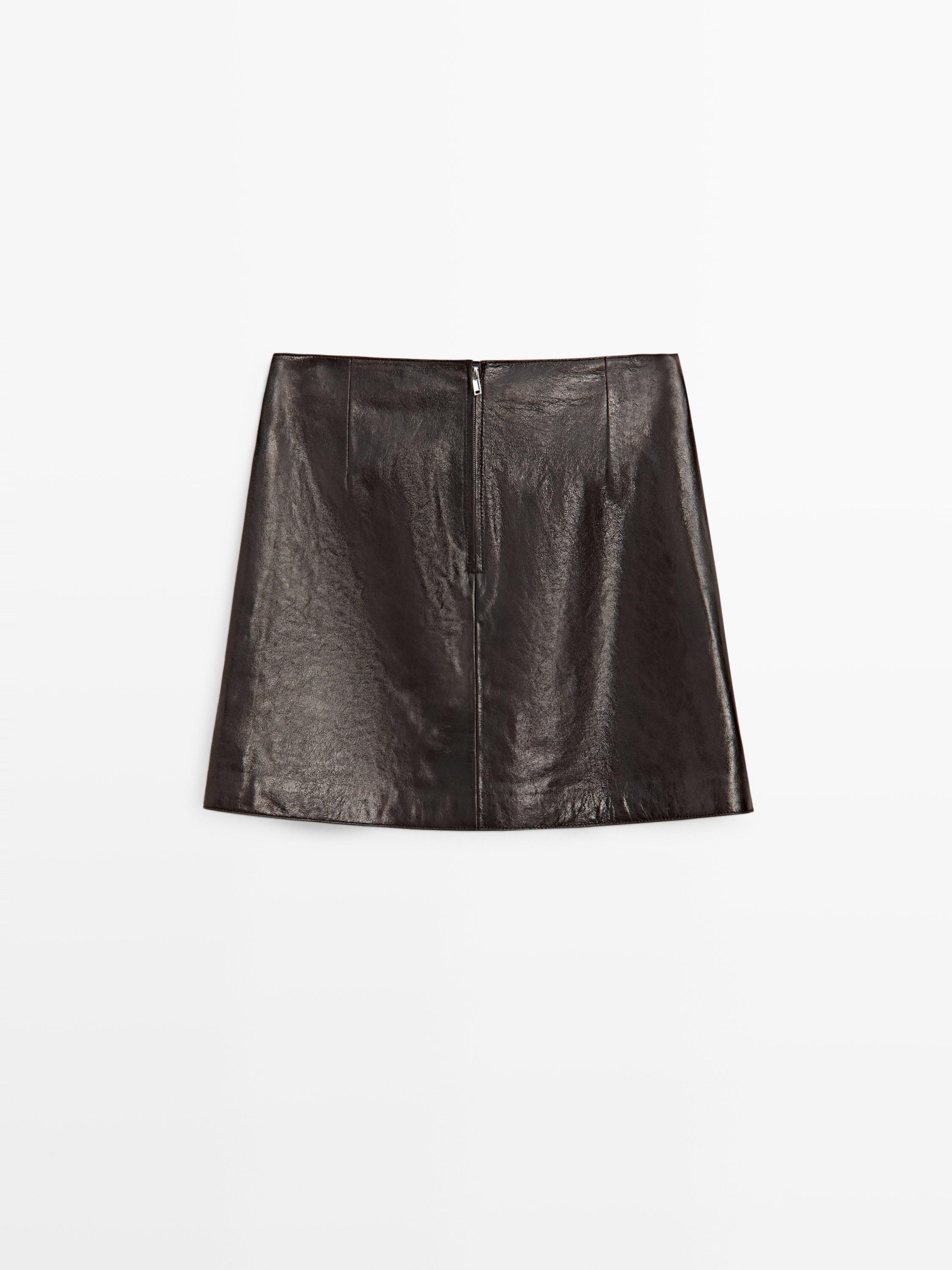 Massimo Dutti Мини-юбка из кожи наппа, коричневый