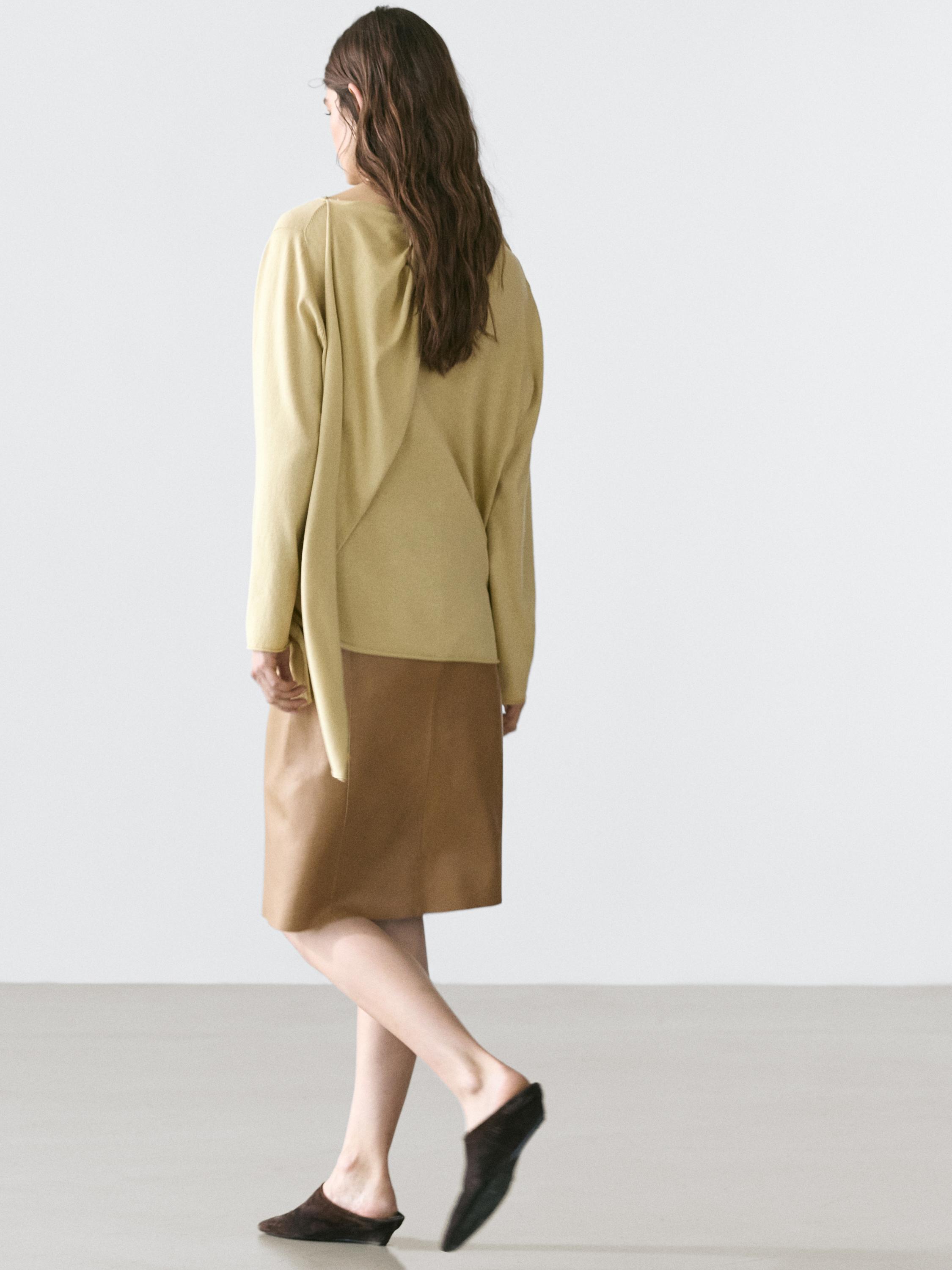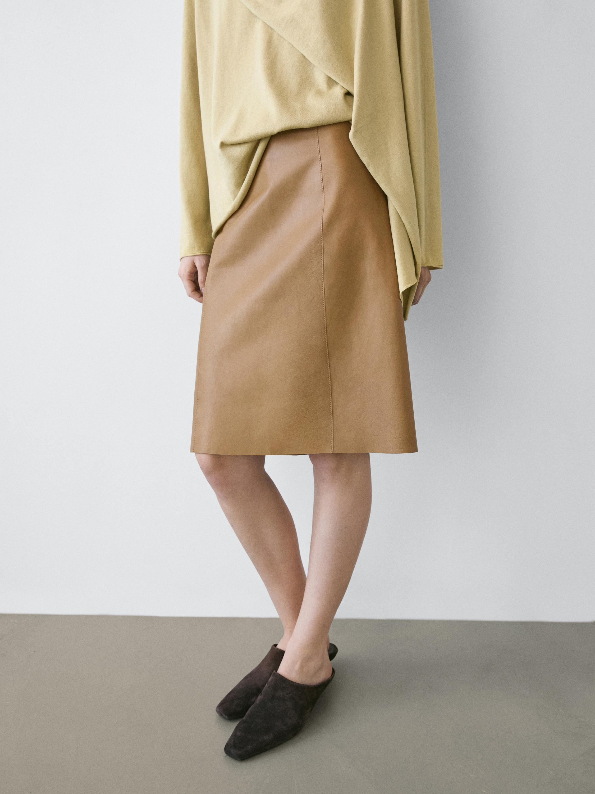 Massimo Dutti Мини-юбка из кожи наппа, цвет верблюжьей шерсти
