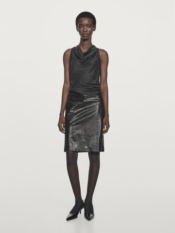 Massimo Dutti Мини-юбка из кожи с анималистичным принтом, черный