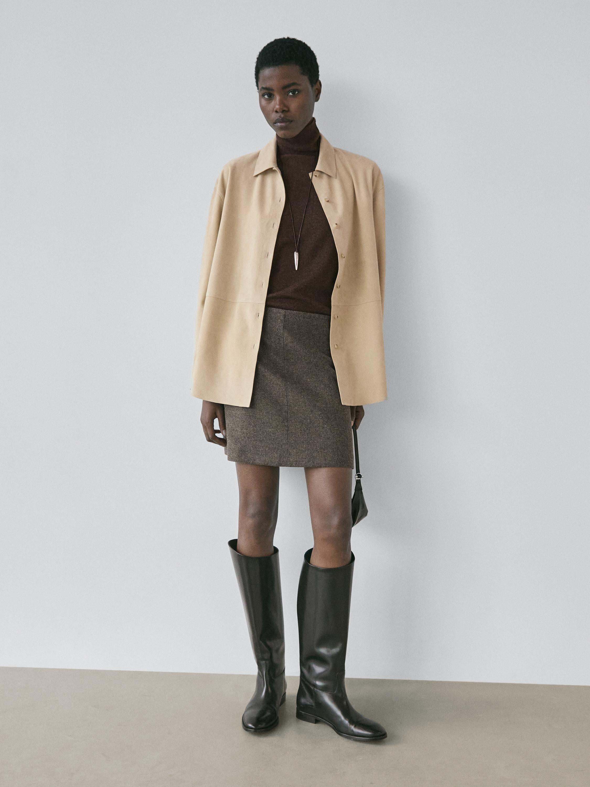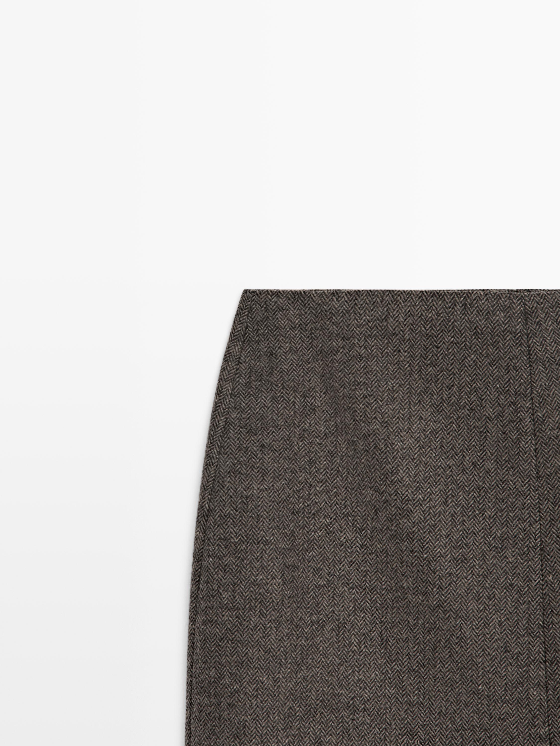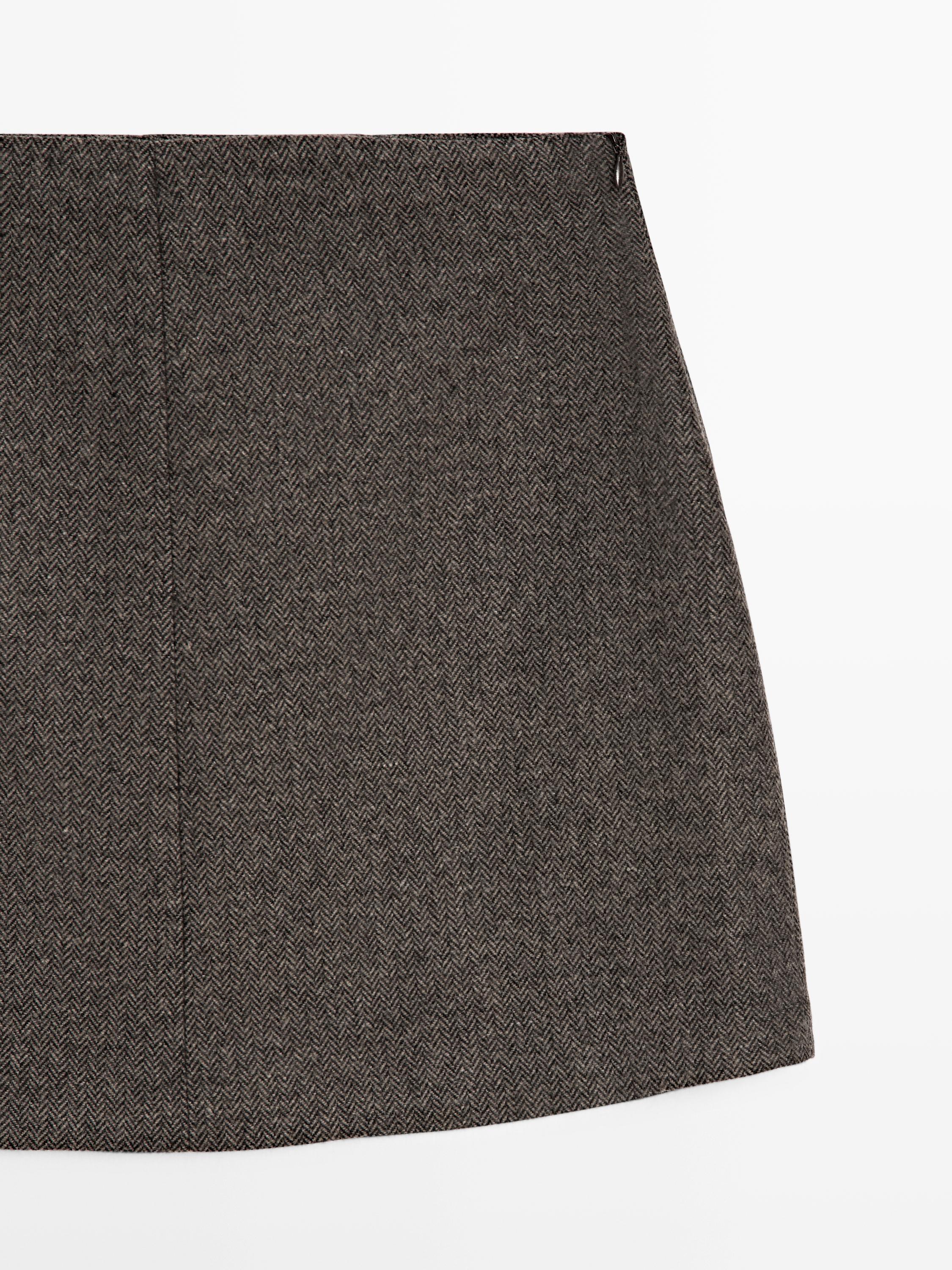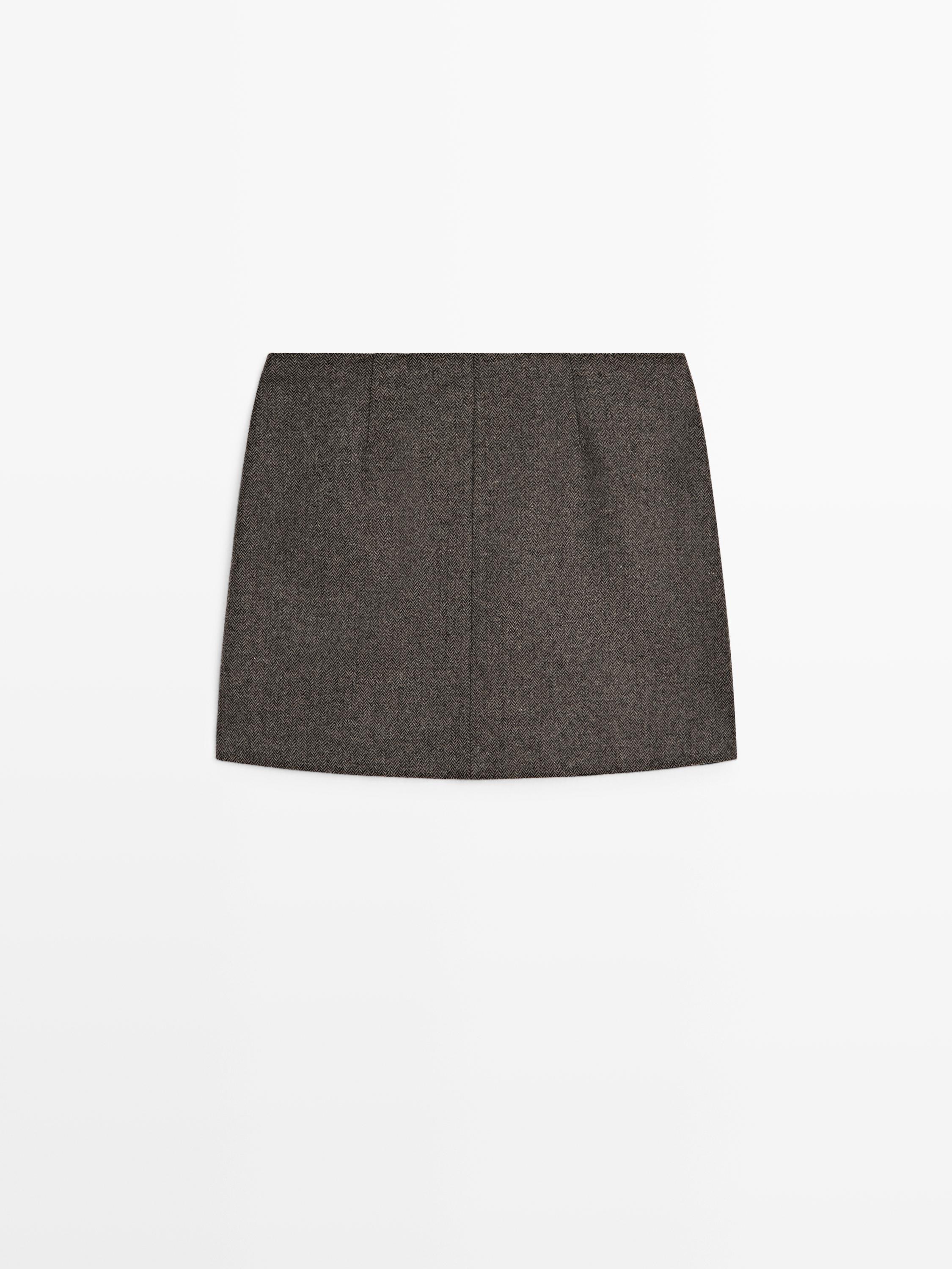 Massimo Dutti Мини-юбка из шерстяной смеси, шоколадный