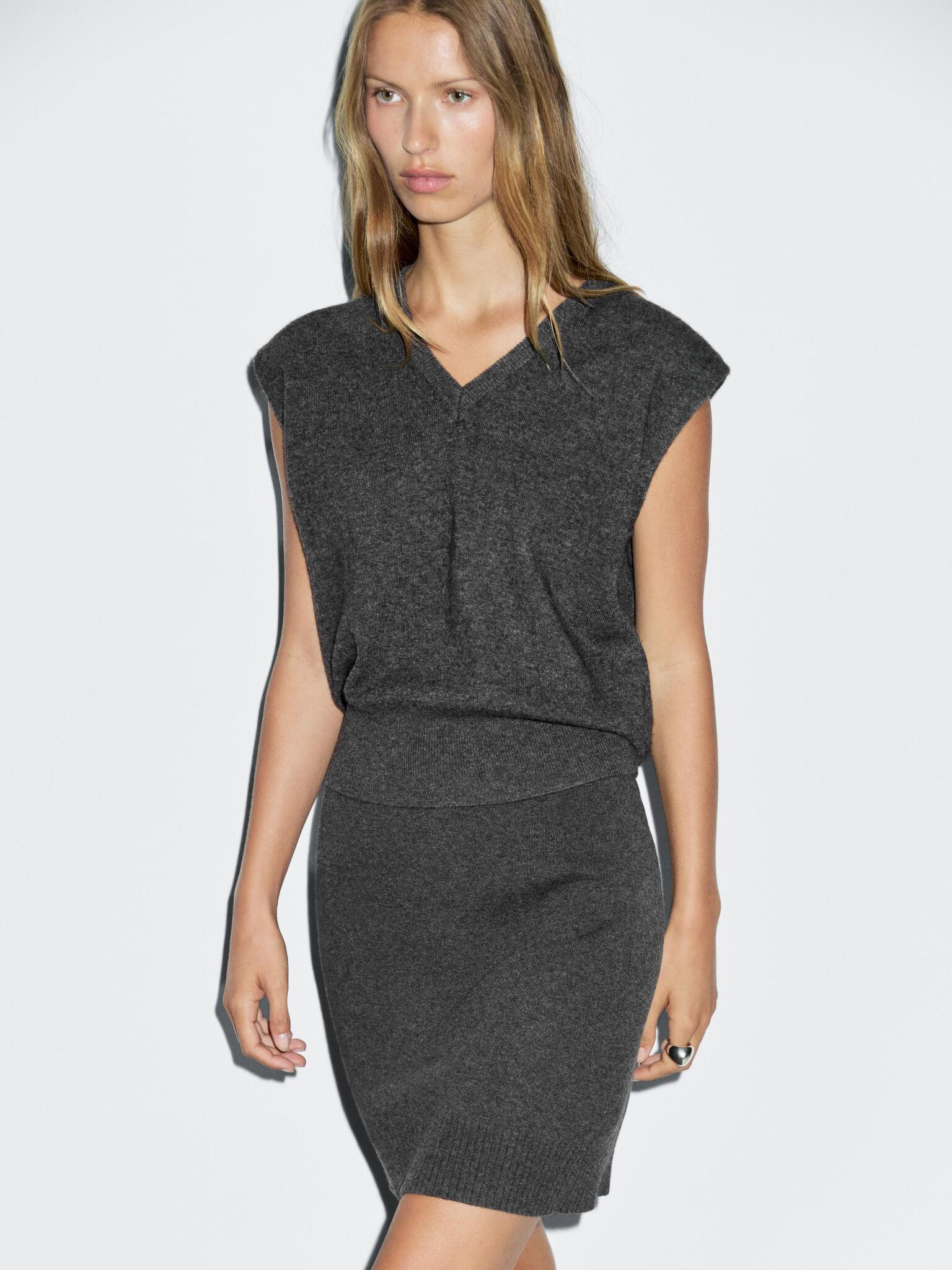 Massimo Dutti Мини-юбка из смесовой шерсти, серый