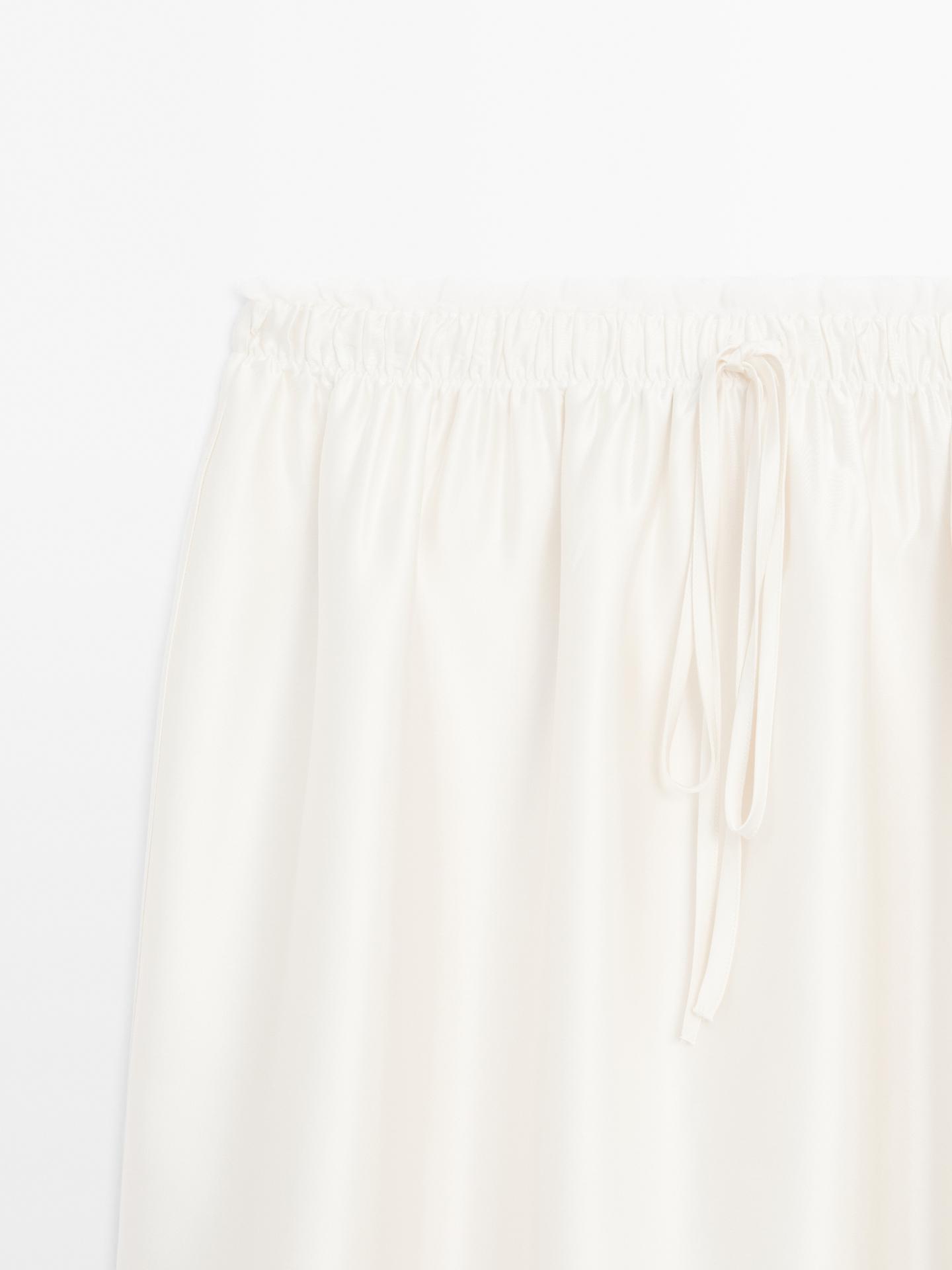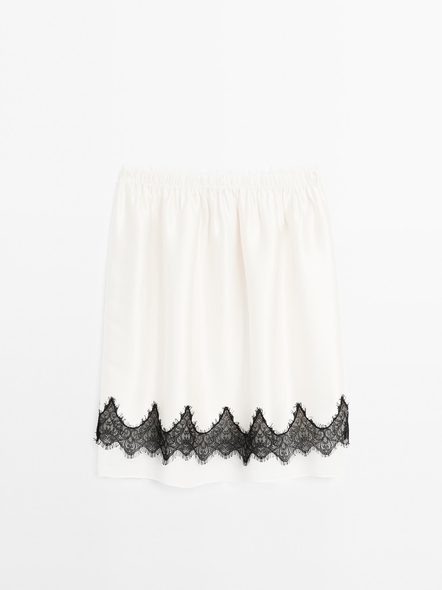 Massimo Dutti Мини-юбка с контрастной кружевной отделкой, кремовый