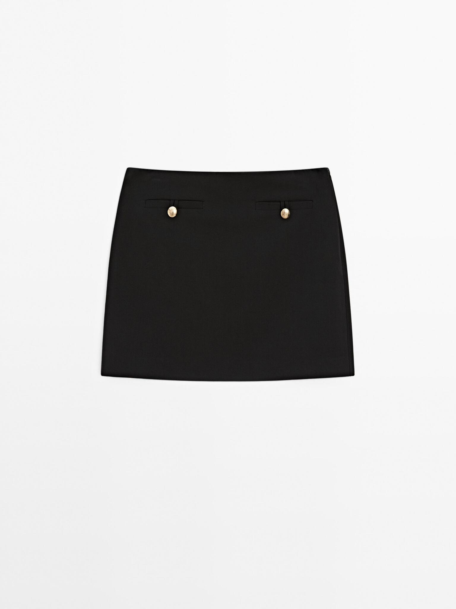 Massimo Dutti Мини-юбка с пуговицами, черный