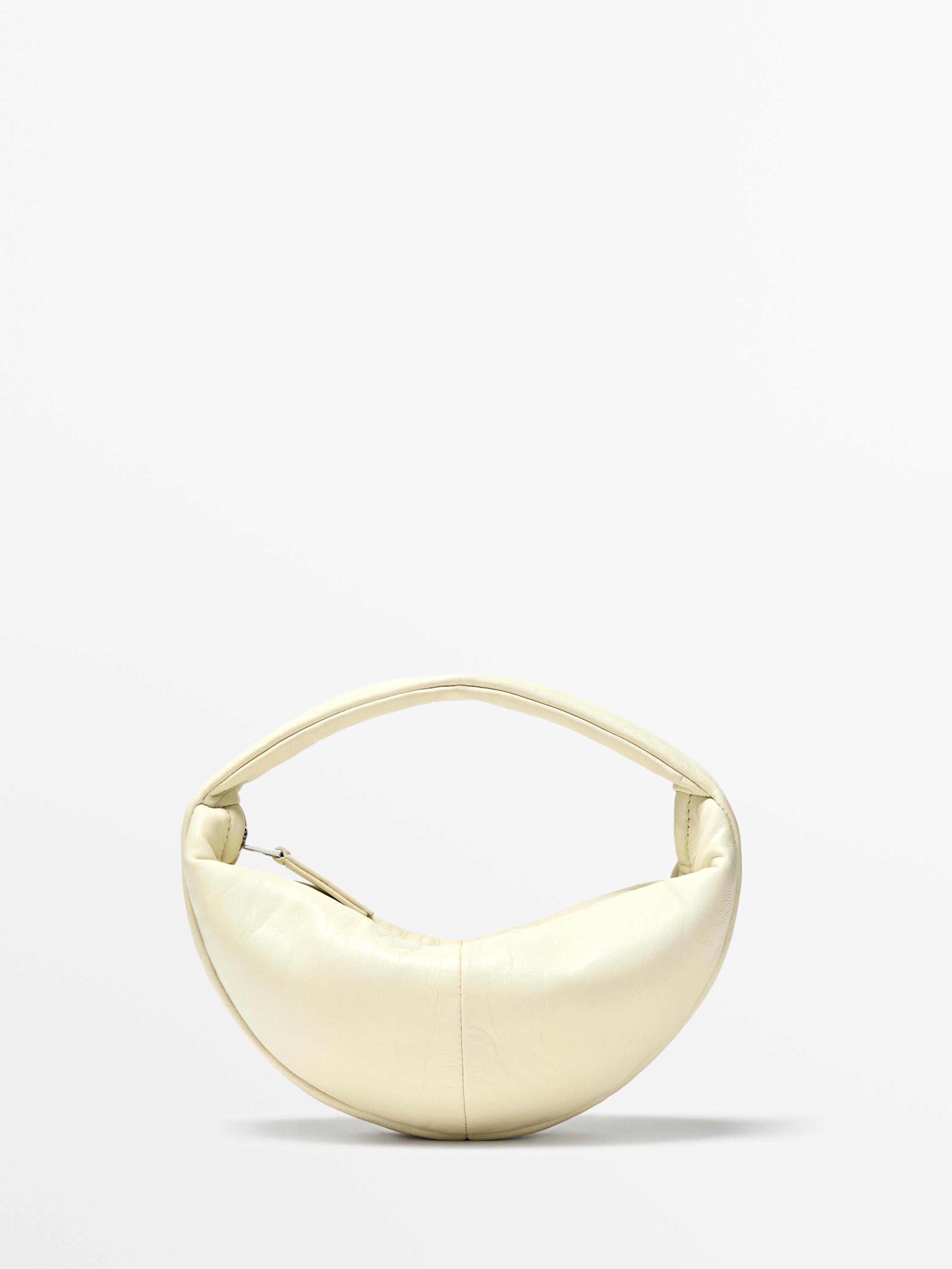 Massimo Dutti Миниатюрная сумка-полумесяц из кожи наппа, белый