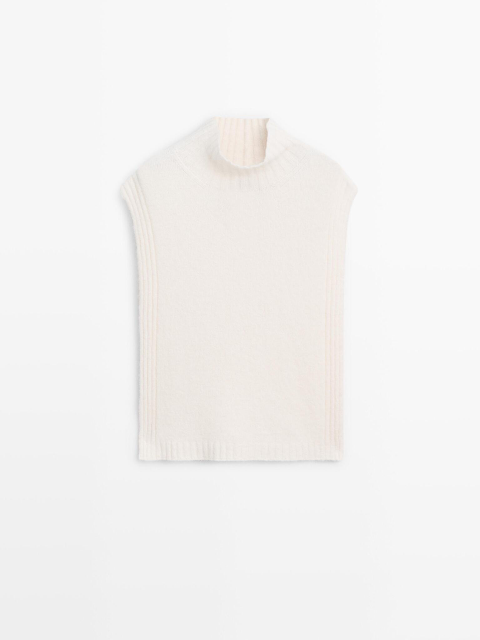 Massimo Dutti Накидка без рукавов с высоким воротником, натуральный/кремовый
