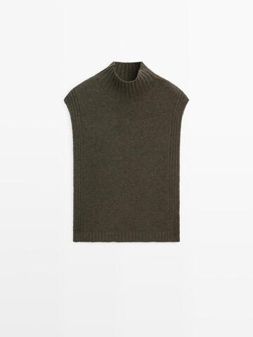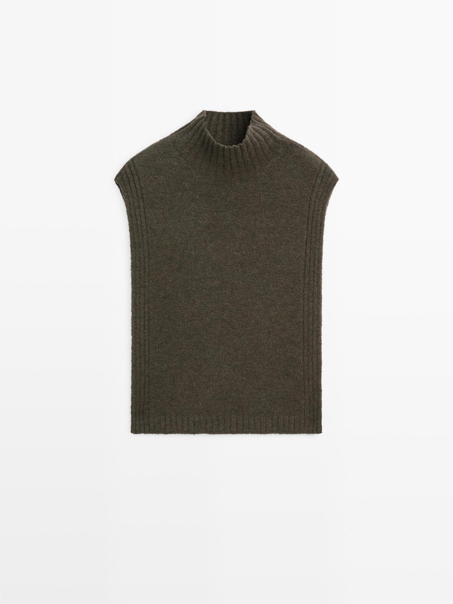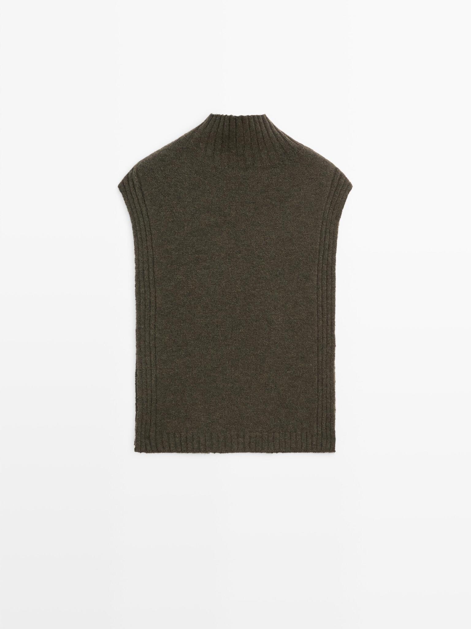 Massimo Dutti Накидка без рукавов с высоким воротником, зеленый