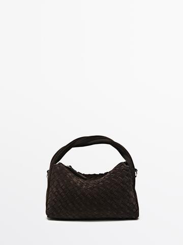 Massimo Dutti Небольшая плетеная сумка из натуральной кожи, коричневый