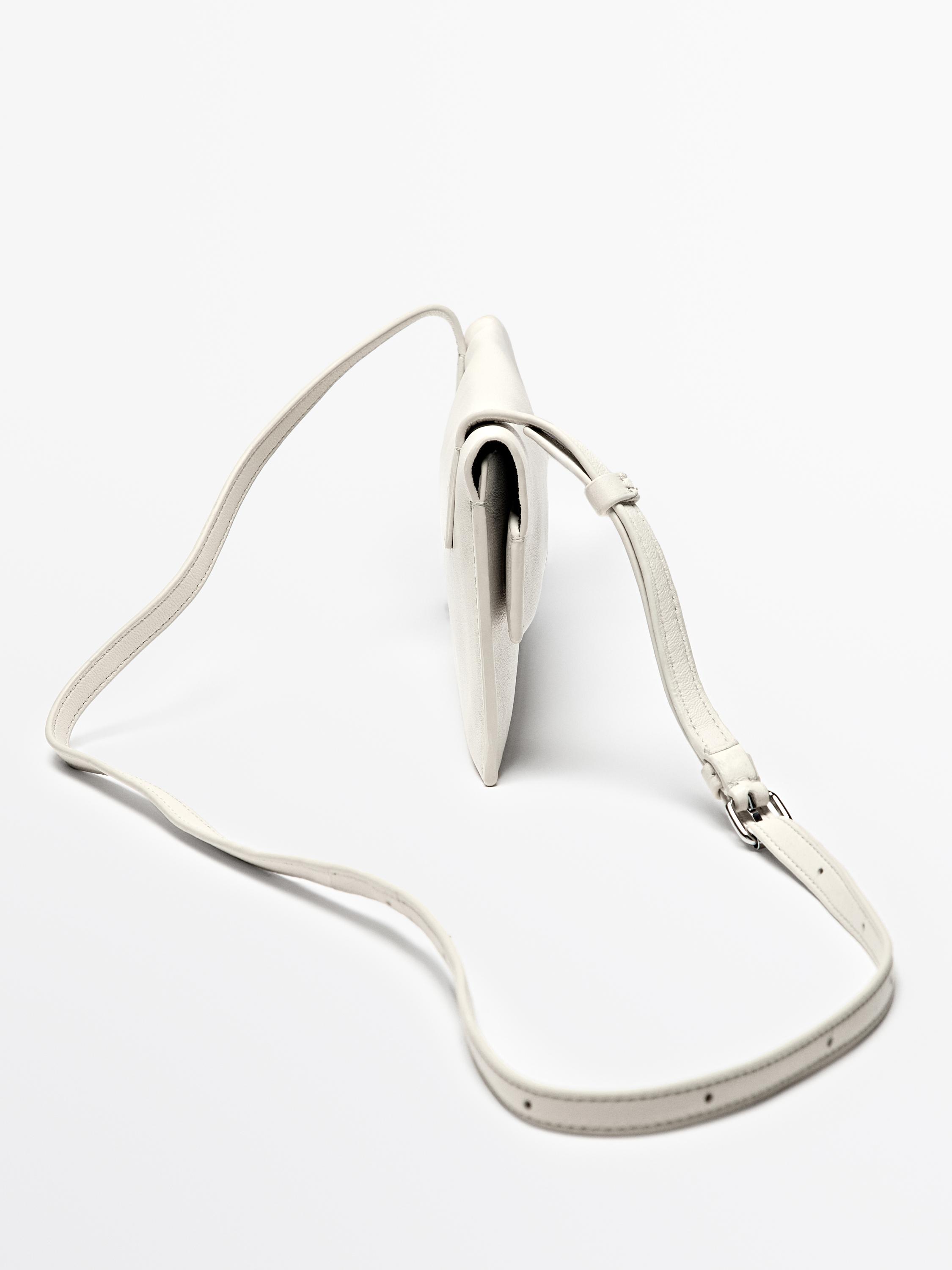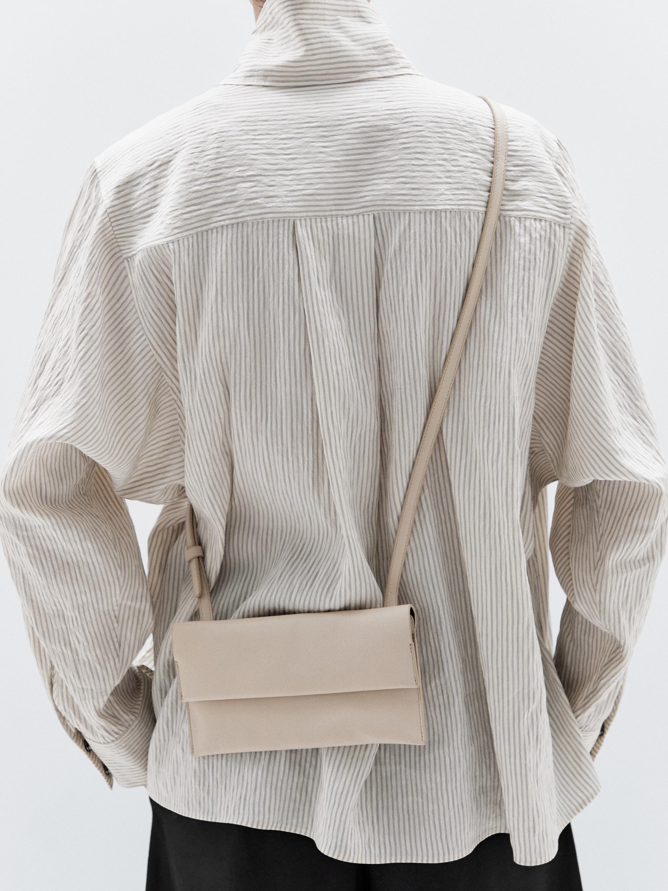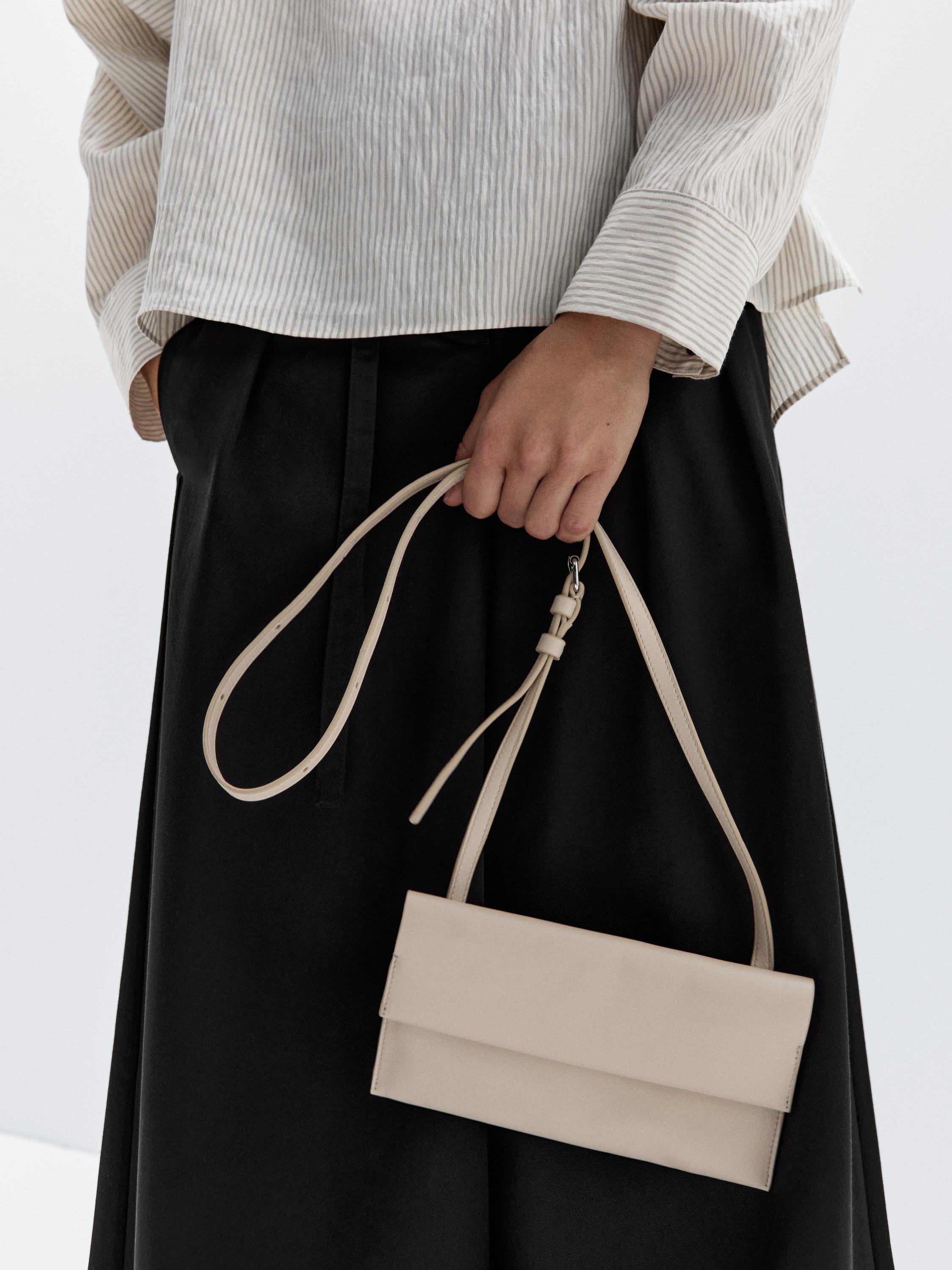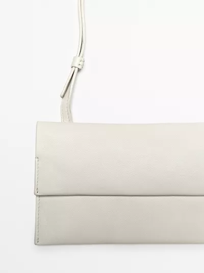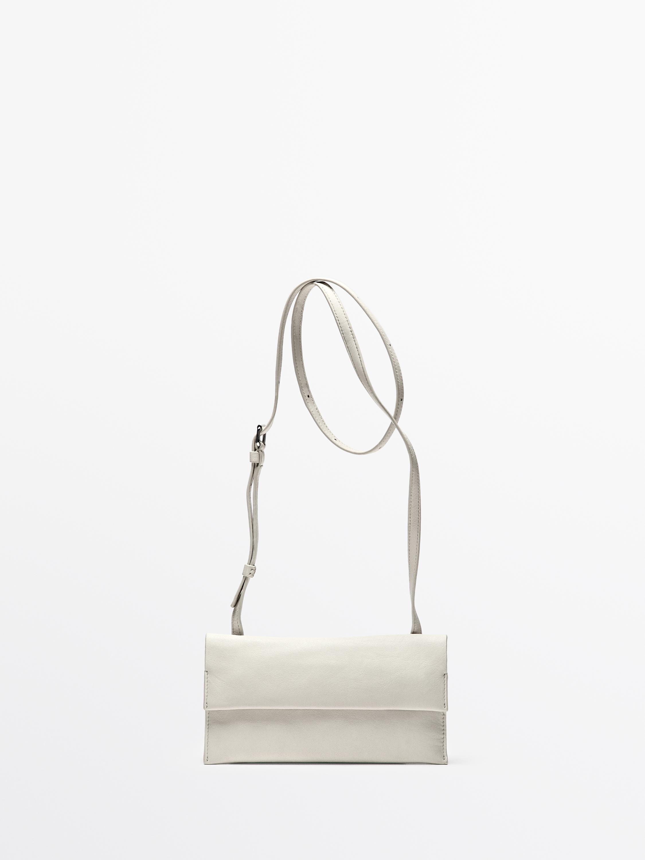 Massimo Dutti Небольшая сумка из кожи наппа, кремовый