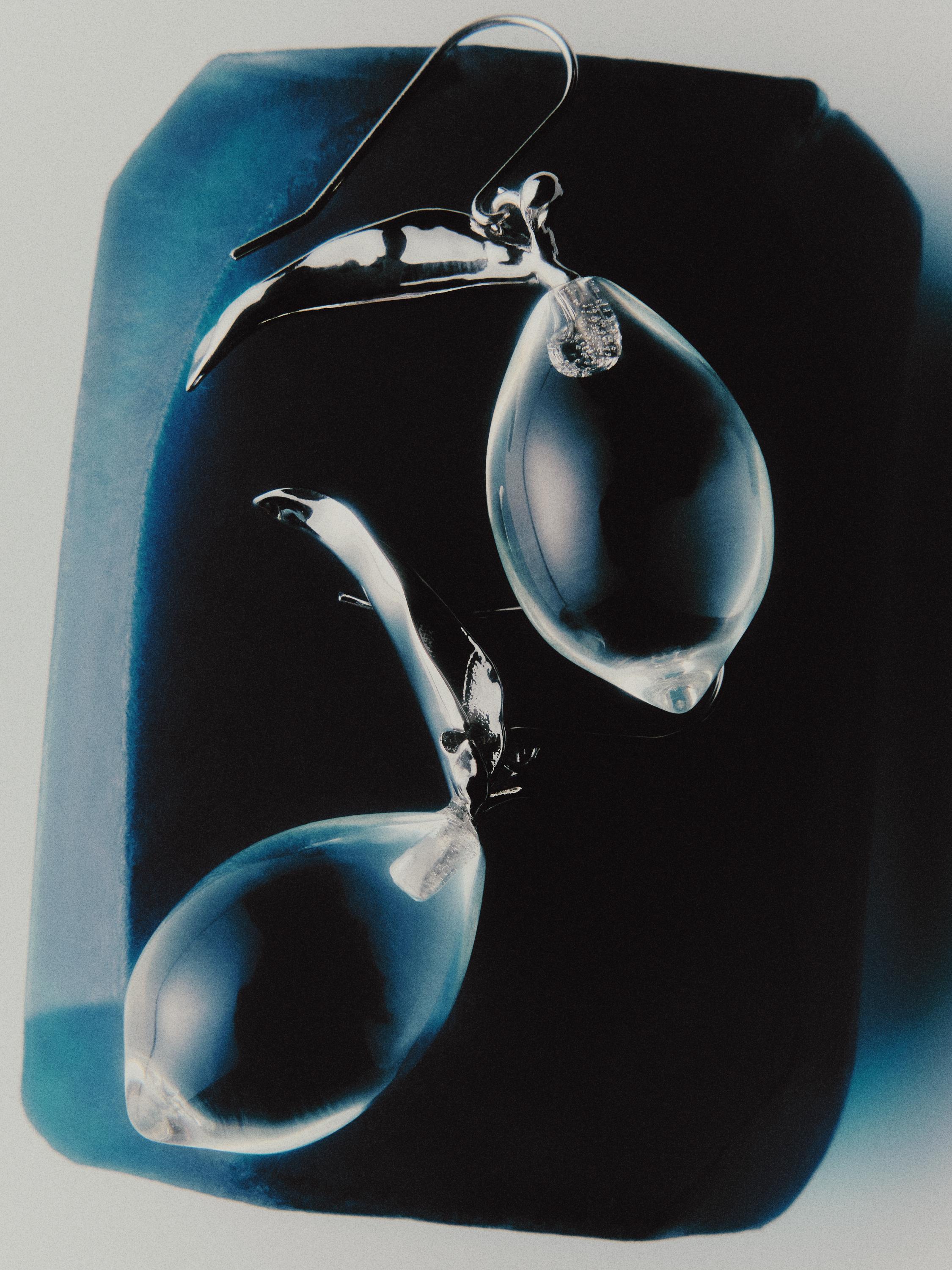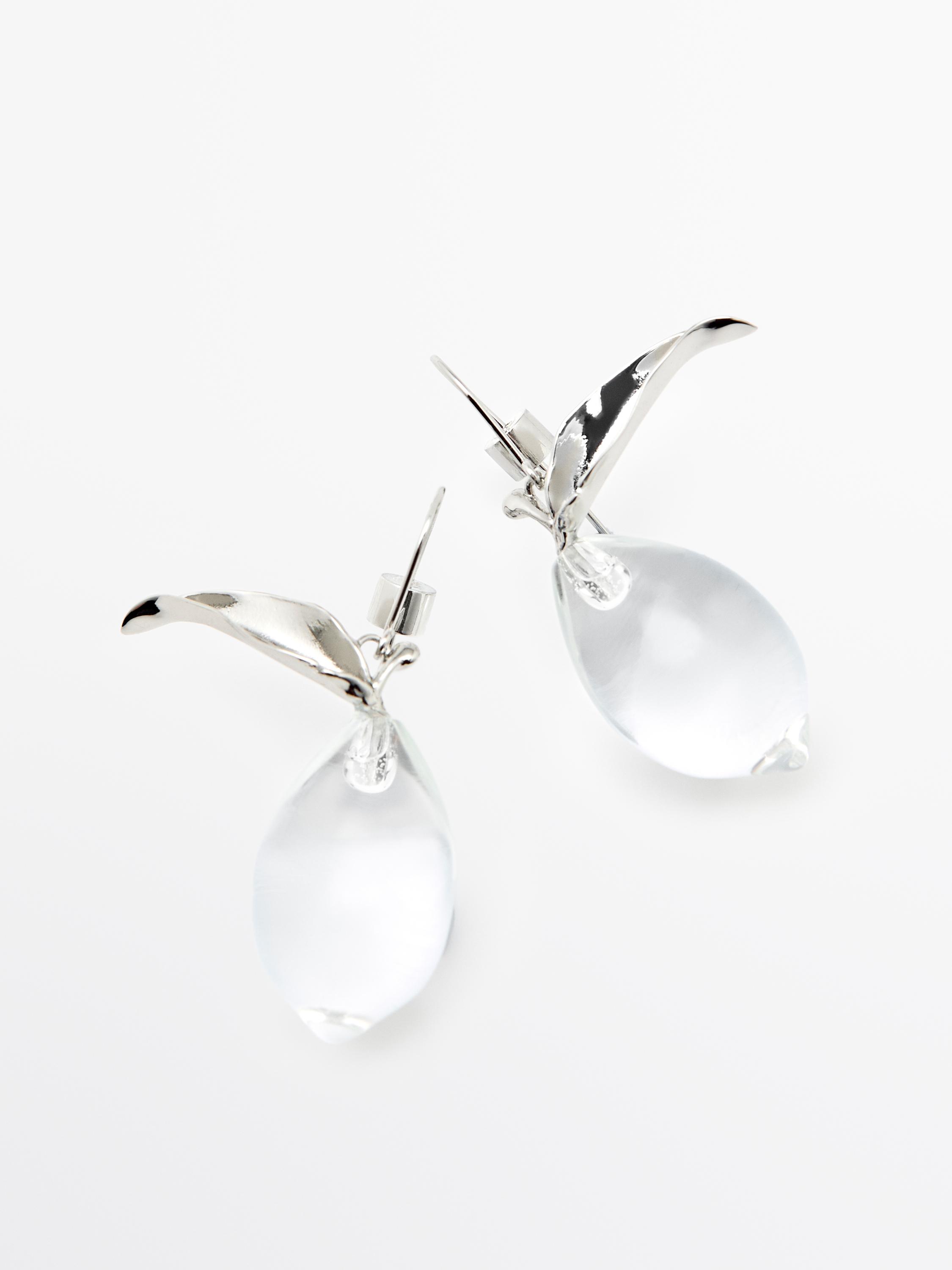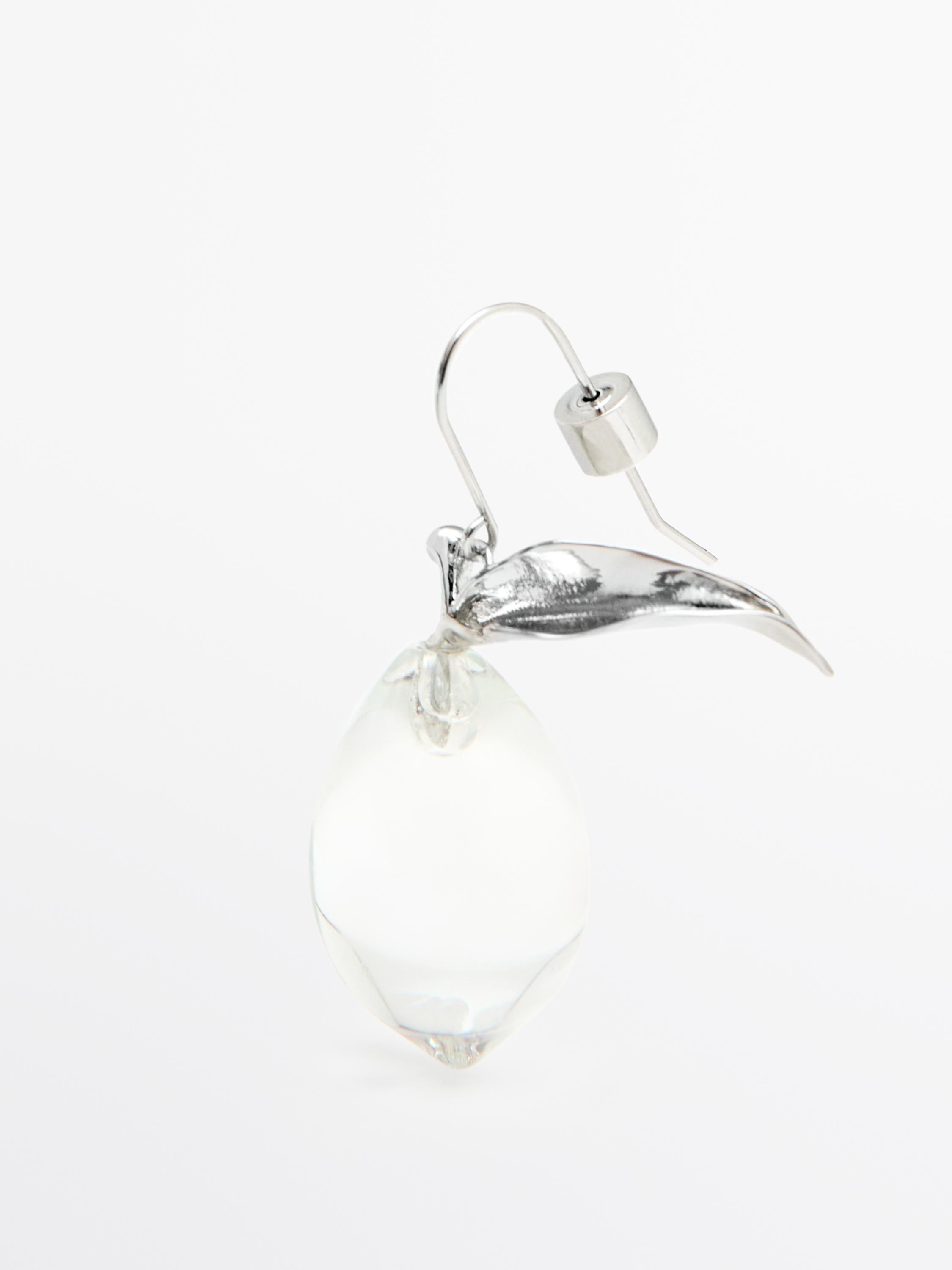 Massimo Dutti Небольшие серьги «Лимон» из стекла, серебряный