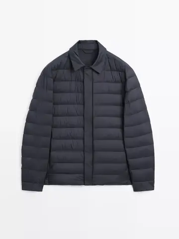 Massimo Dutti Непромокаемая легкая парка из смесового пуха, морской темно-синий