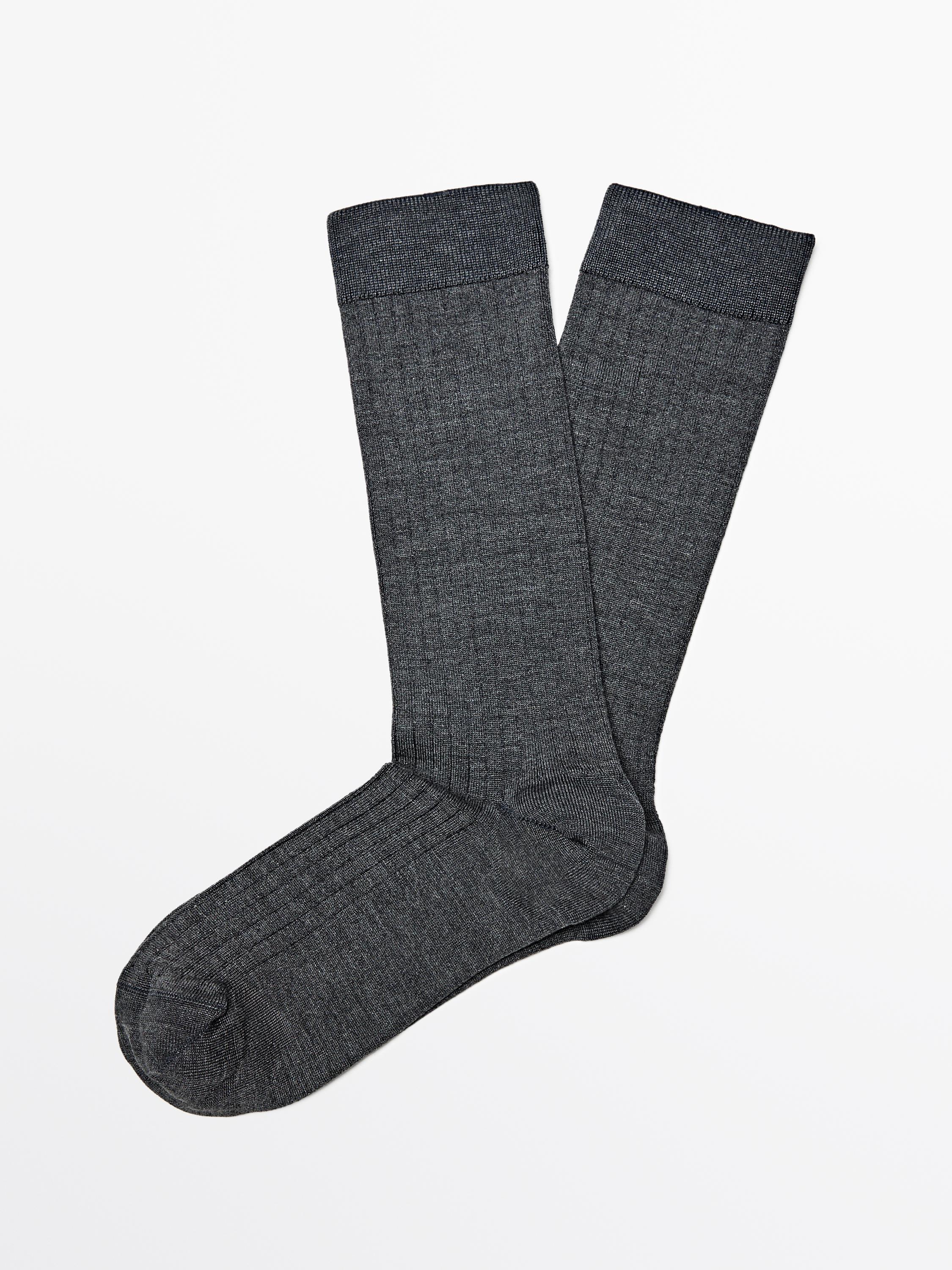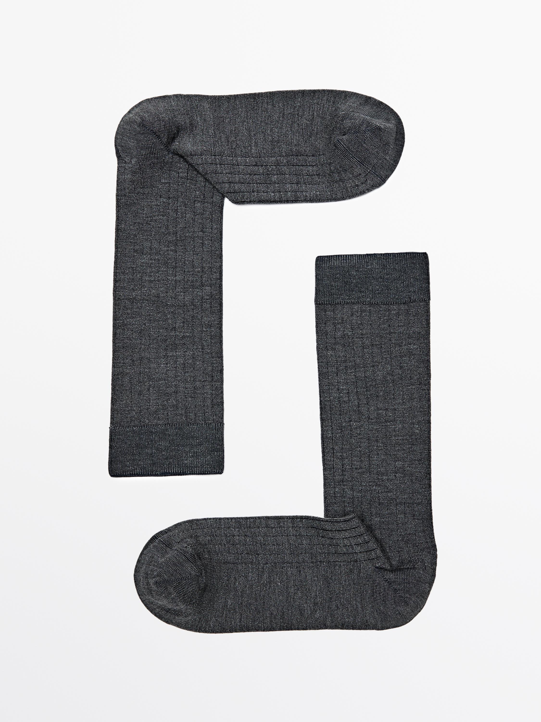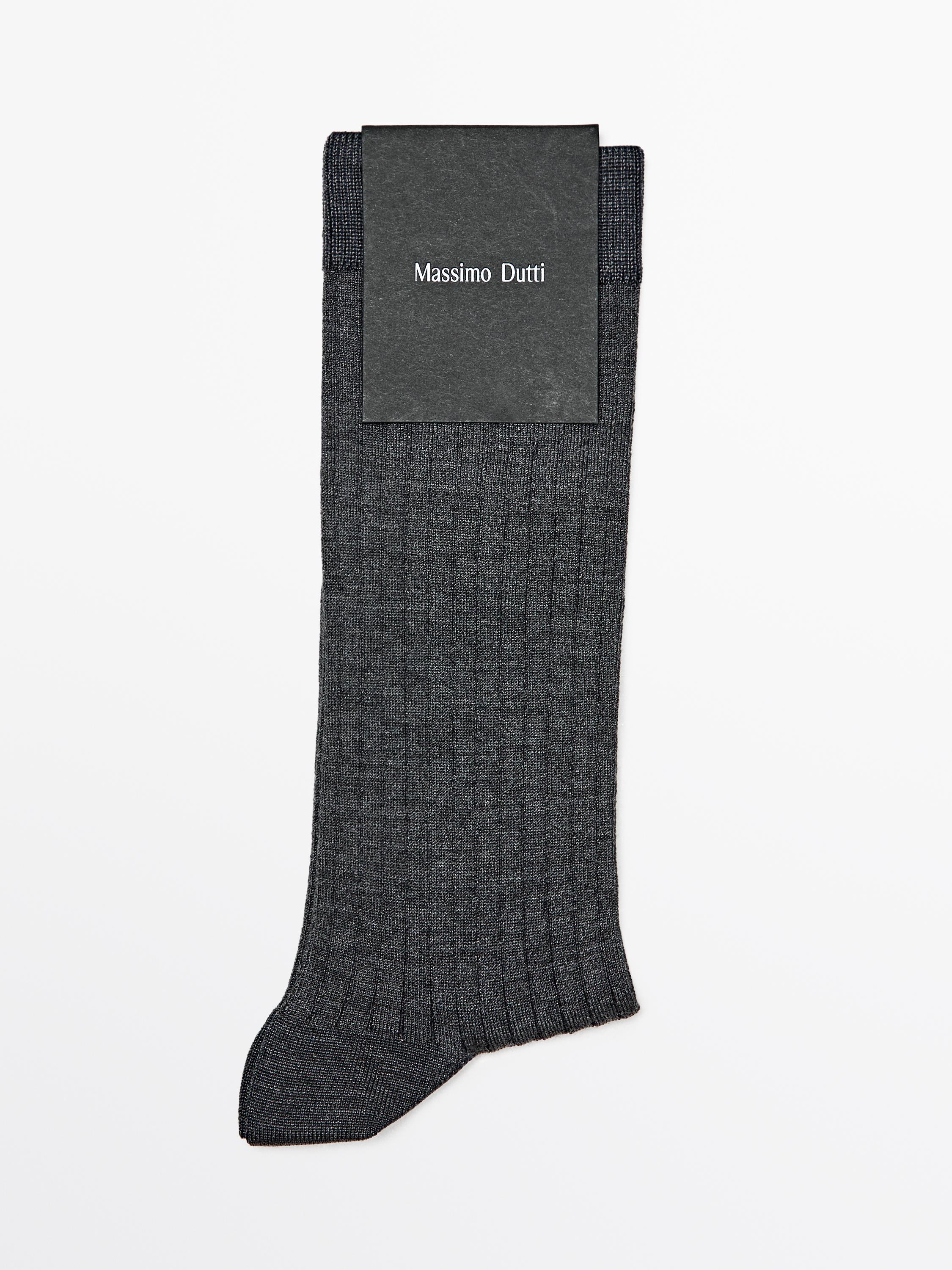 Massimo Dutti Носки из смесового шелка в рубчик, серый