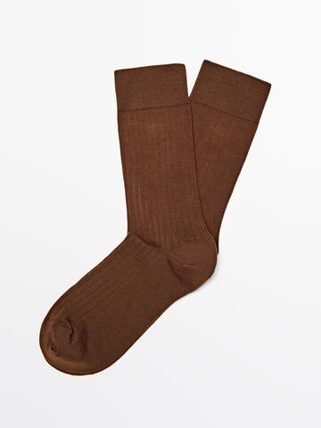 Massimo Dutti Носки в рубчик из смеси хлопка, коричневый