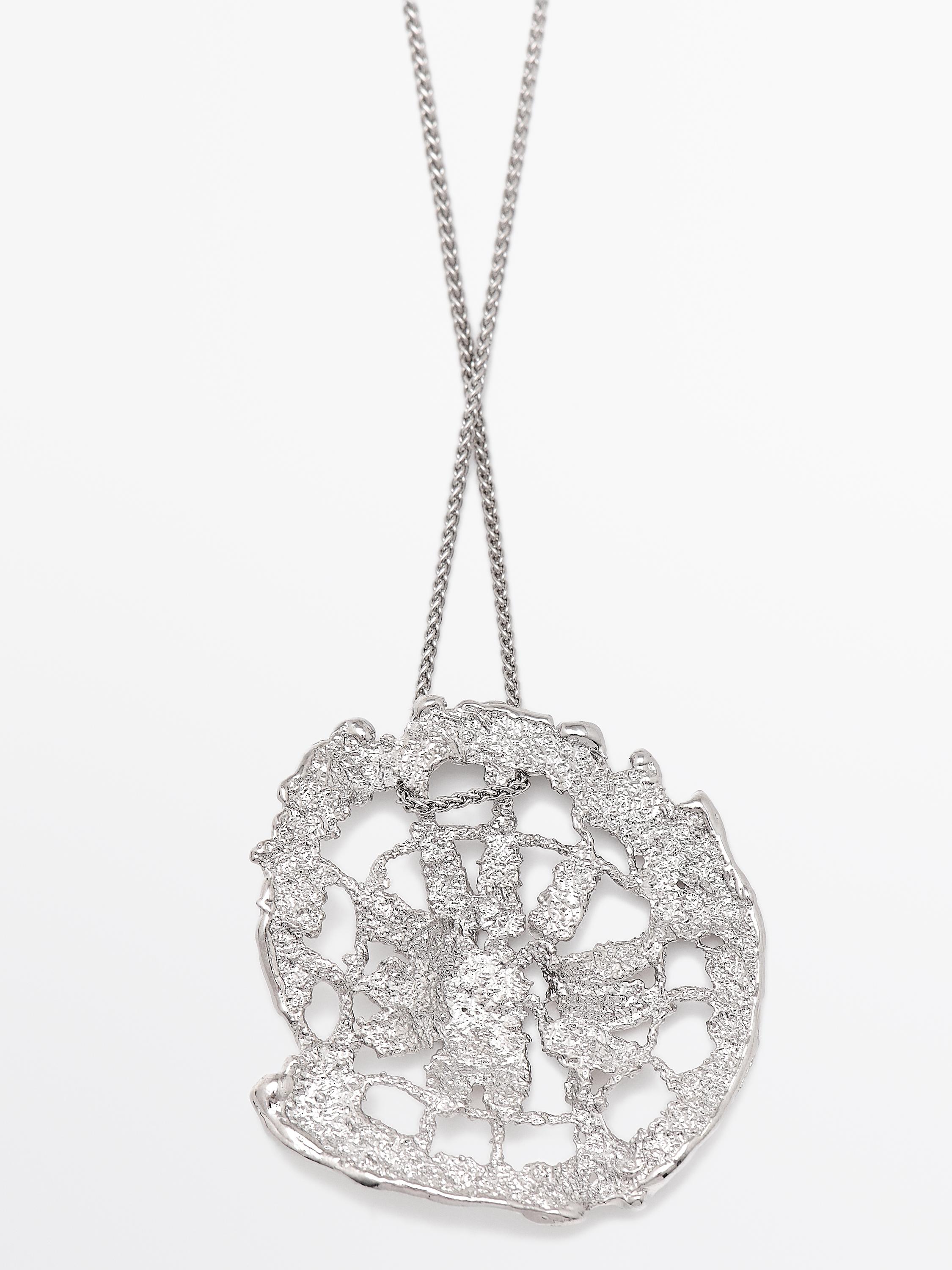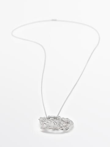 Massimo Dutti Ожерелье с кружевной подвеской, серебряный