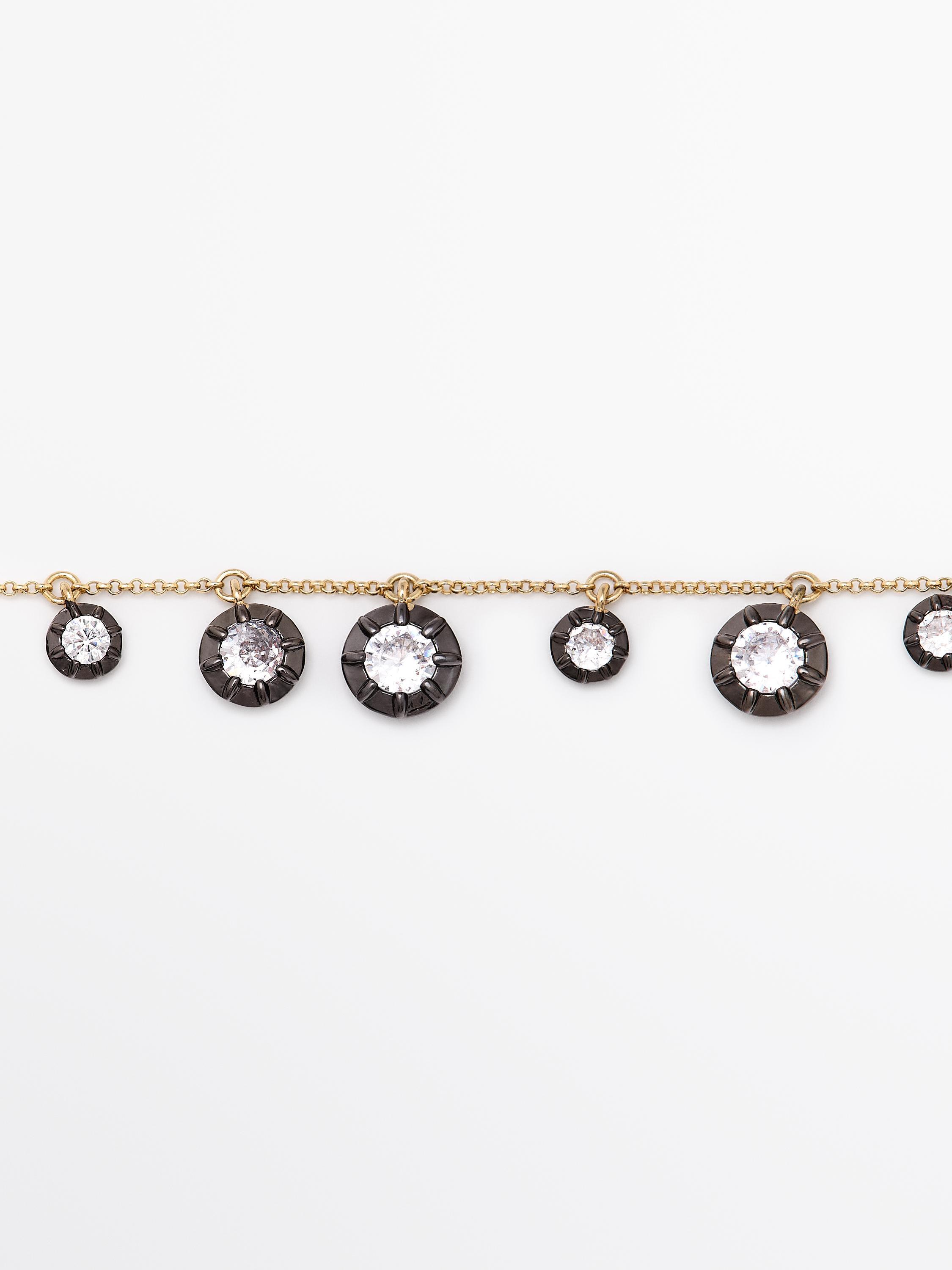 Massimo Dutti Ожерелье со стразами в винтажном стиле, золотистый