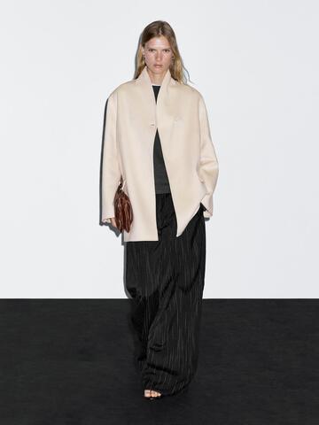 Massimo Dutti Пальто из смесовой шерсти с высоким воротником, натуральный, кремовый
