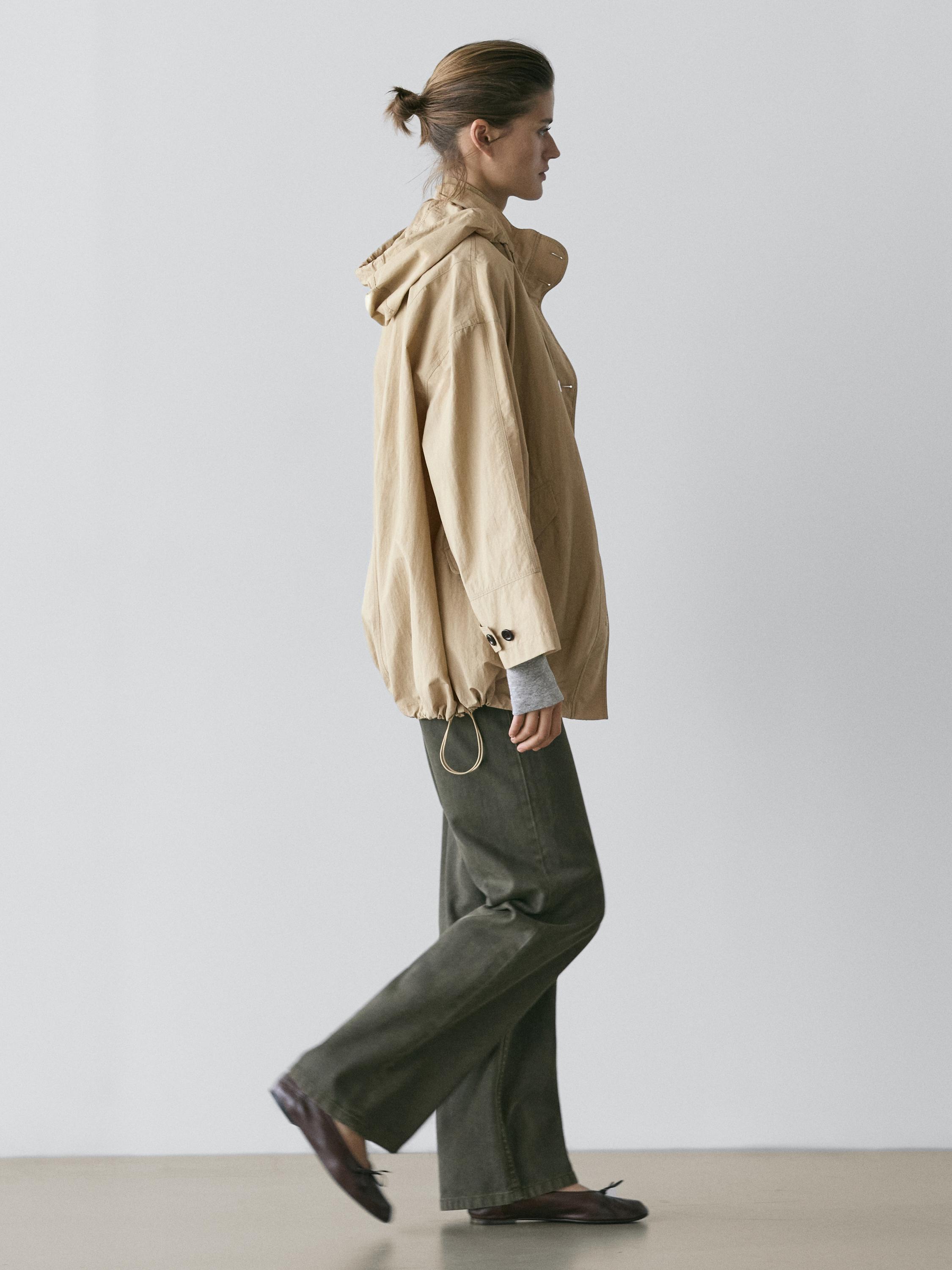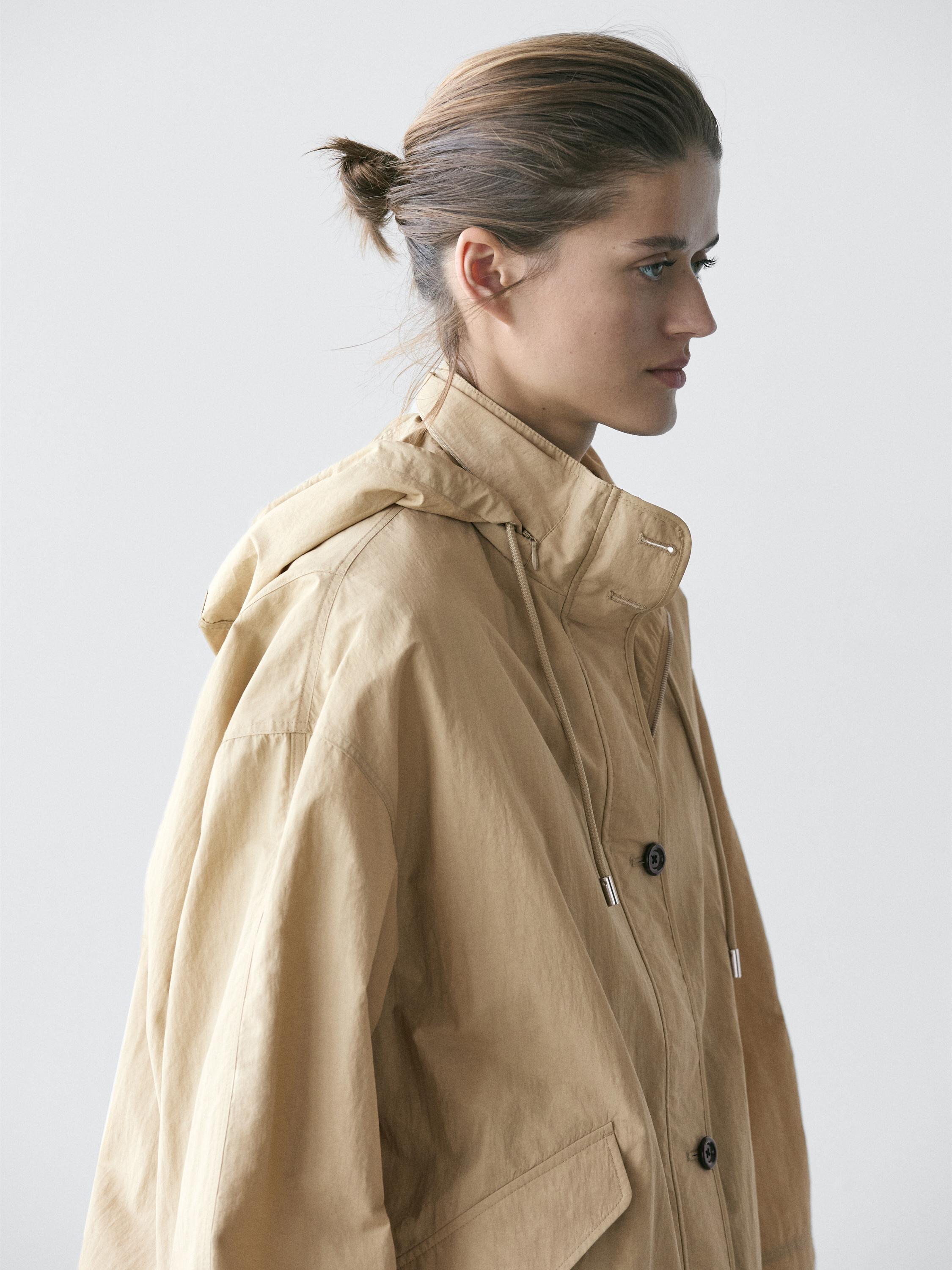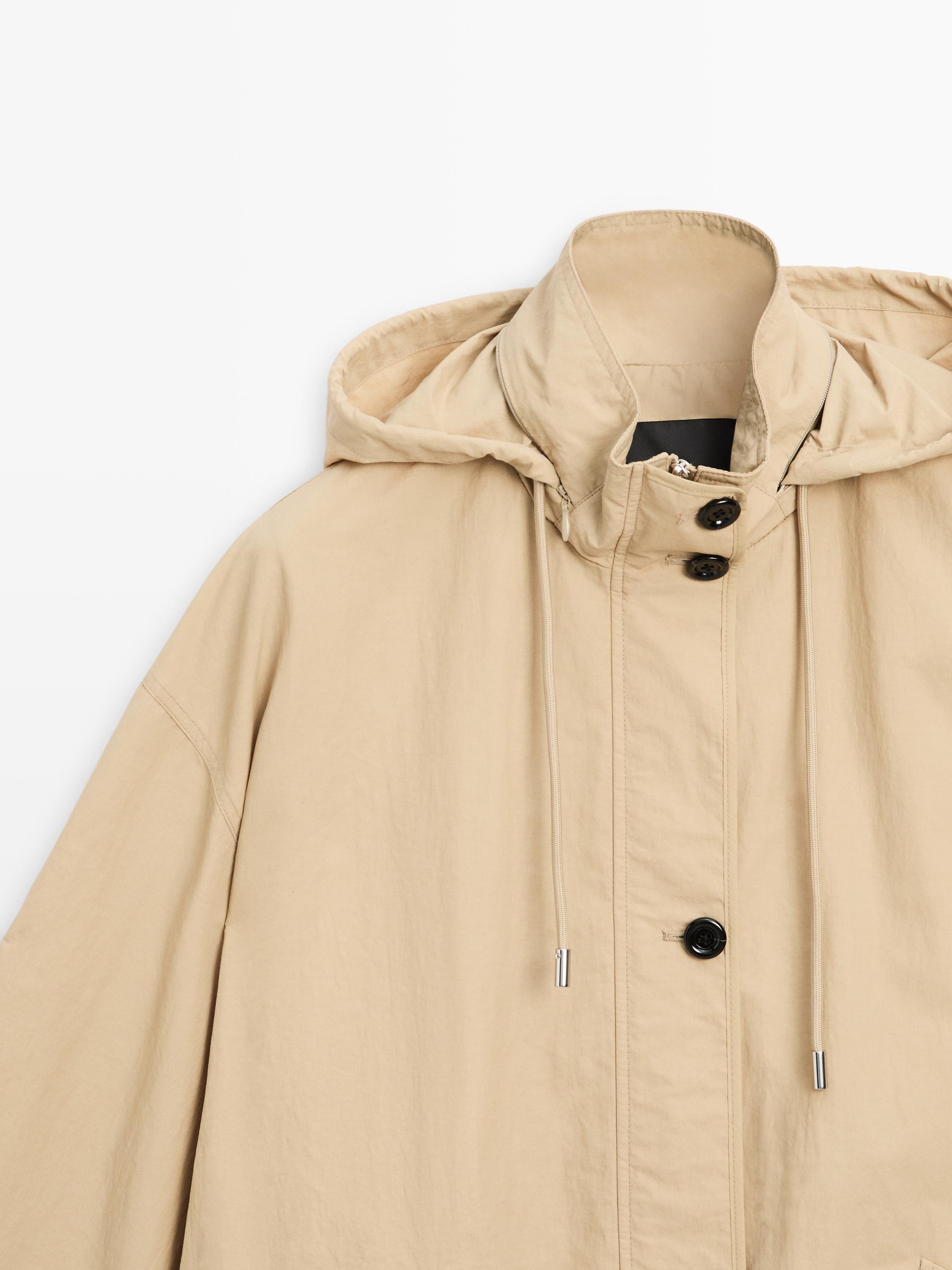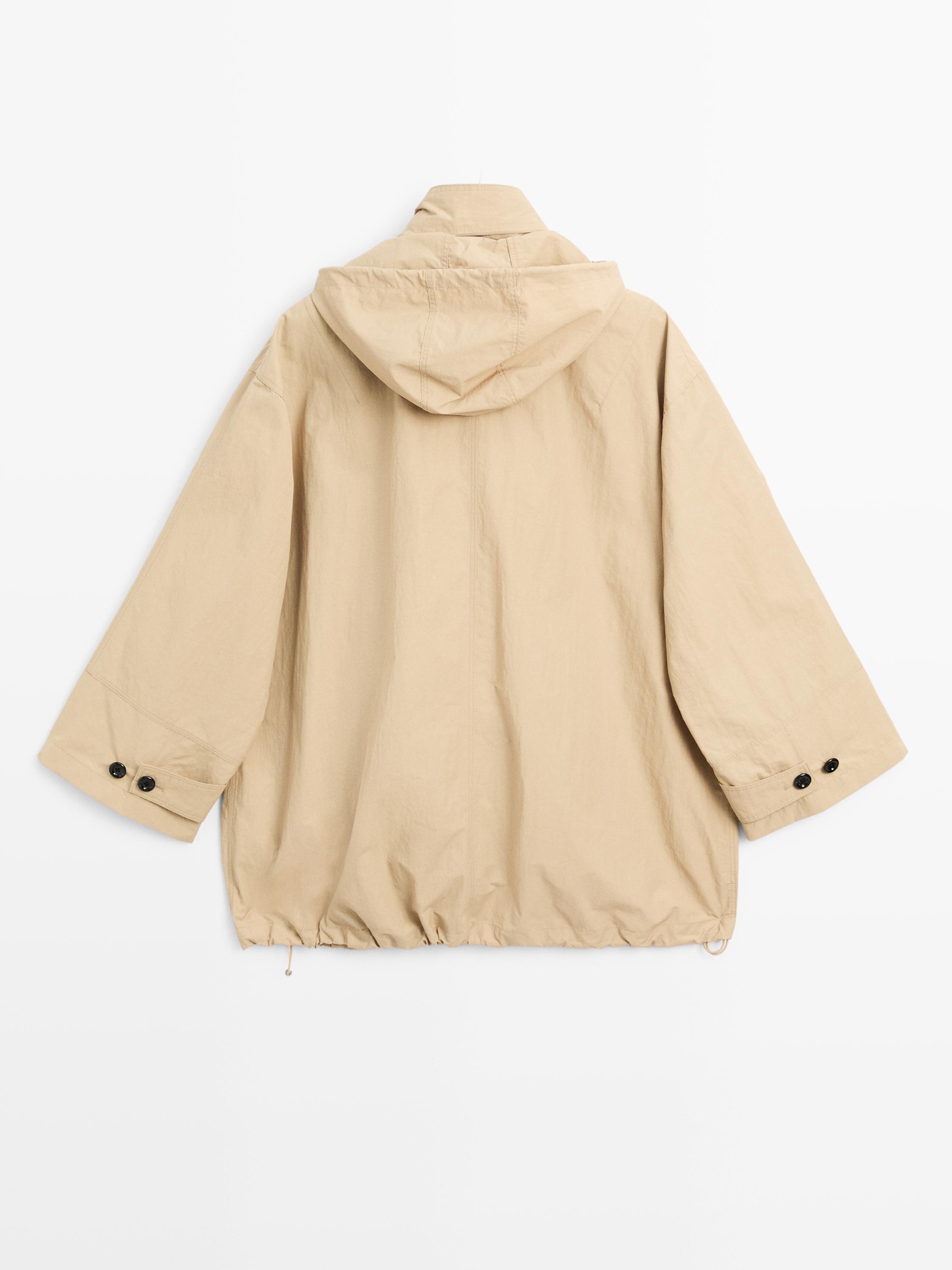 Massimo Dutti Парка объемного кроя с капюшоном, светло-бежевый