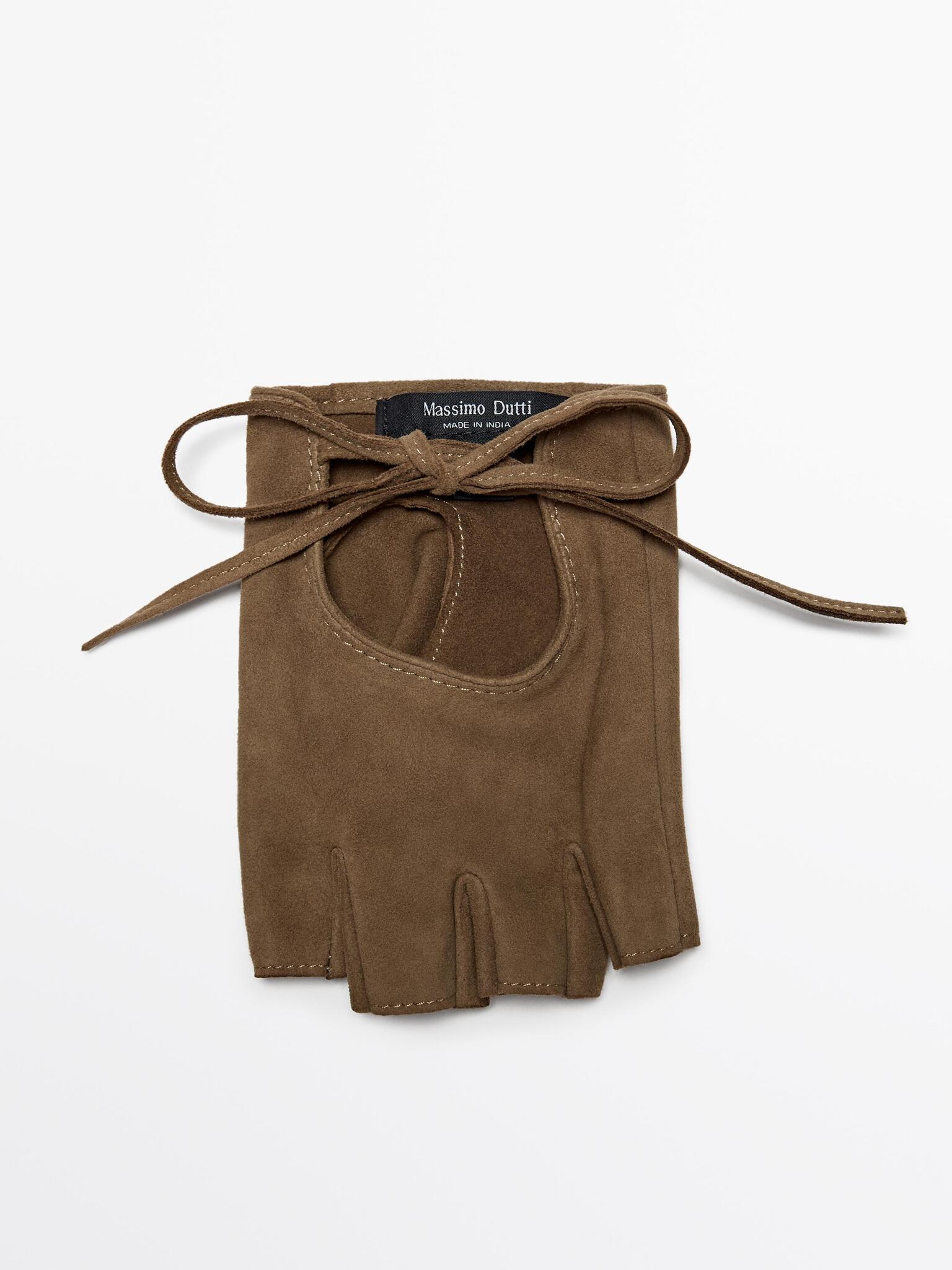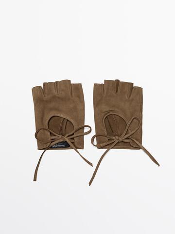 Перчатки без пальцев . Модель из 100% козьей замши . Завязывающийся бант.