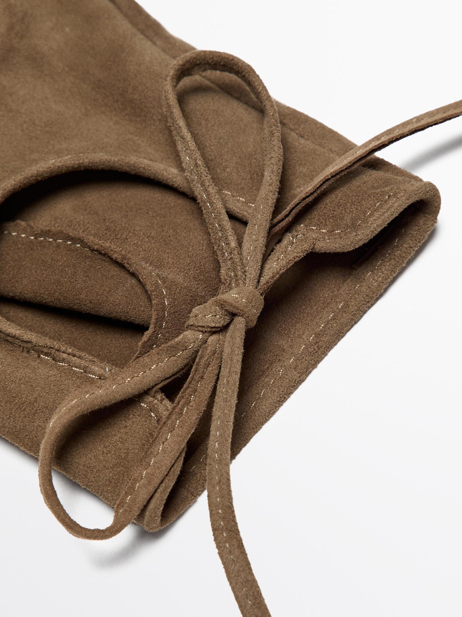 Massimo Dutti Перчатки из 100% козьей замши, песочный