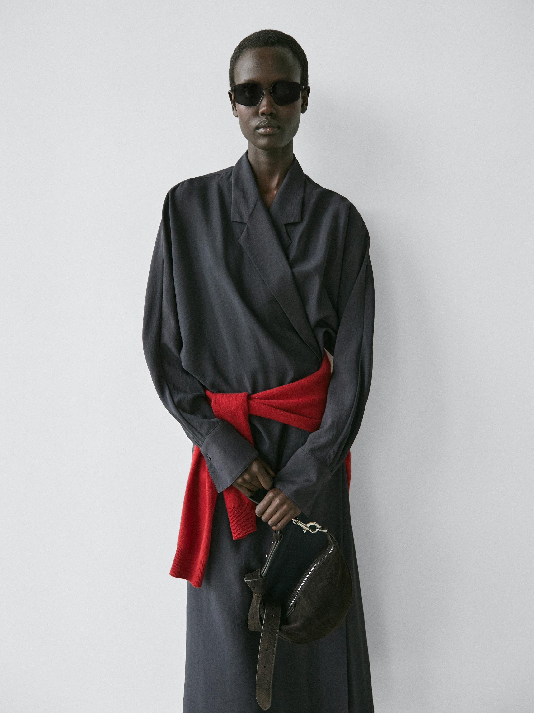 Massimo Dutti Платье миди с драпировкой, свинцовый