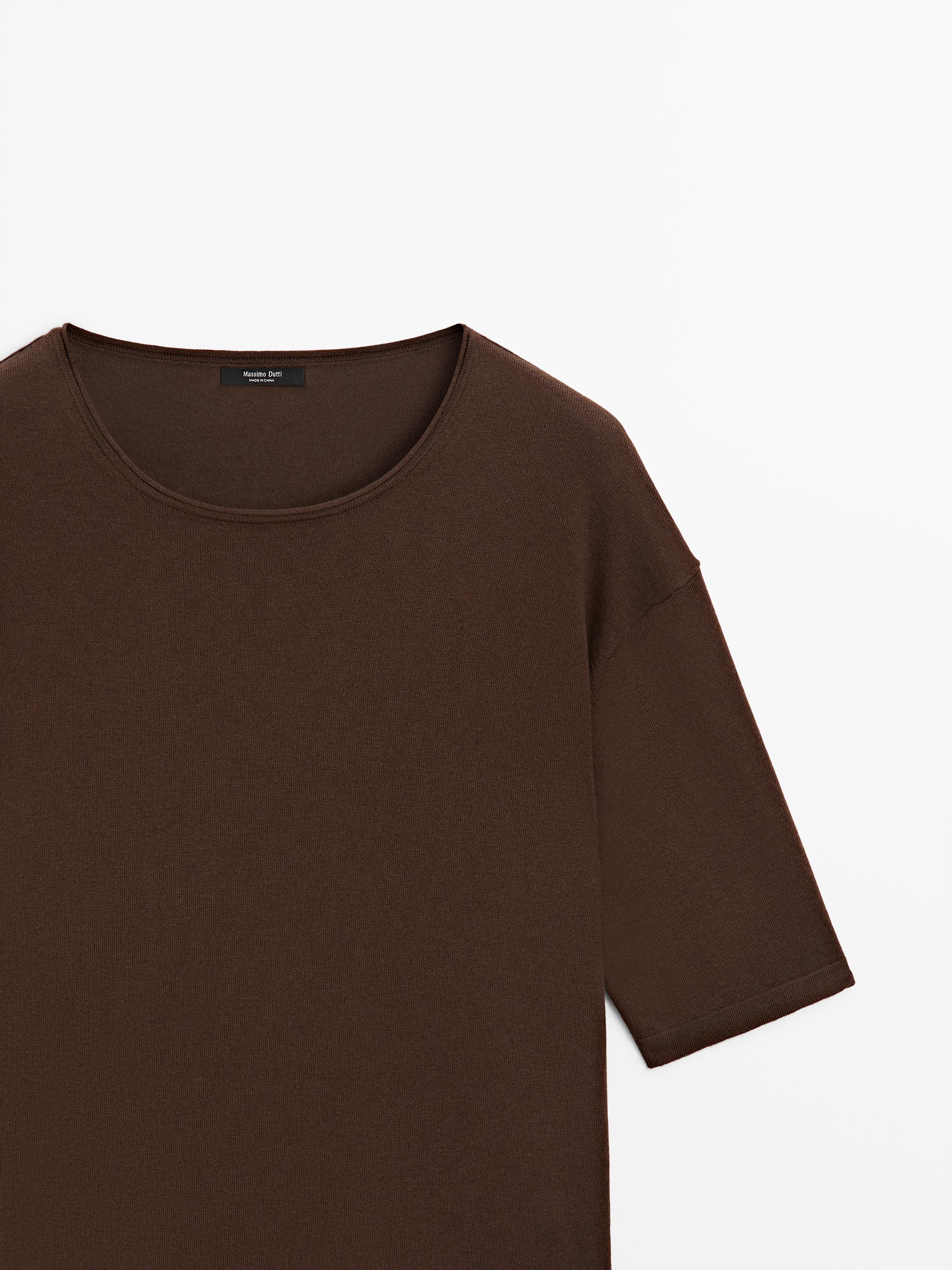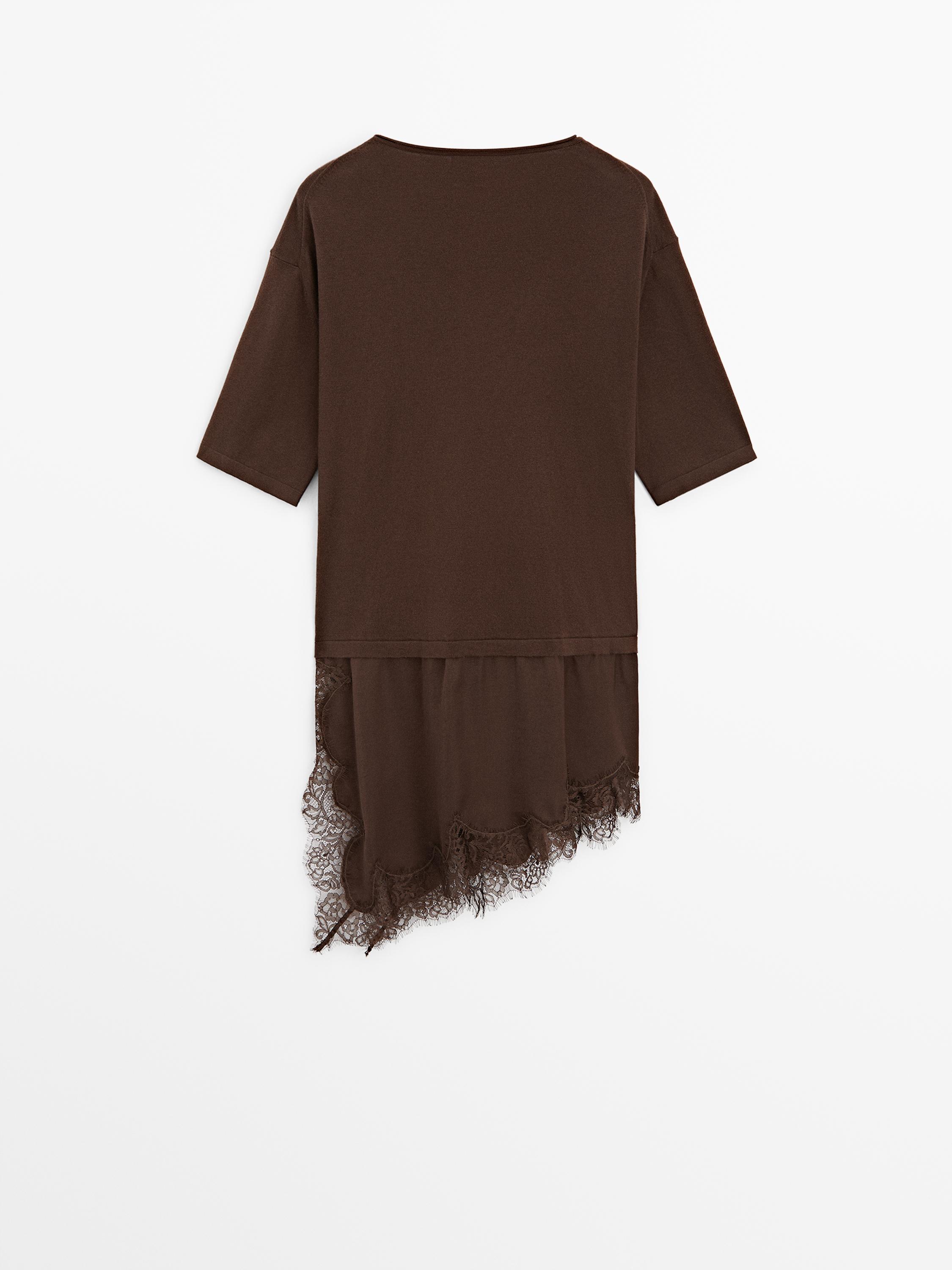 Massimo Dutti Платье с контрастной отделкой кружевом, коричневый