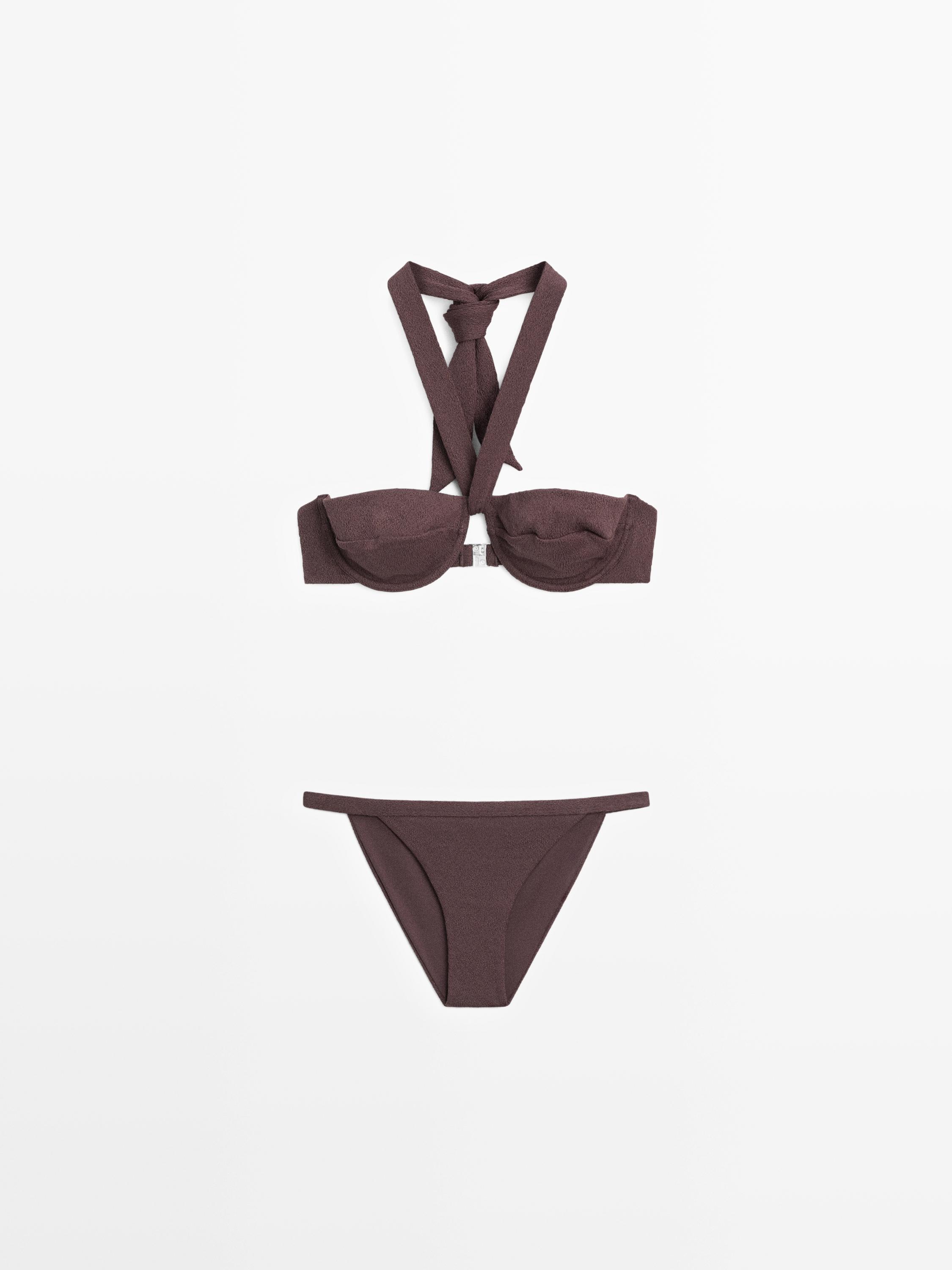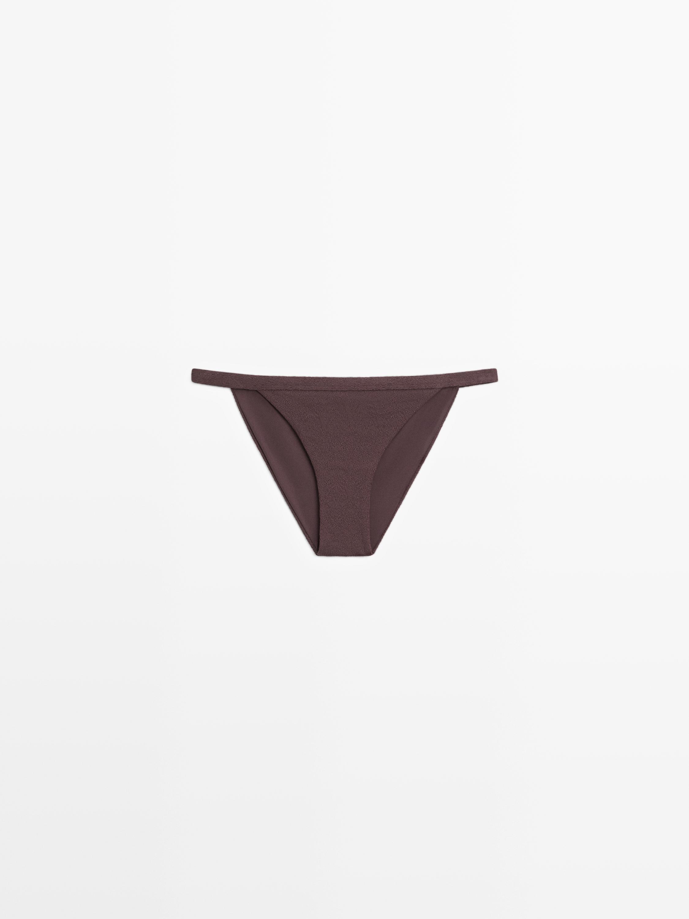 Плавки бикини с низкой посадкой и тонкими ремешками по бокам. Только онлайн. С подкладкой. Рельефный узор.