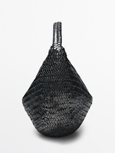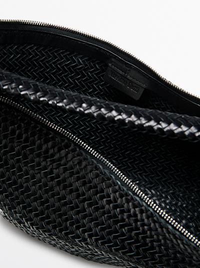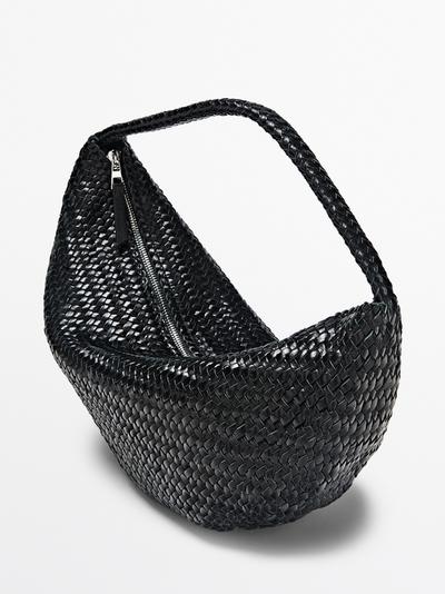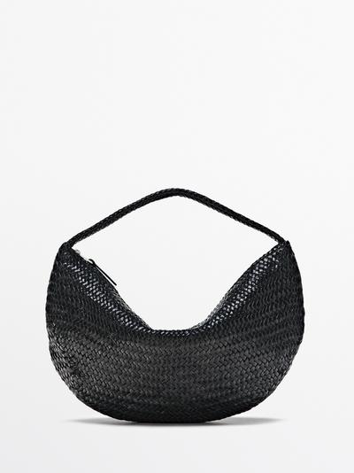 Massimo Dutti Плетеная кожаная сумка в форме полумесяца, черный