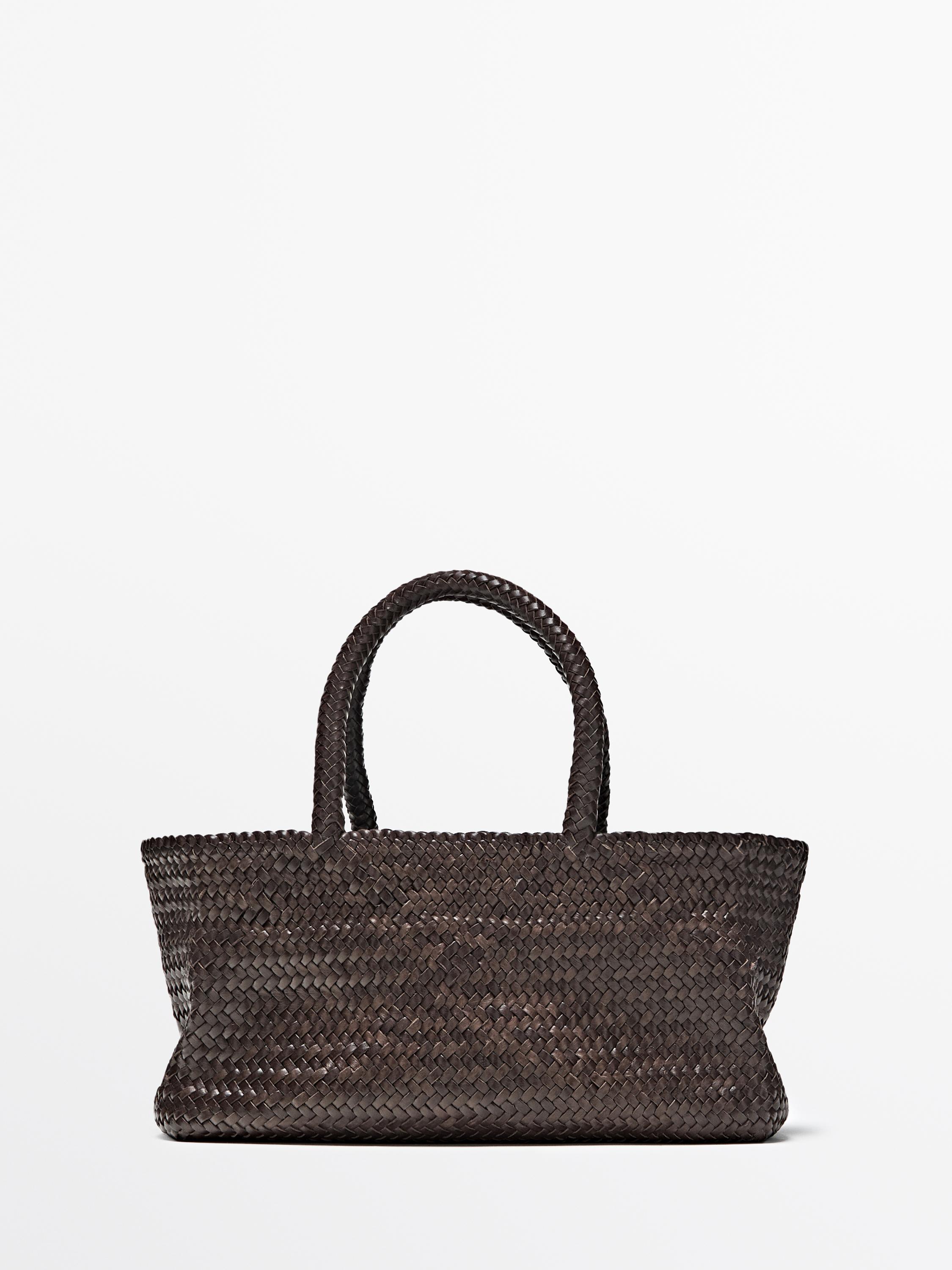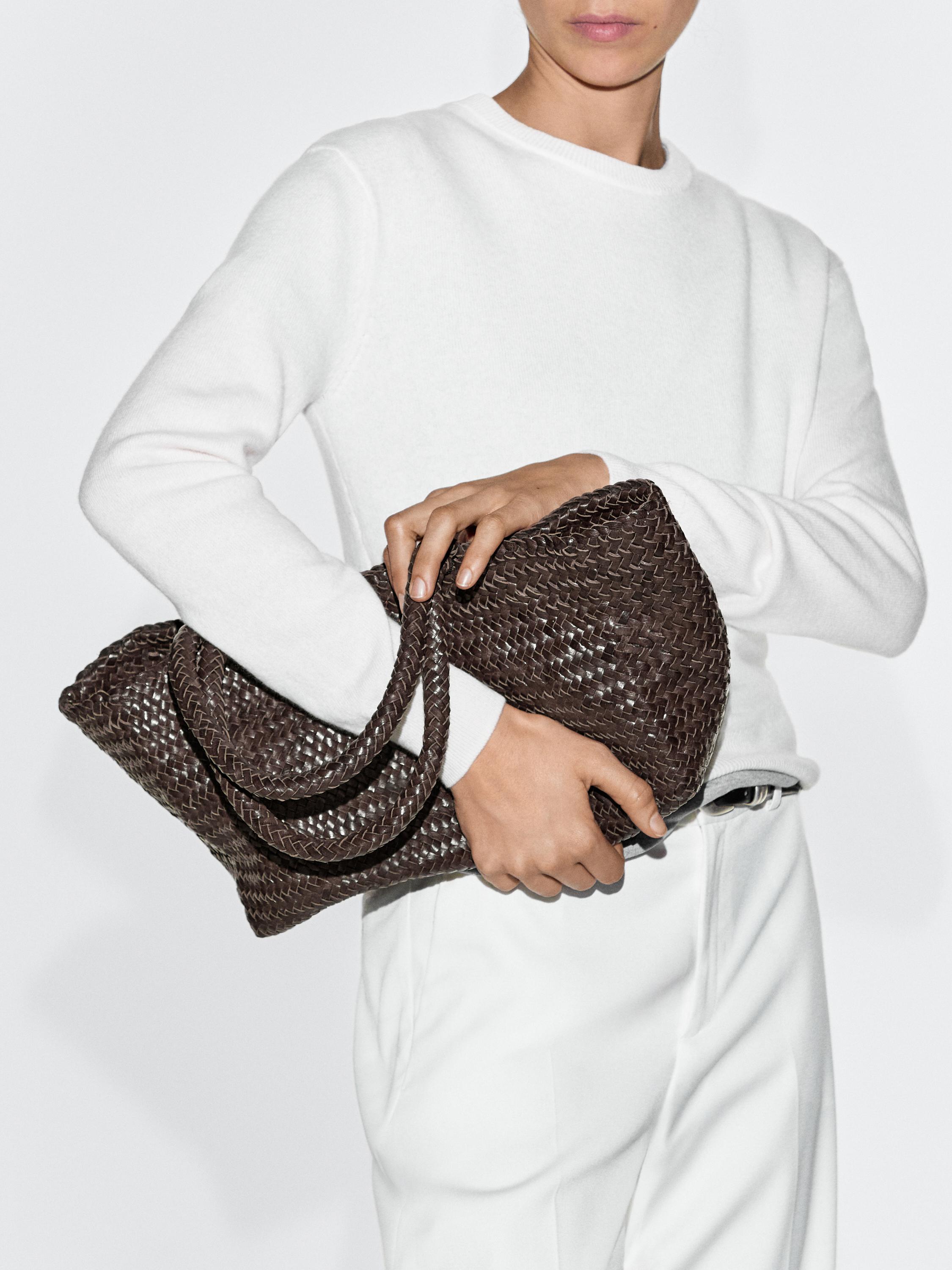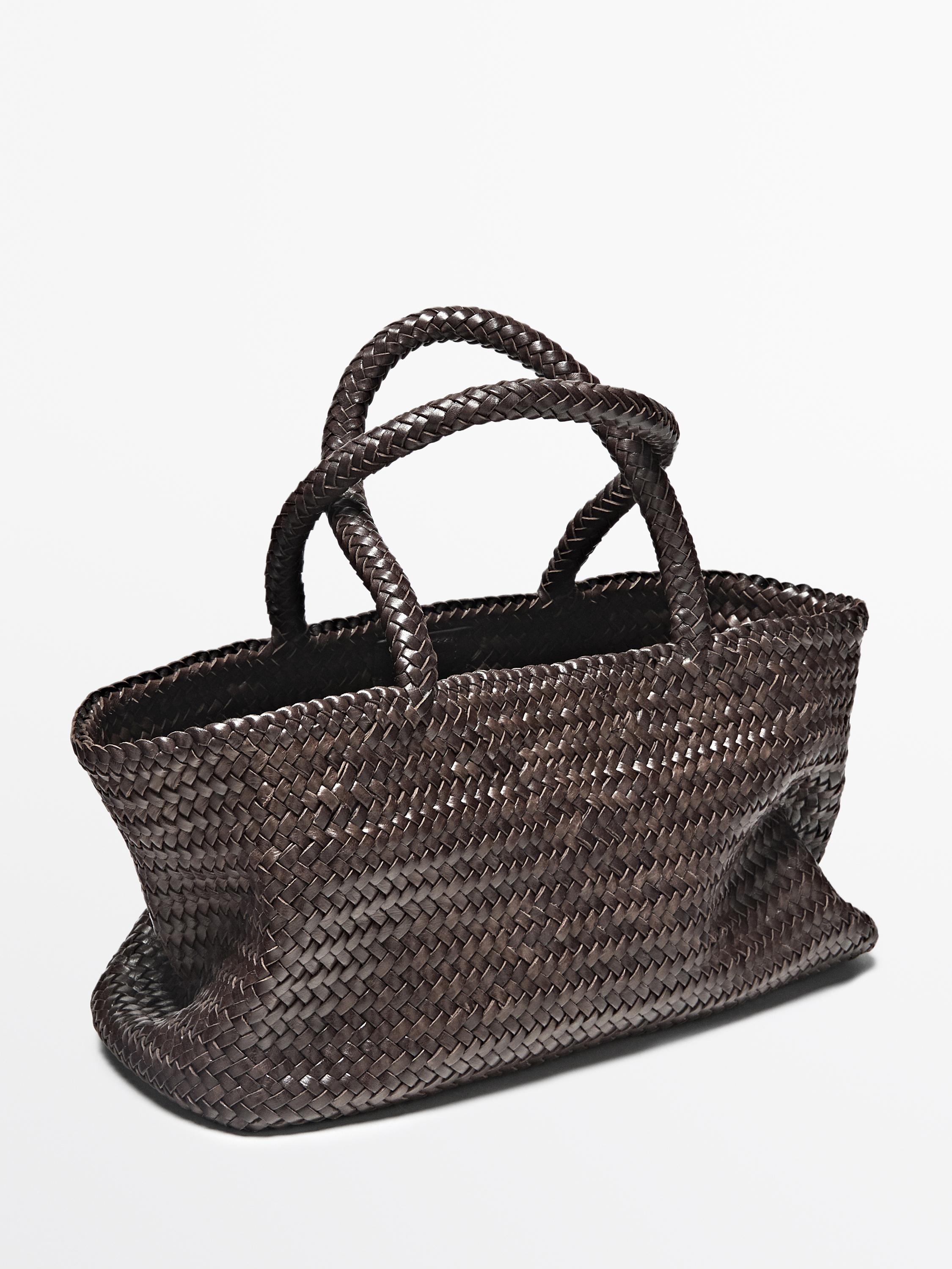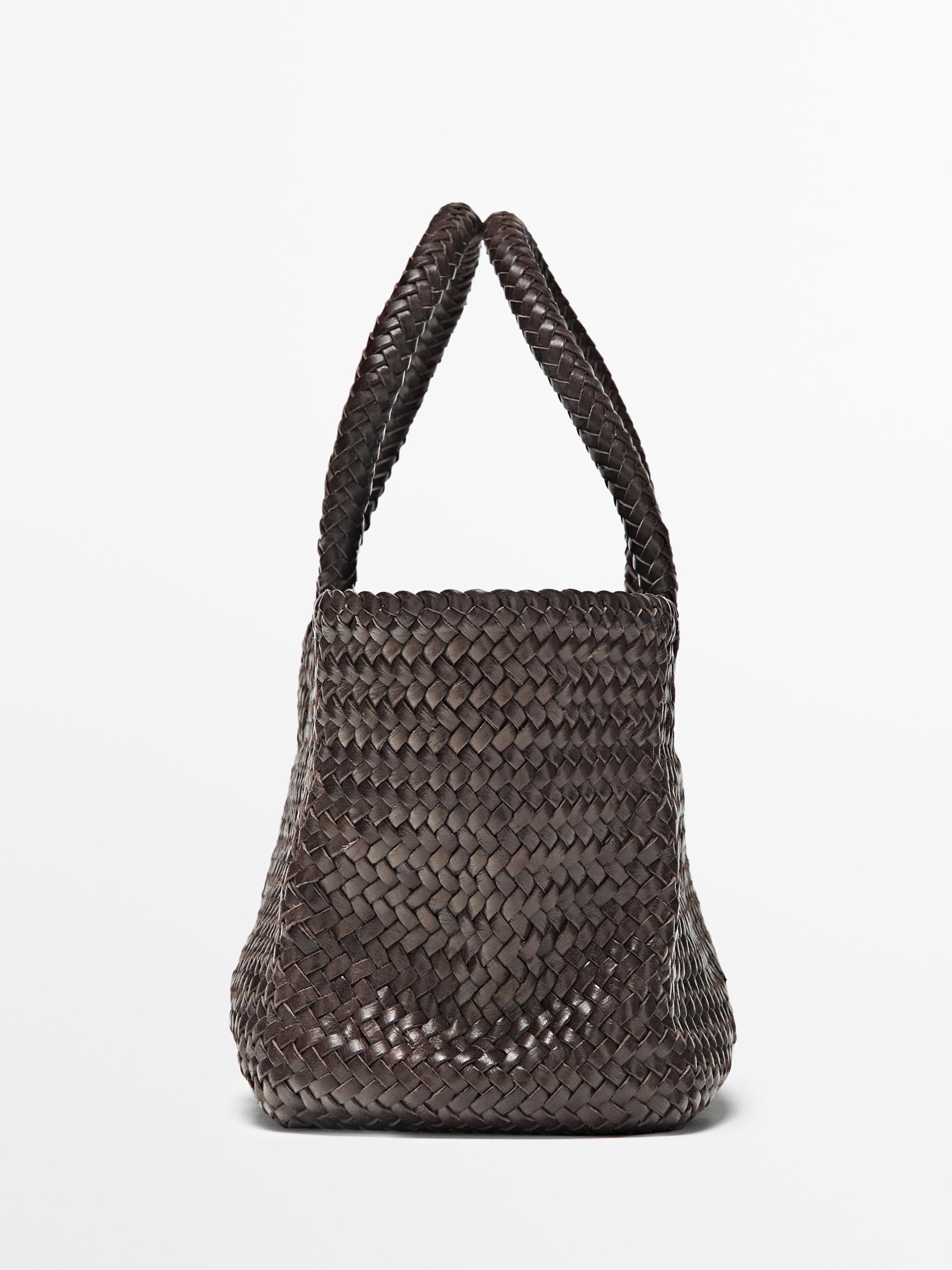 Massimo Dutti Плетеная сумка-тоут среднего размера, коричневый