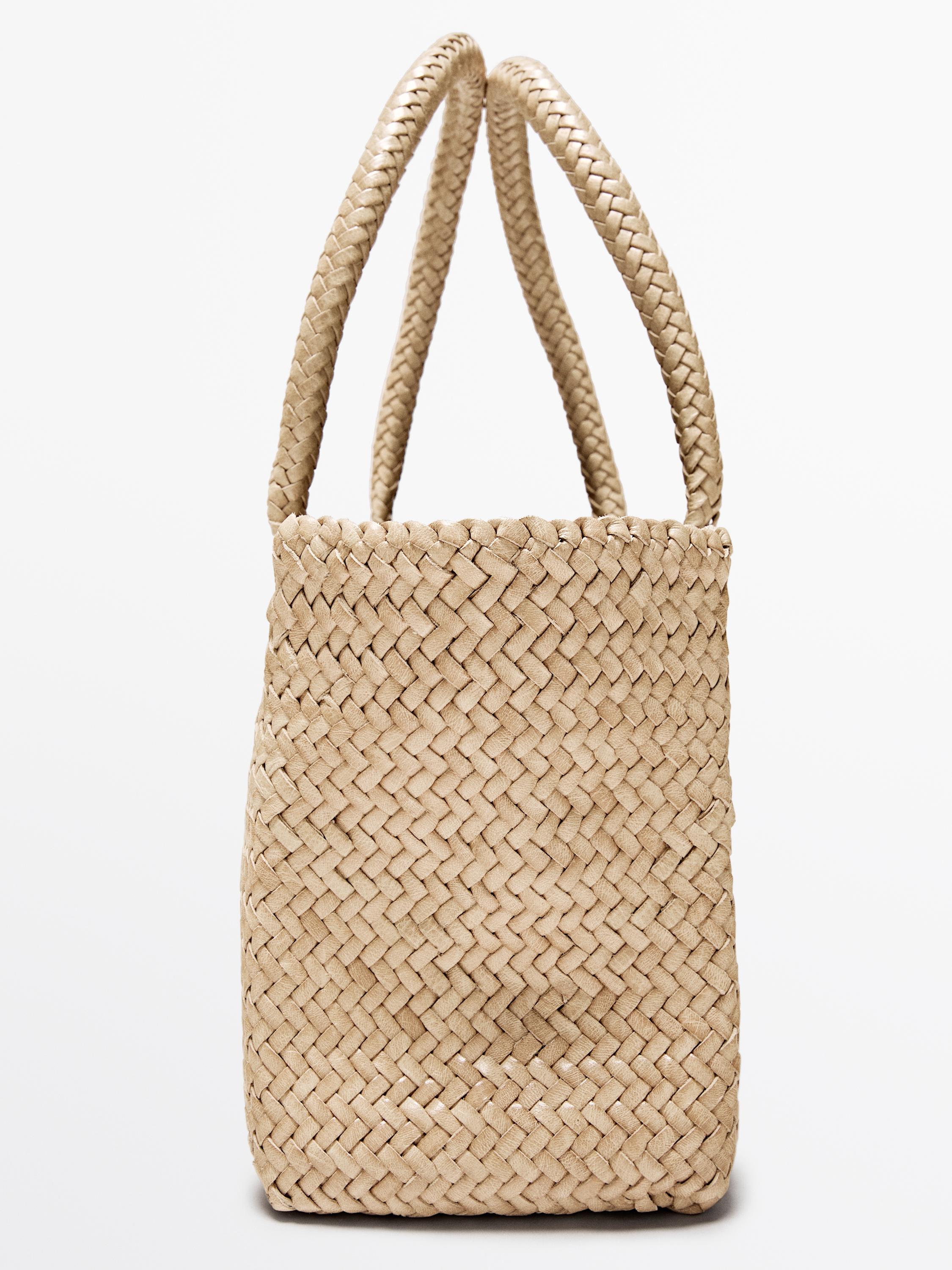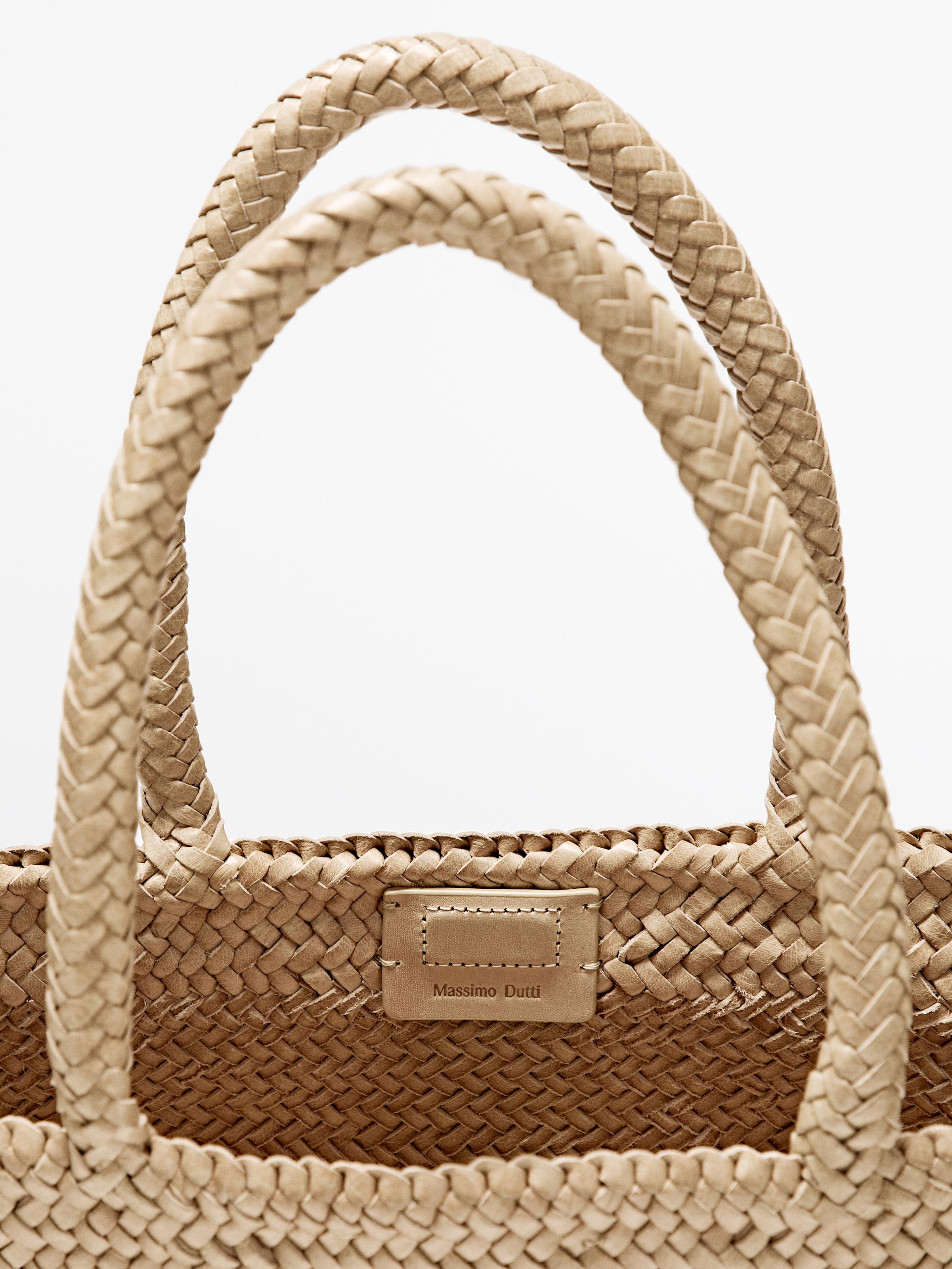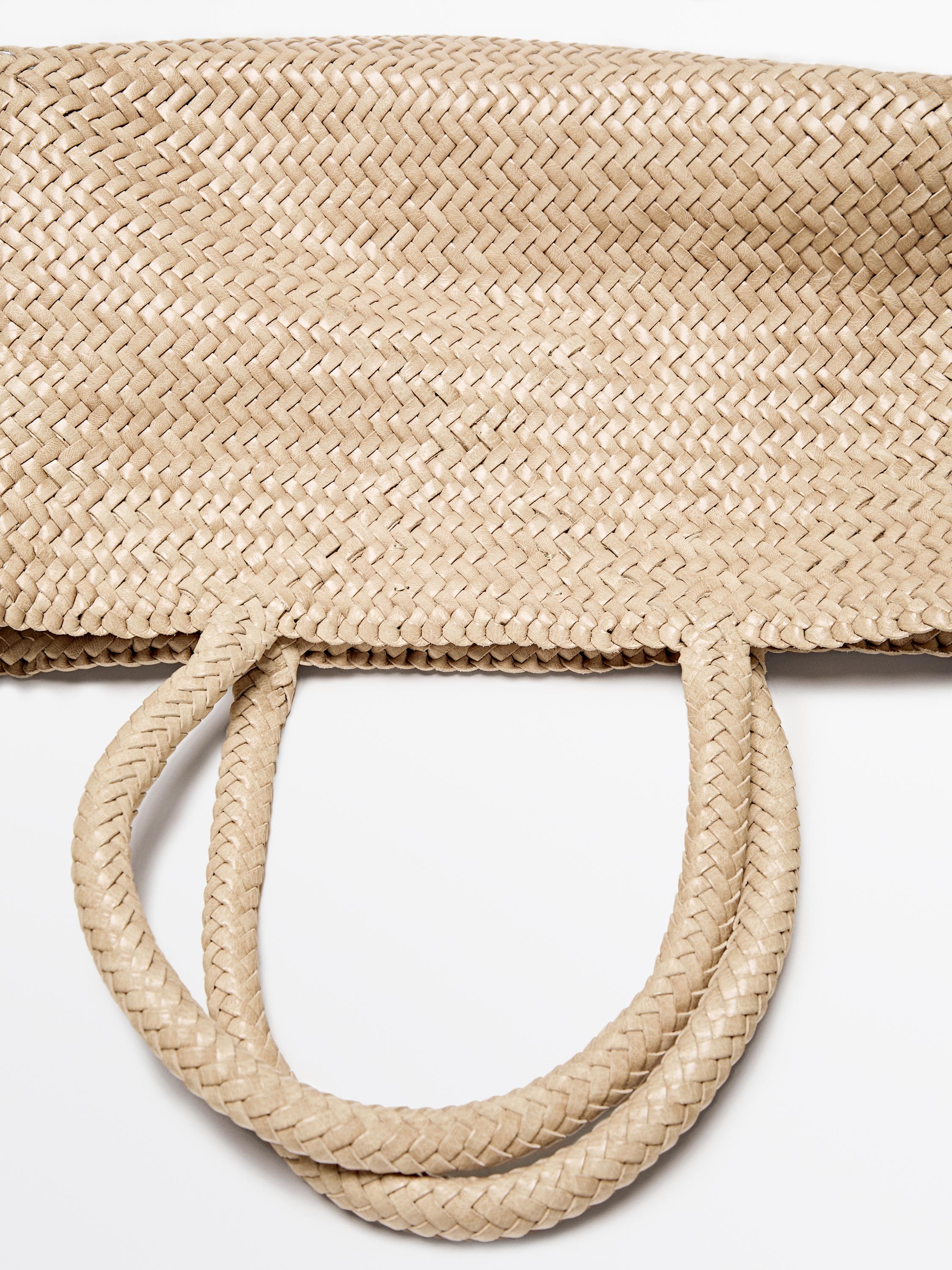 Massimo Dutti Плетеная сумка-тоут среднего размера, кремовый