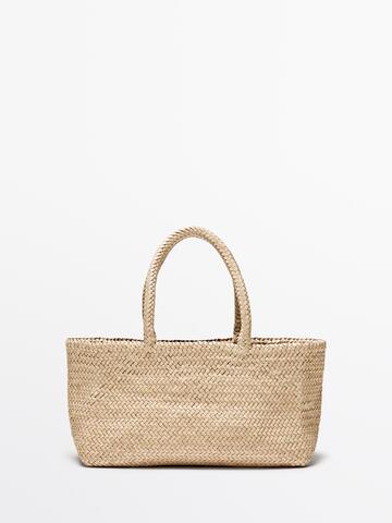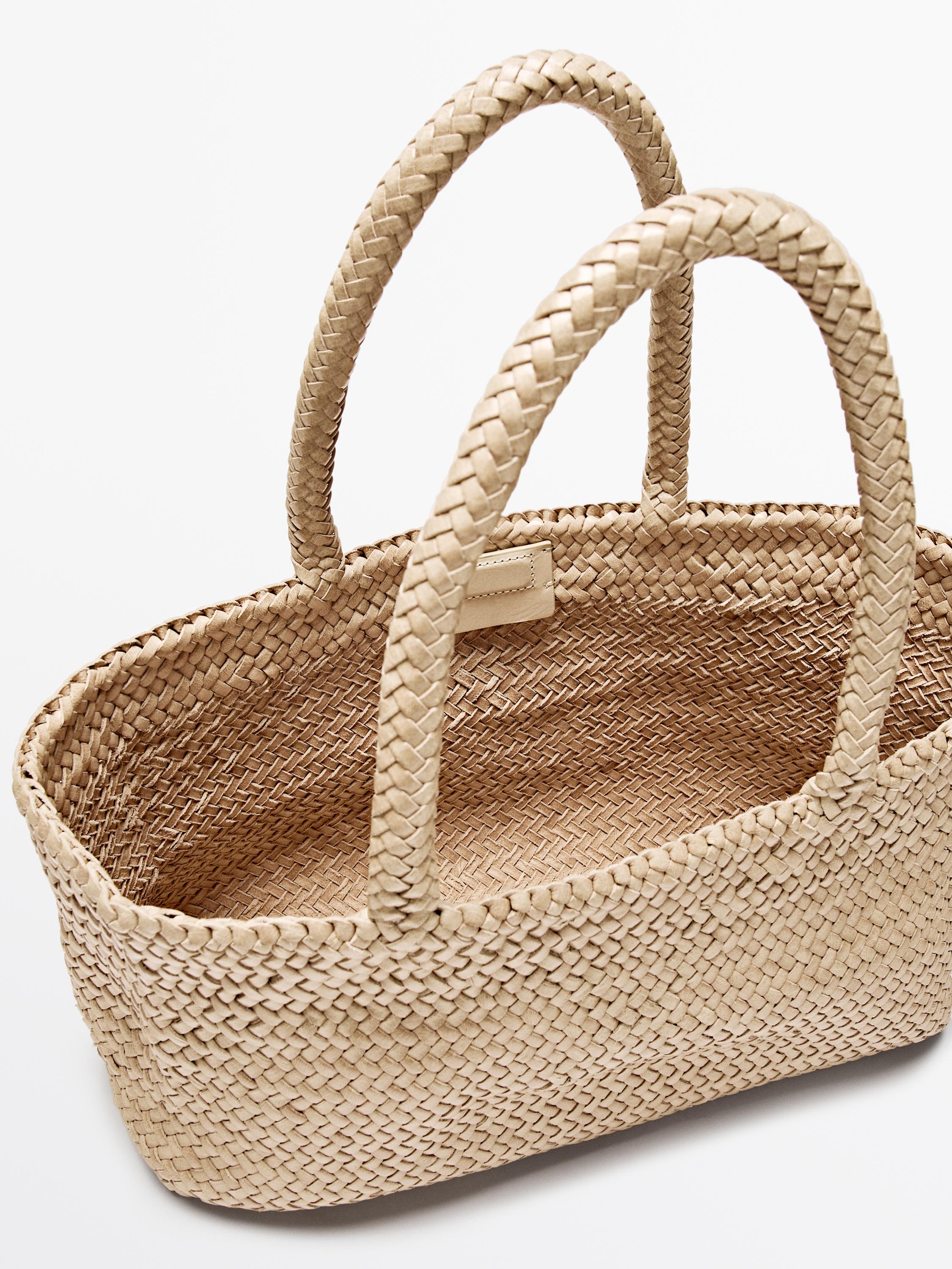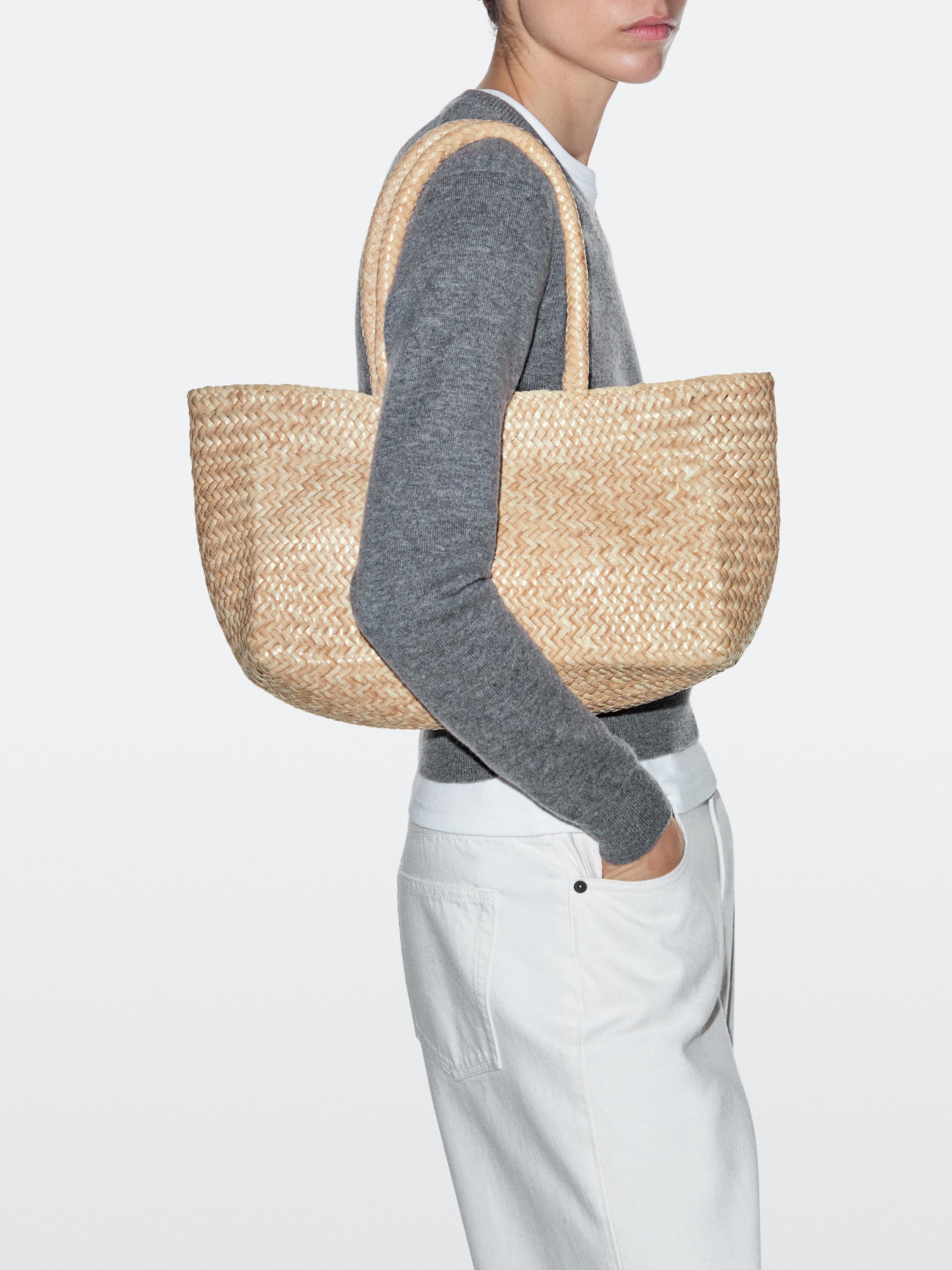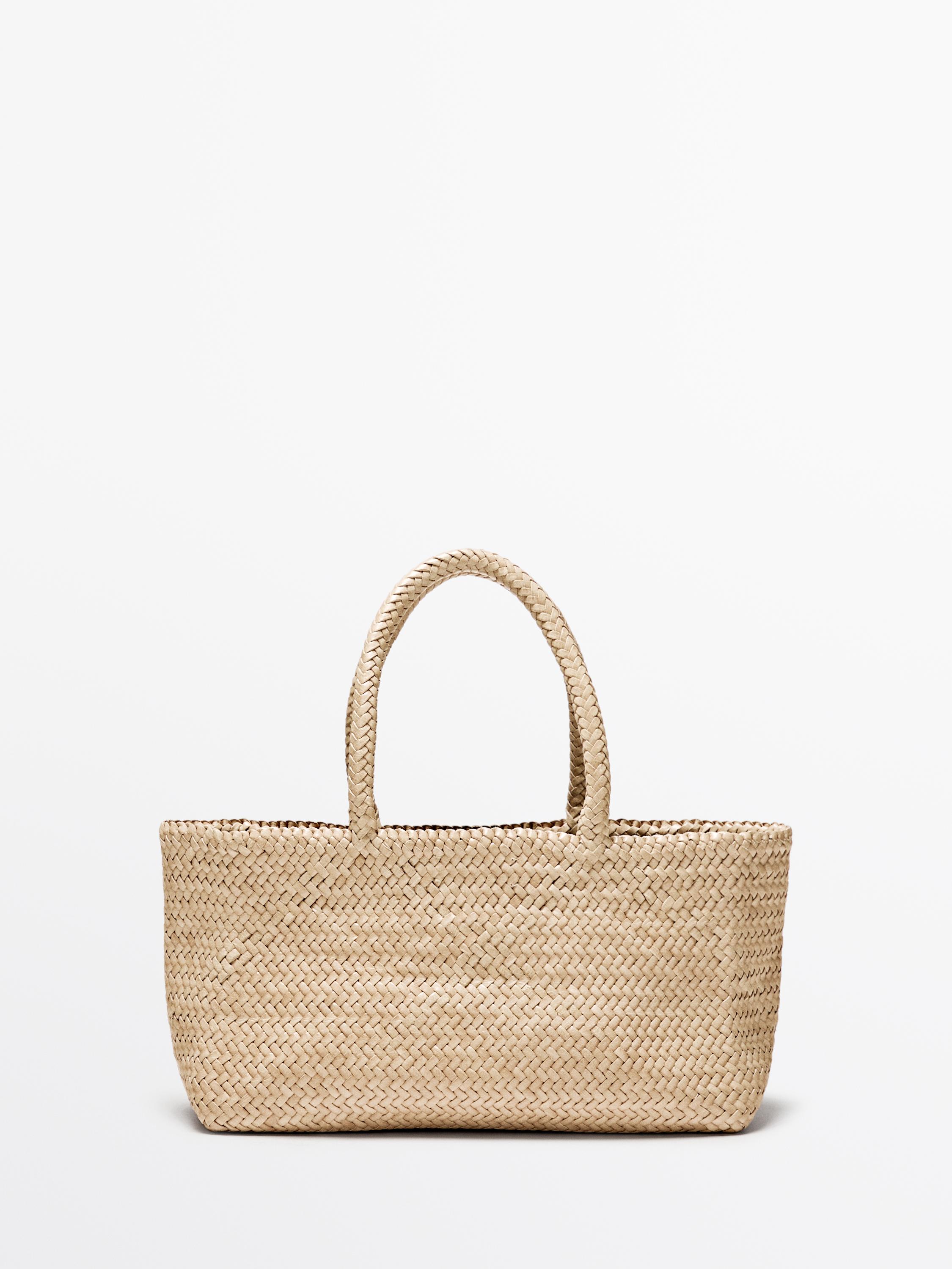 Massimo Dutti Плетеная сумка-тоут среднего размера, кремовый