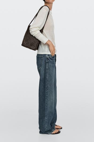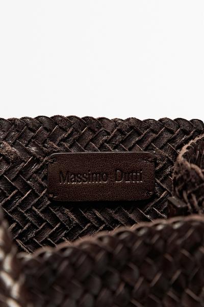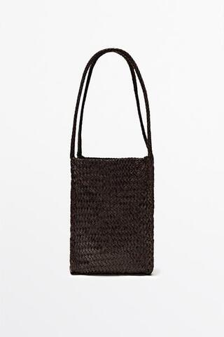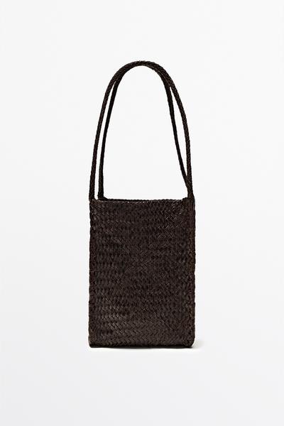 Massimo Dutti Плетеная сумка-ведро из кожи наппа, коричневый