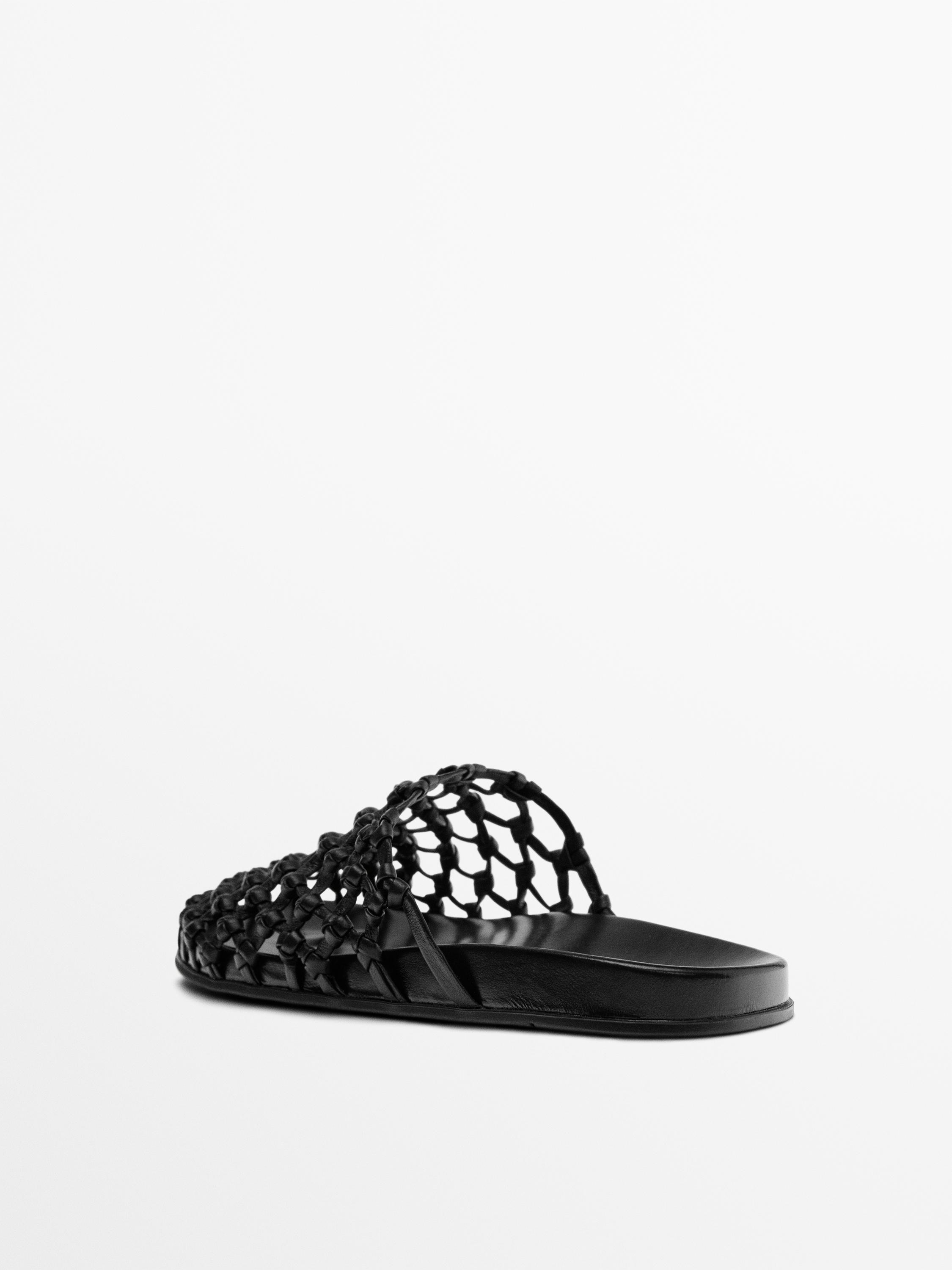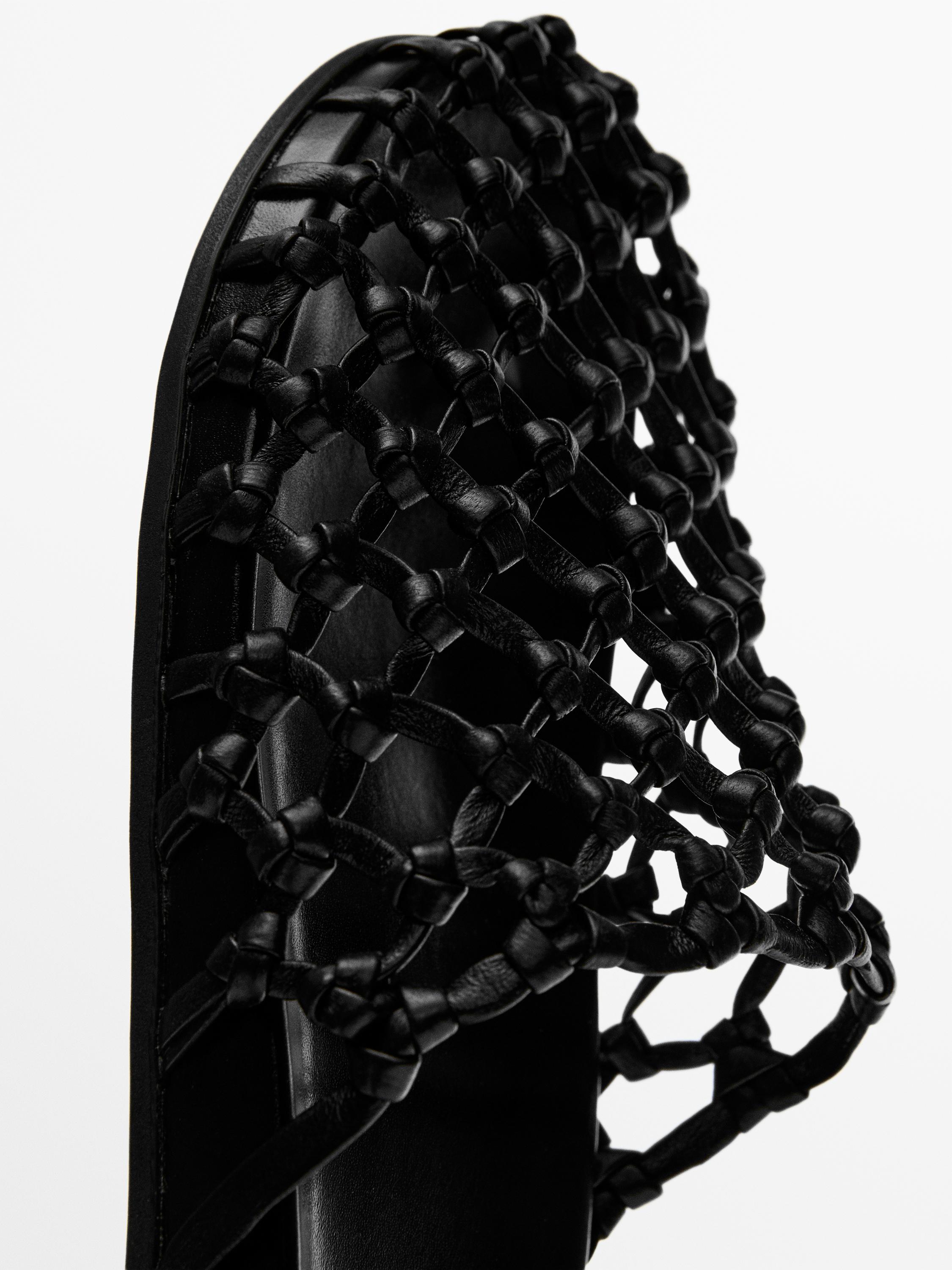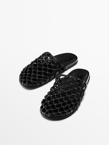 Плетеные ажурные сабо из овечьей шкуры. Кожаная подкладка и стелька. Логотип на стельке.
