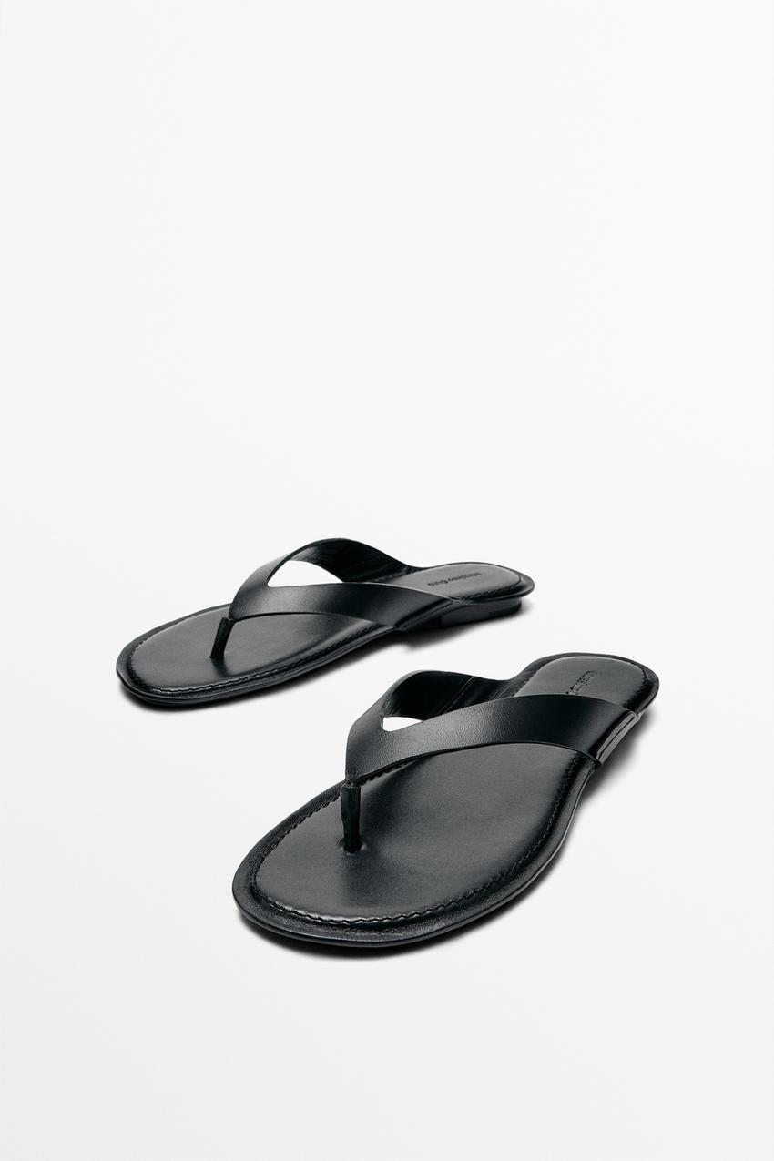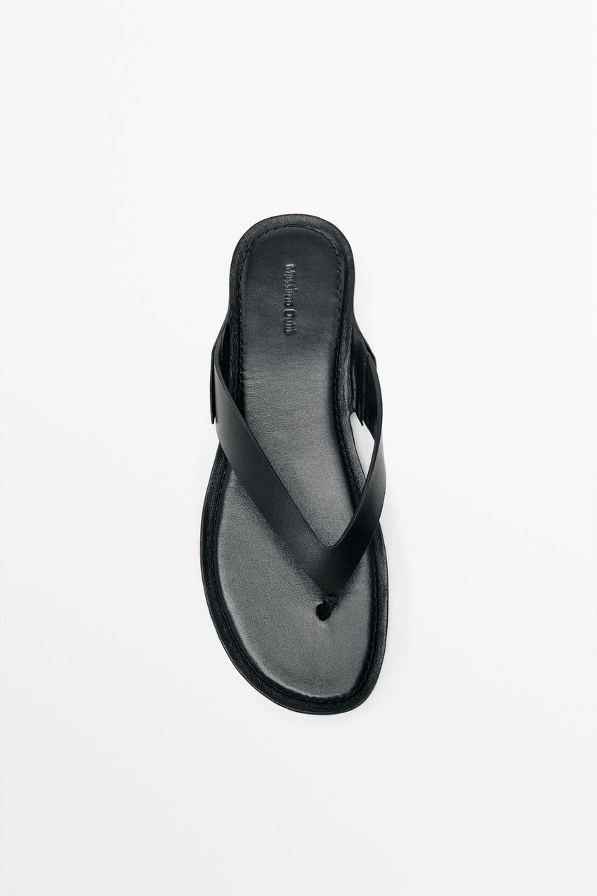 Massimo Dutti Плоские кожаные шлепанцы, черный