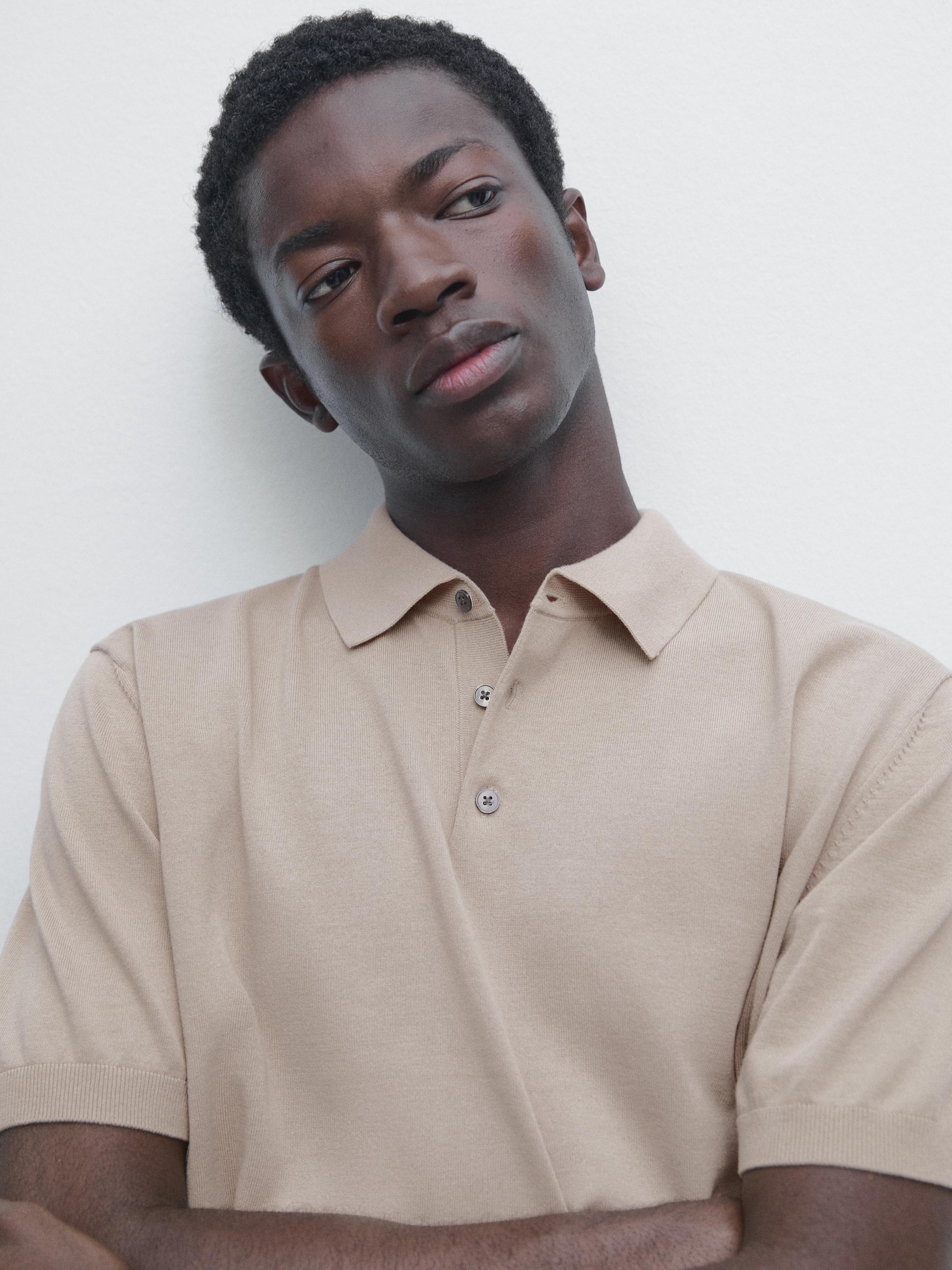 Massimo Dutti Поло из 100% хлопка, бежевый