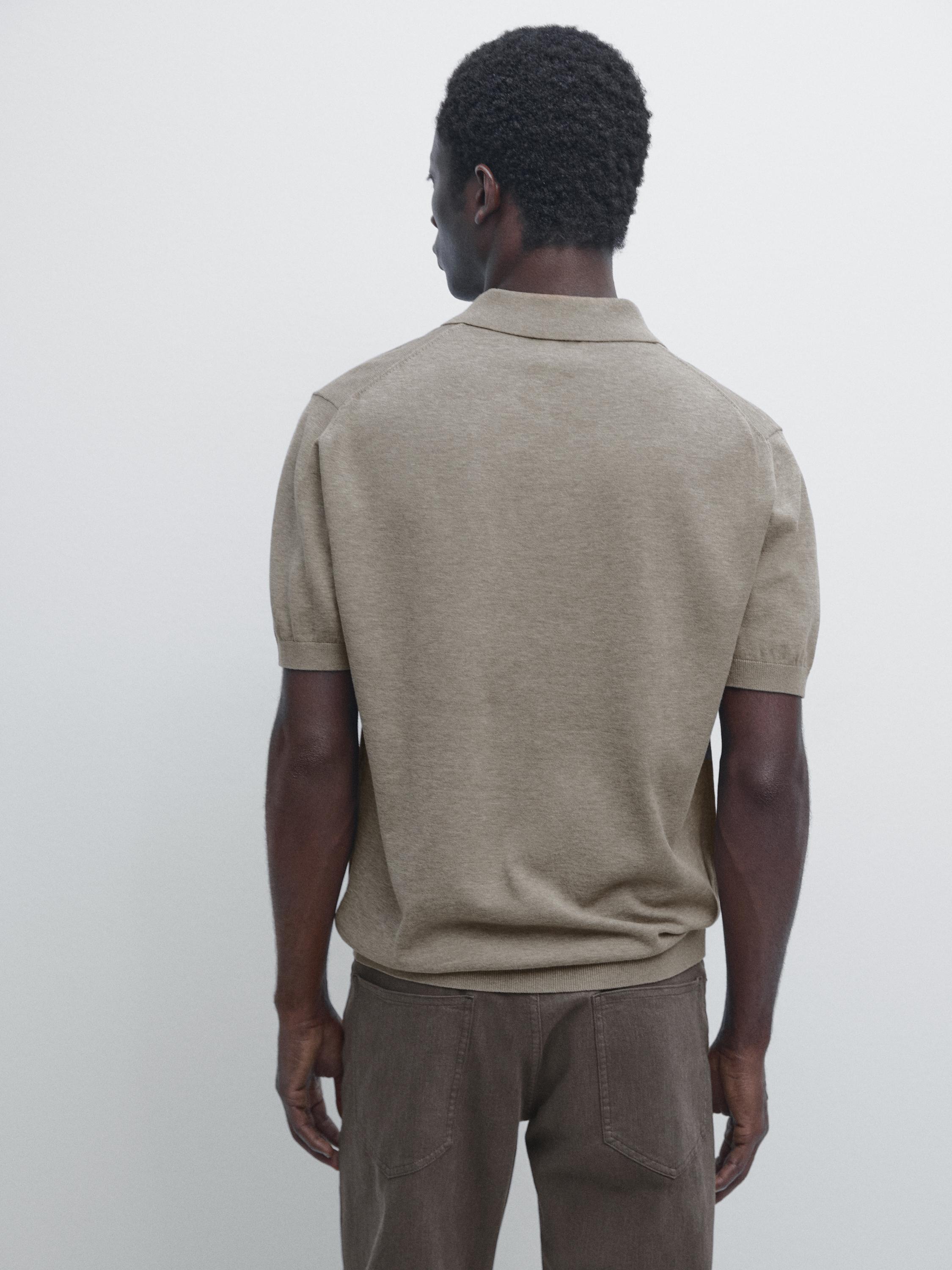 Massimo Dutti Поло из 100% хлопка, бежевый/зеленый