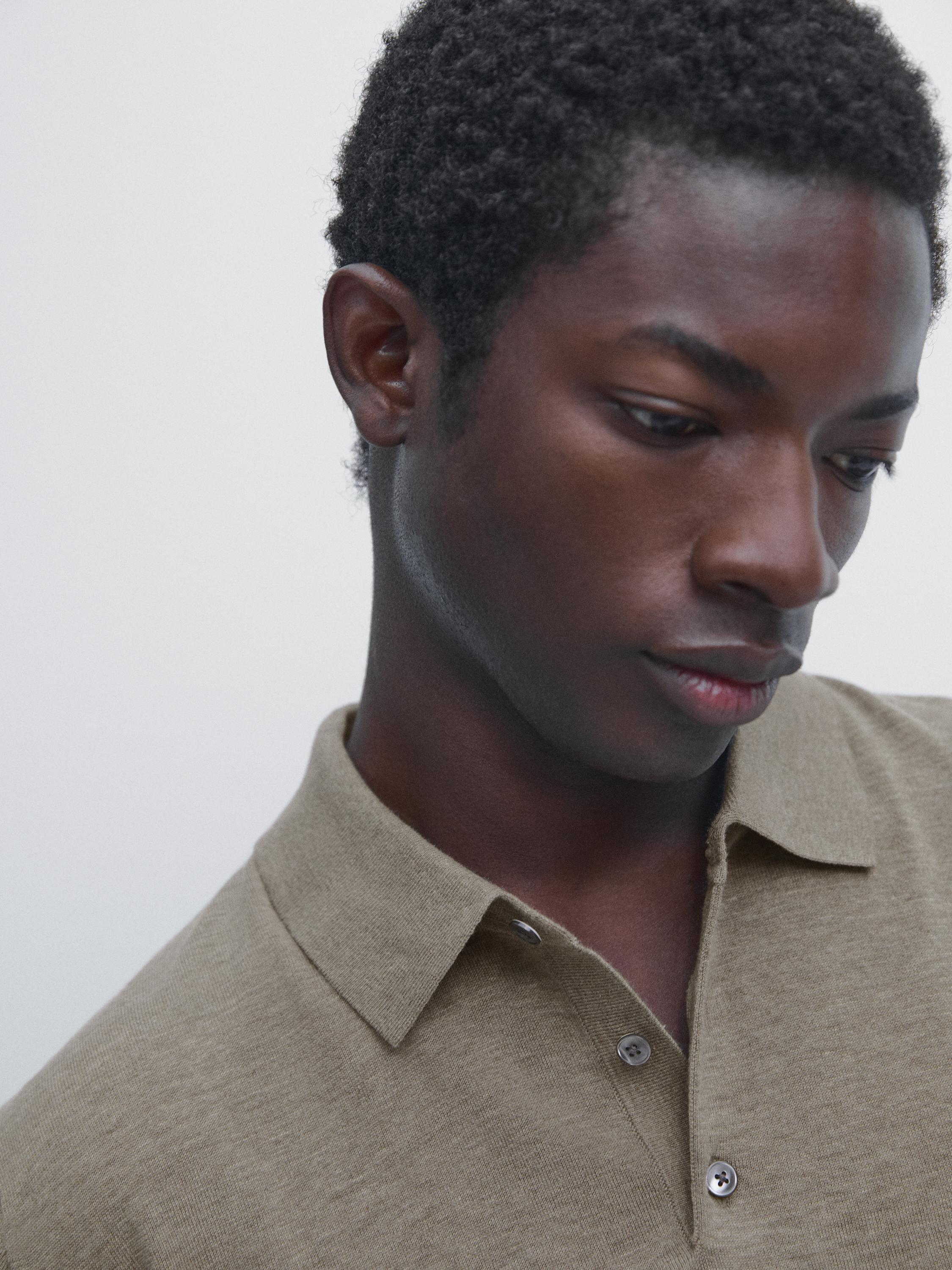 Поло из 100% хлопка. Короткие рукава. Воротник поло с пуговицами. Детали в рубчик .