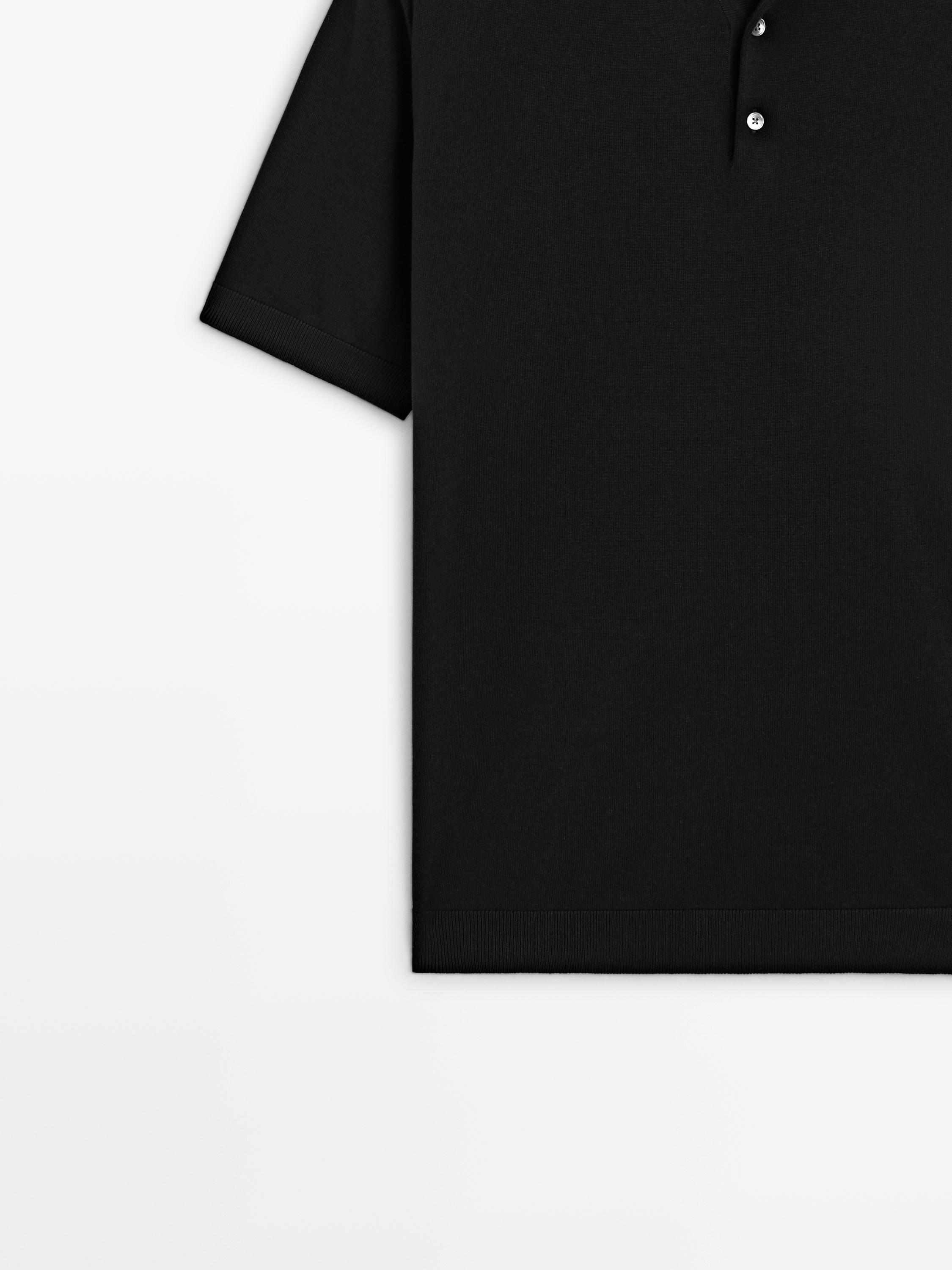 Поло из 100% хлопка. Короткие рукава. Воротник поло с пуговицами. Детали в рубчик .
