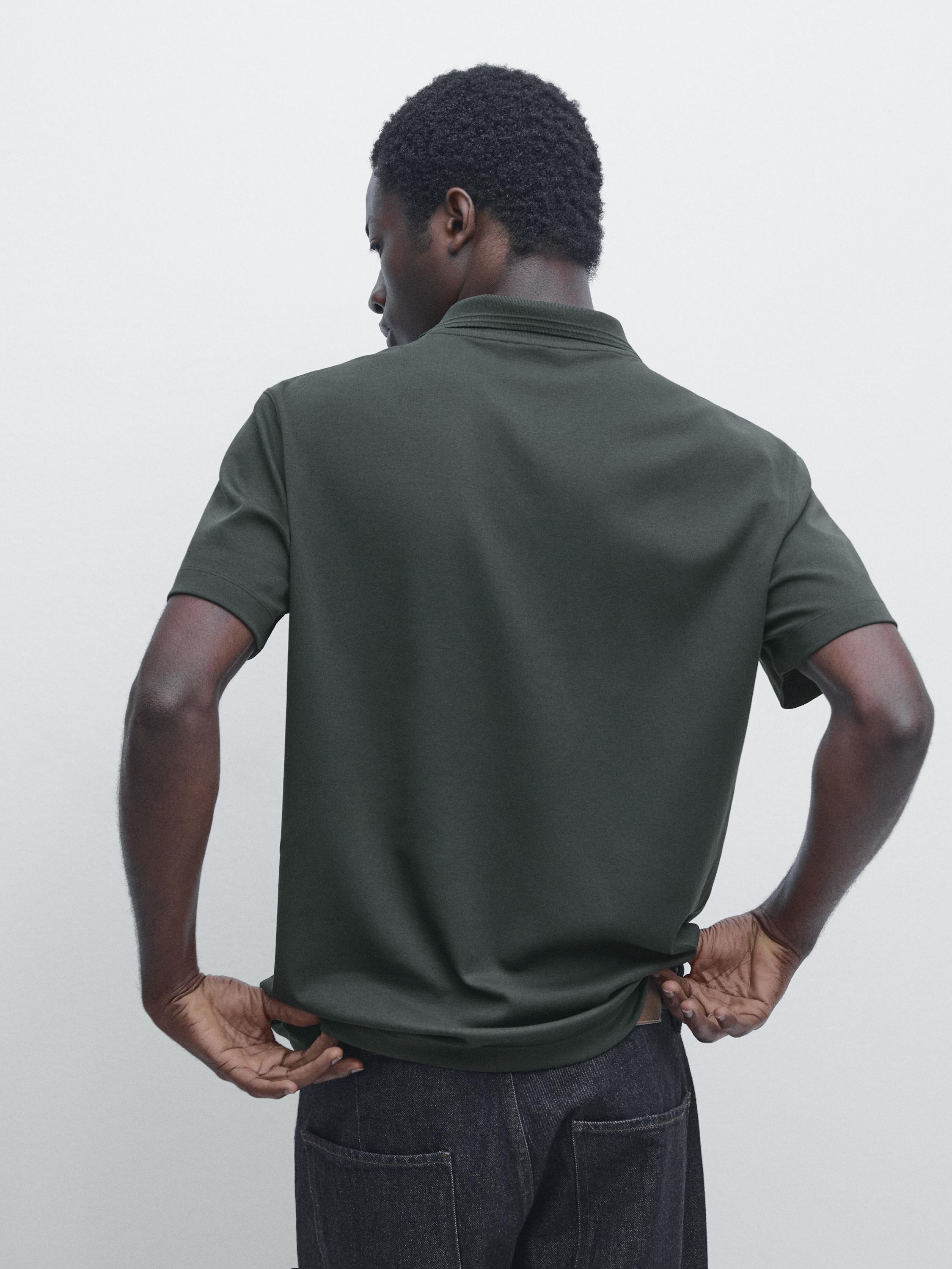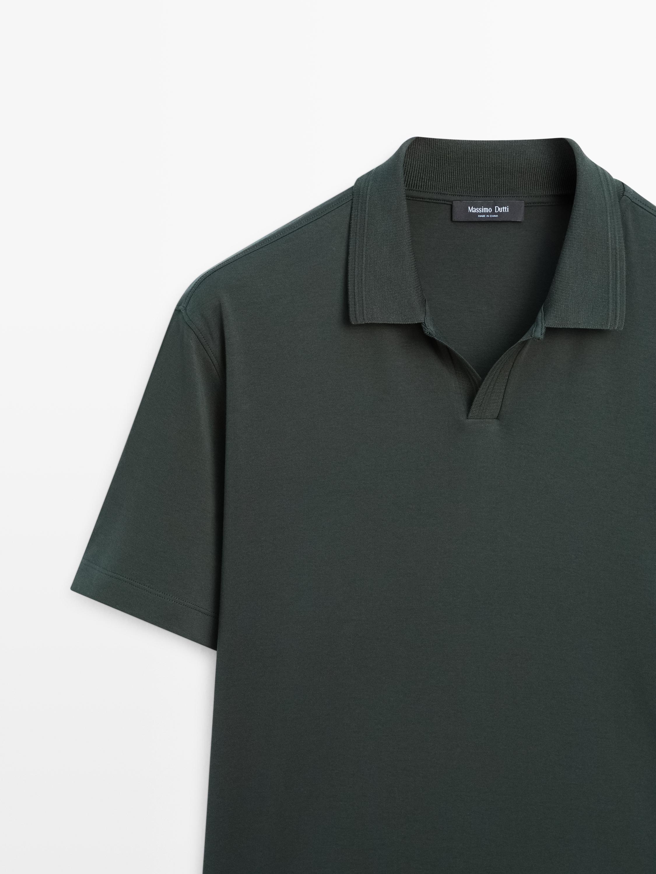 Massimo Dutti Поло из 100% хлопка с короткими рукавами, бутылочный