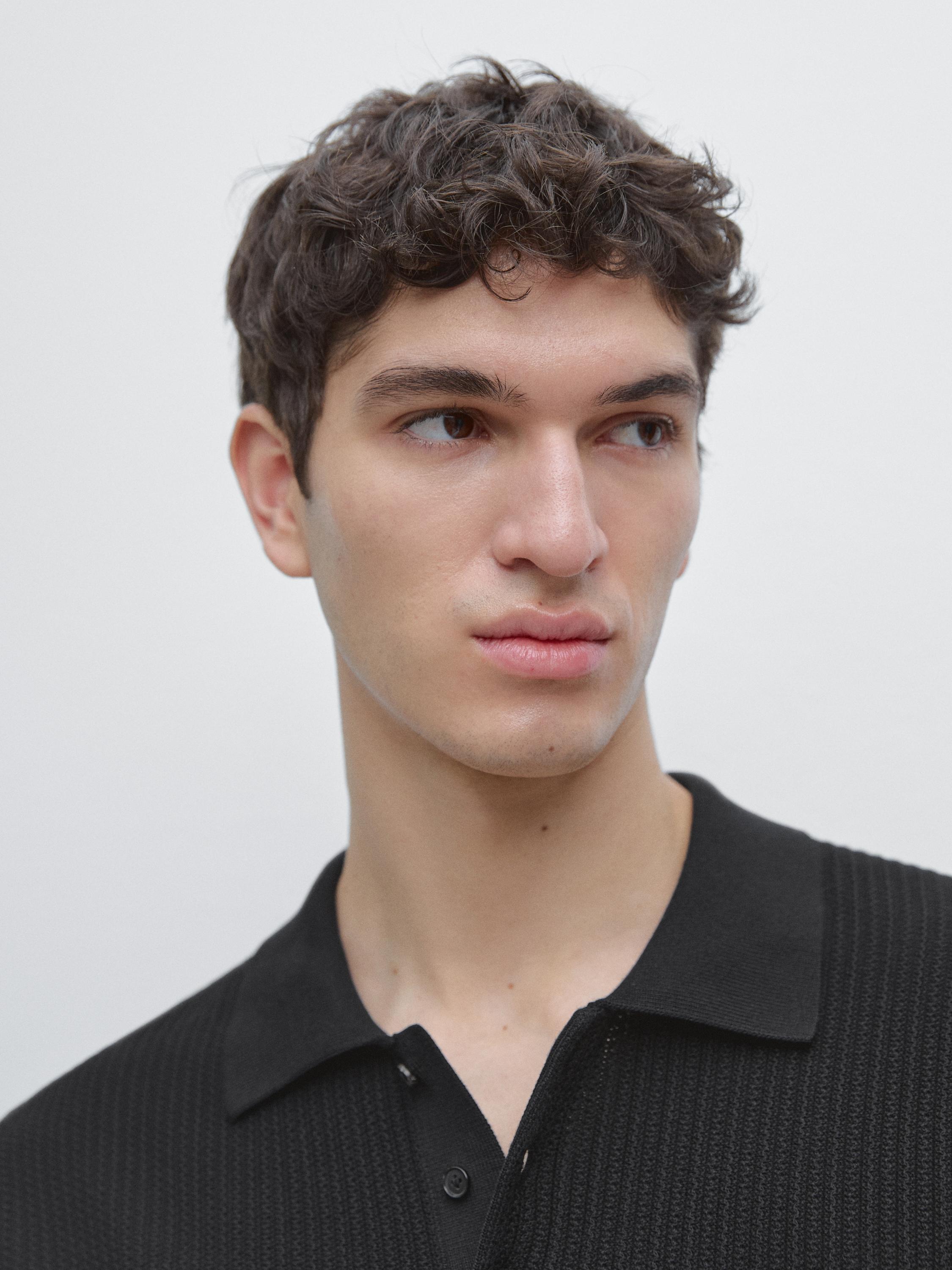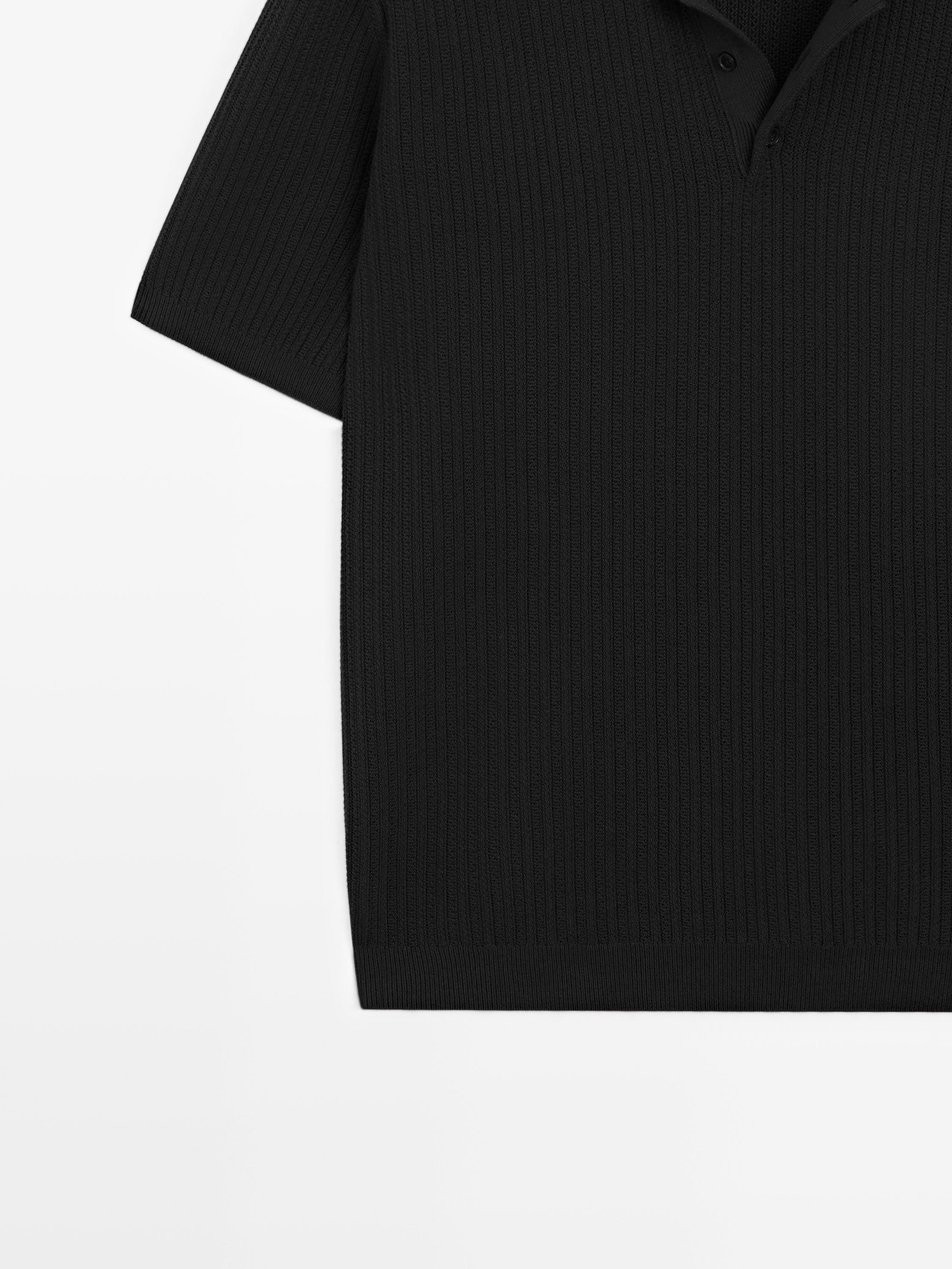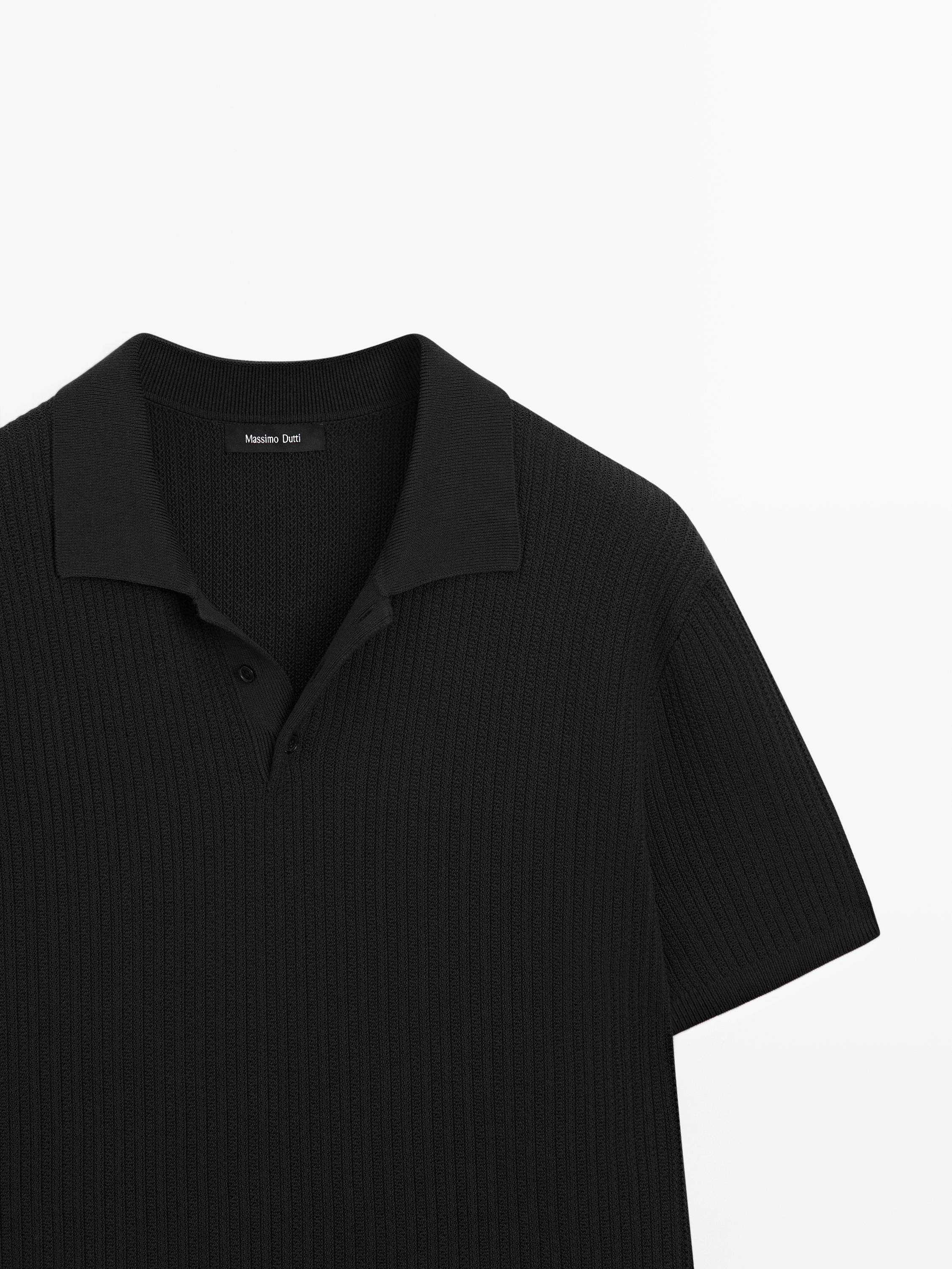 Massimo Dutti Поло из 100% хлопка с короткими рукавами, черный