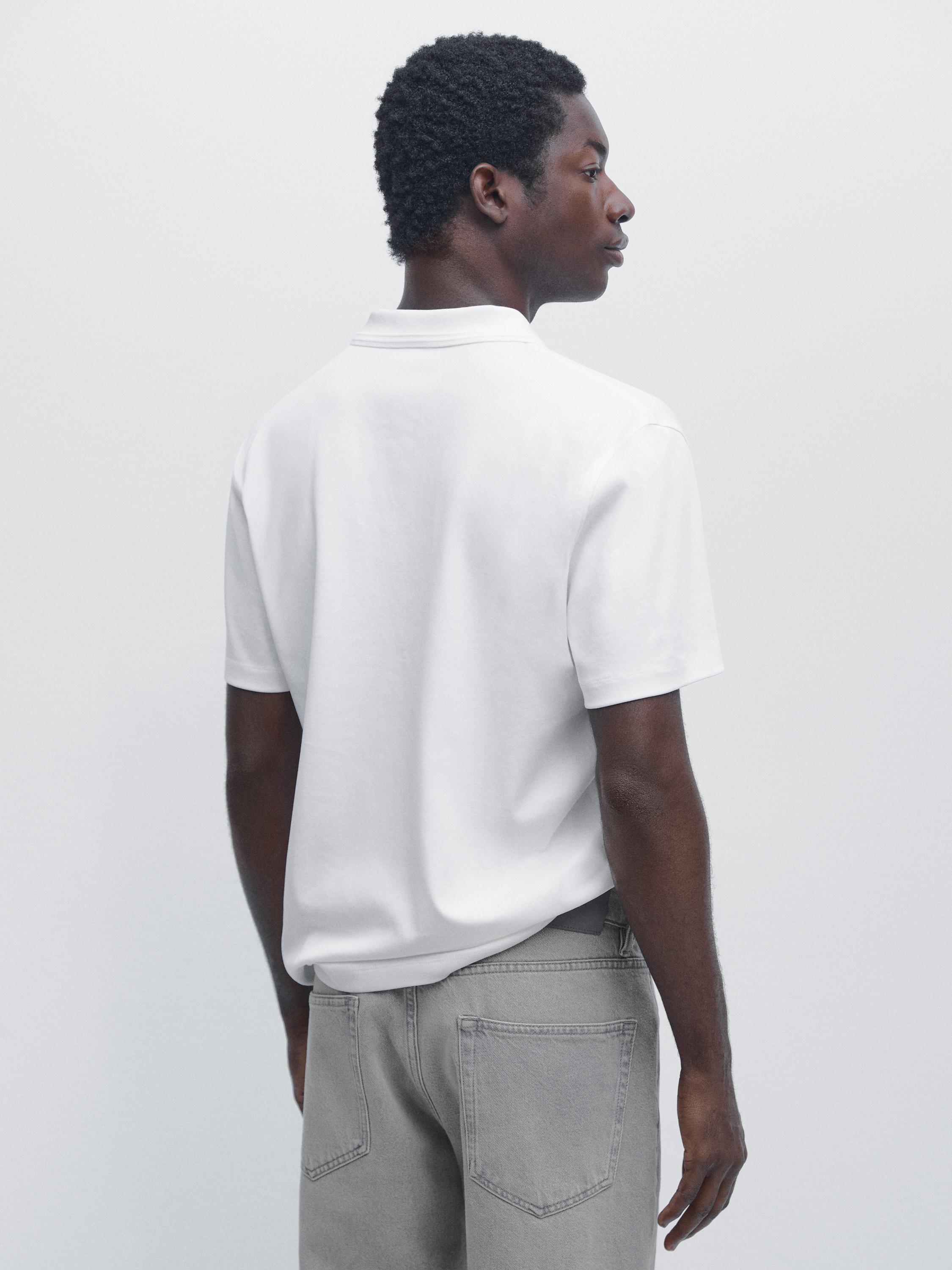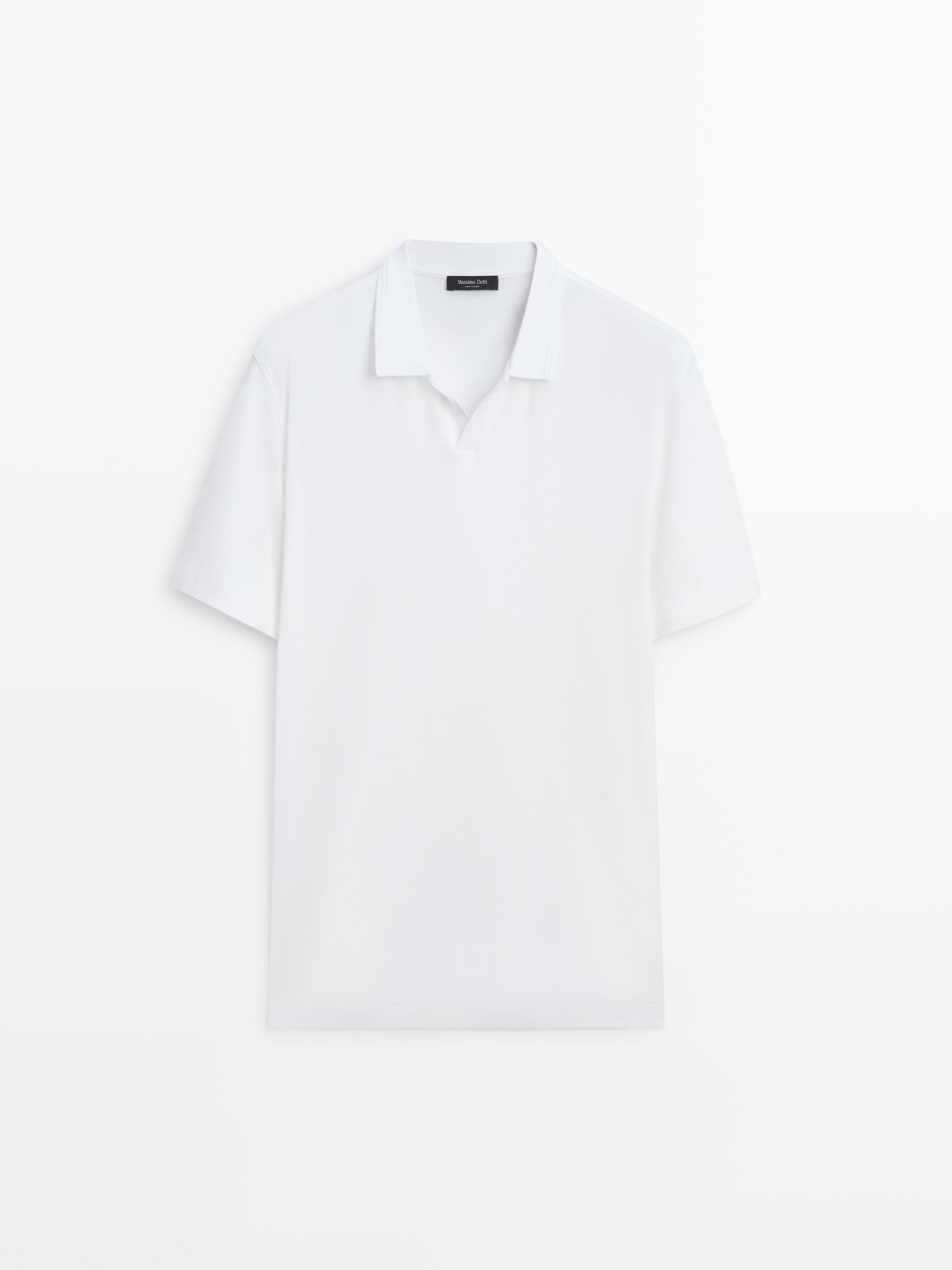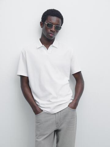 Massimo Dutti Поло из 100% хлопка с короткими рукавами, натуральный/кремовый