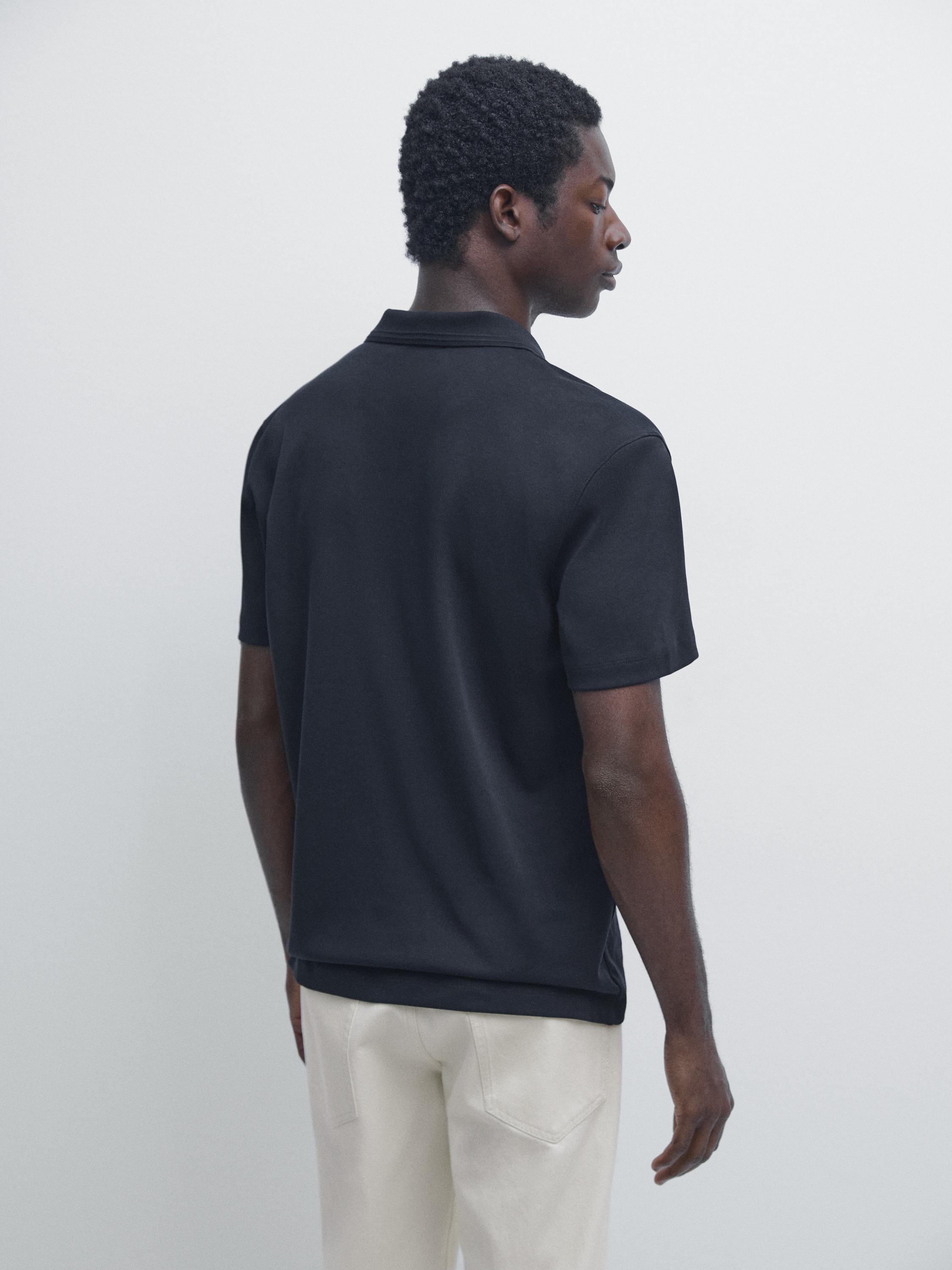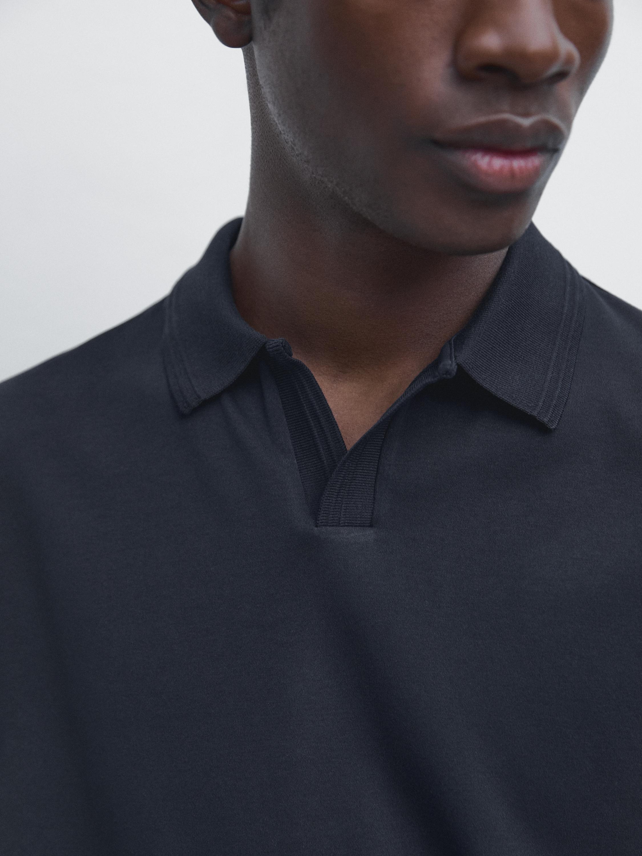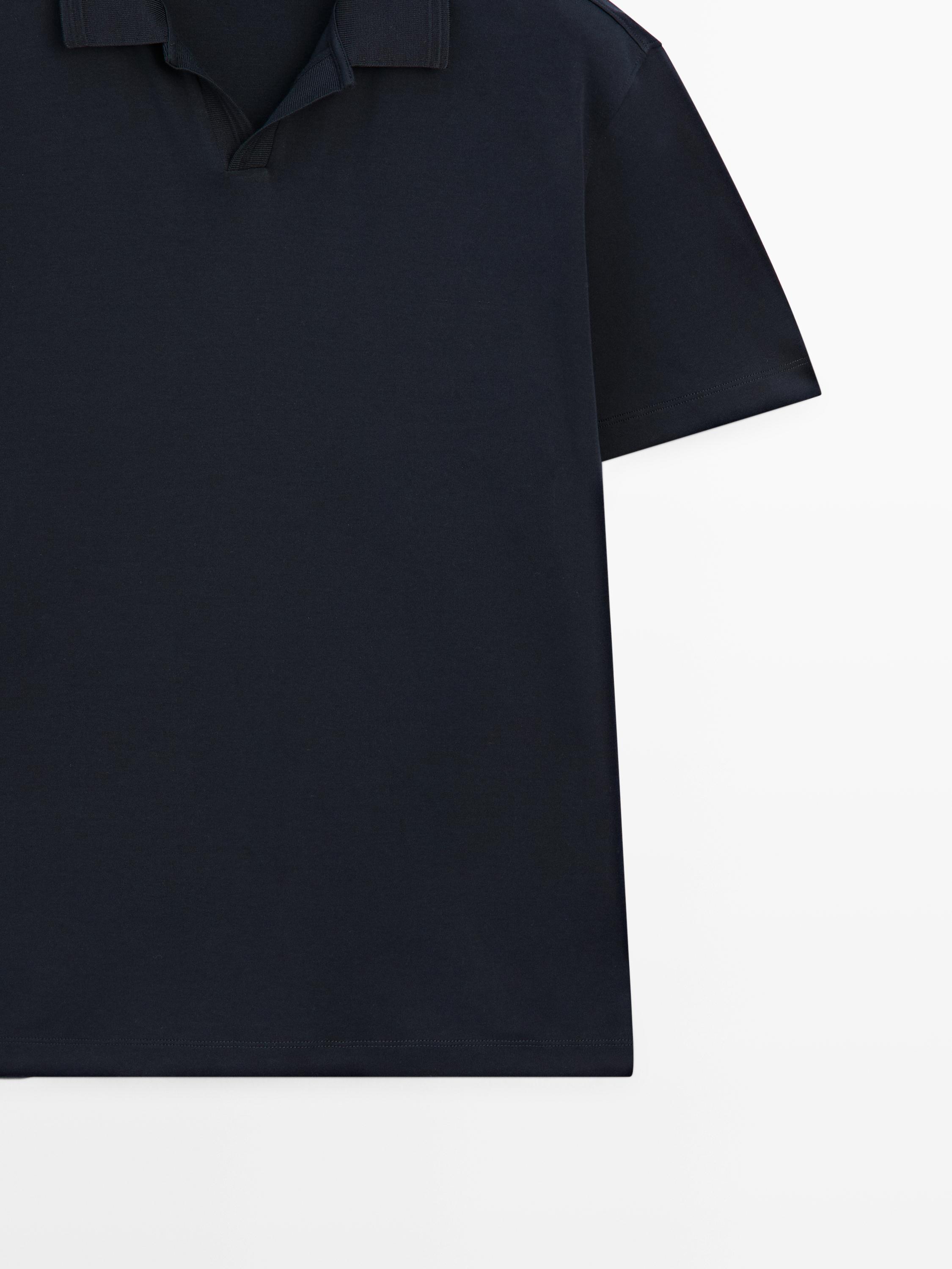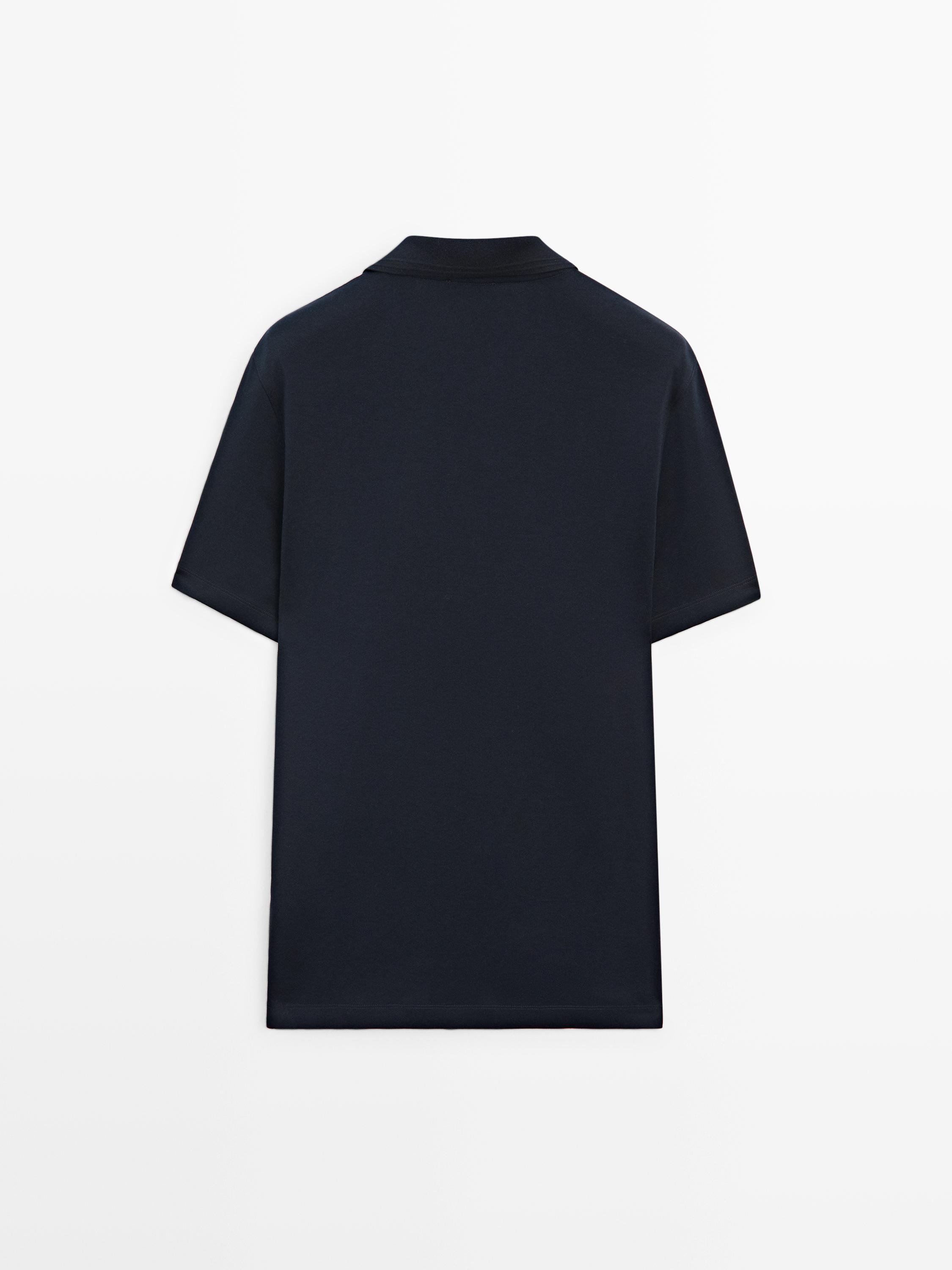 Massimo Dutti Поло из 100% хлопка с короткими рукавами, темно-синий