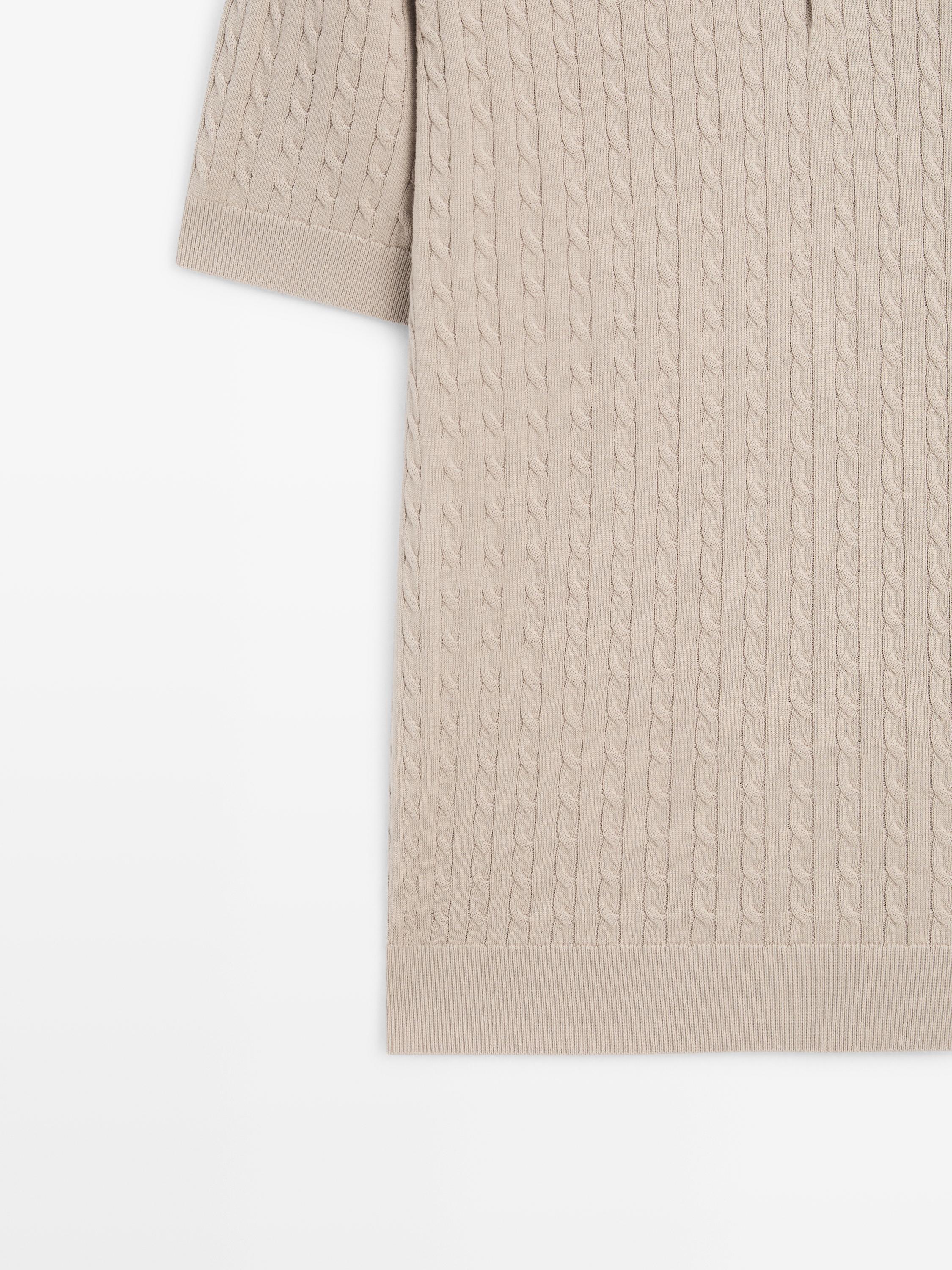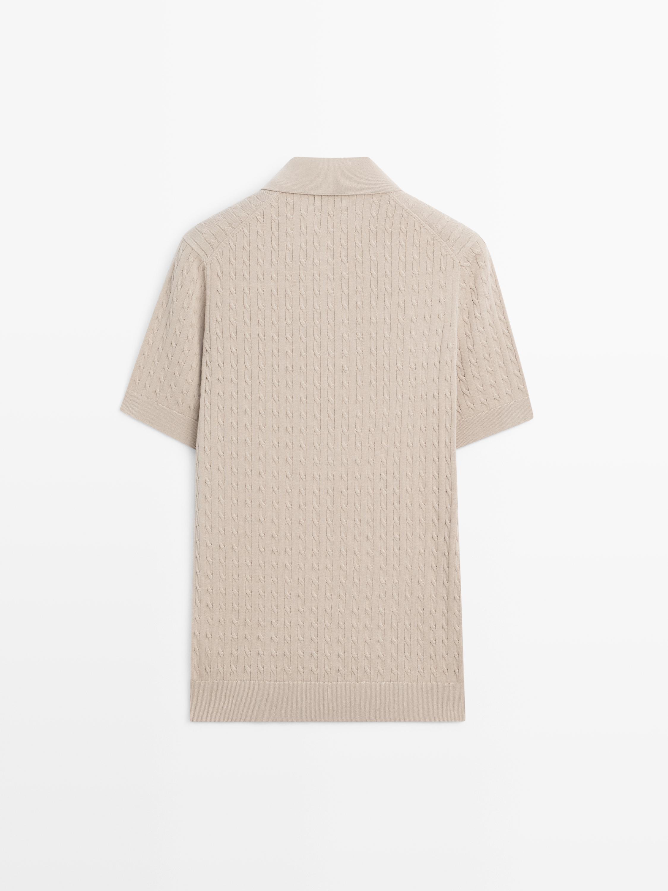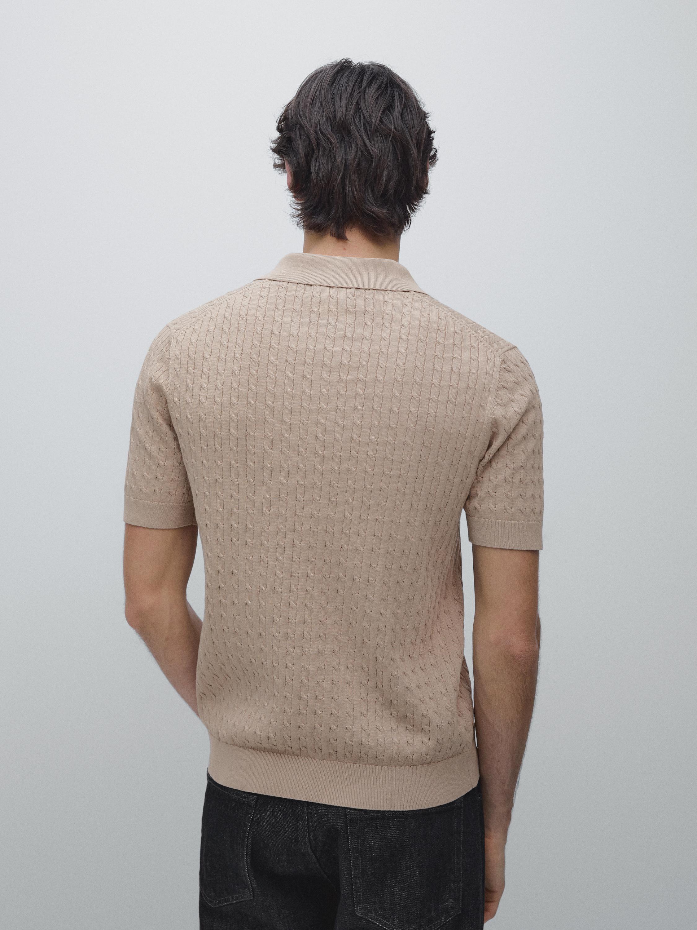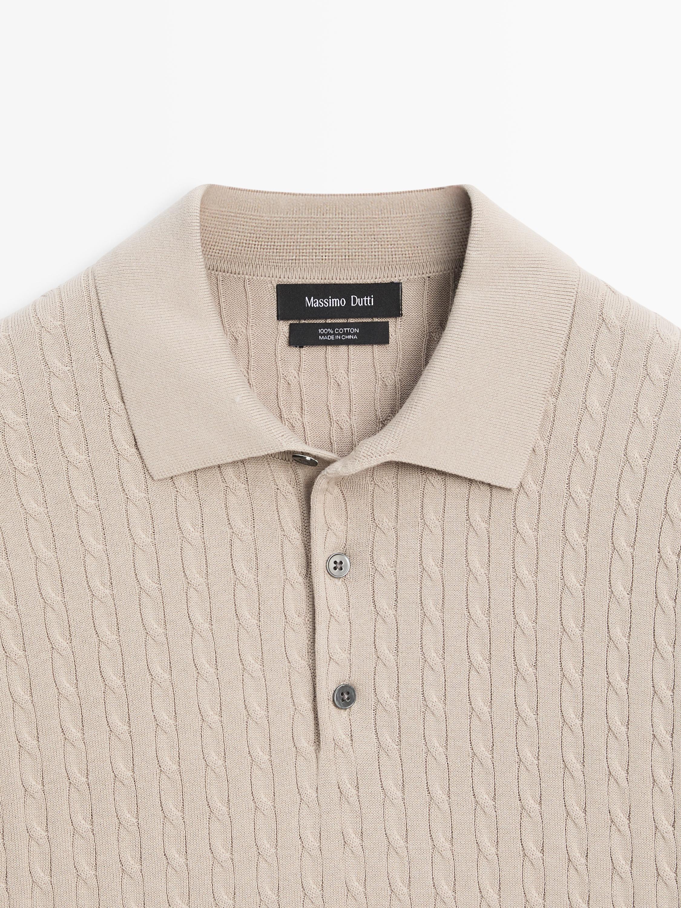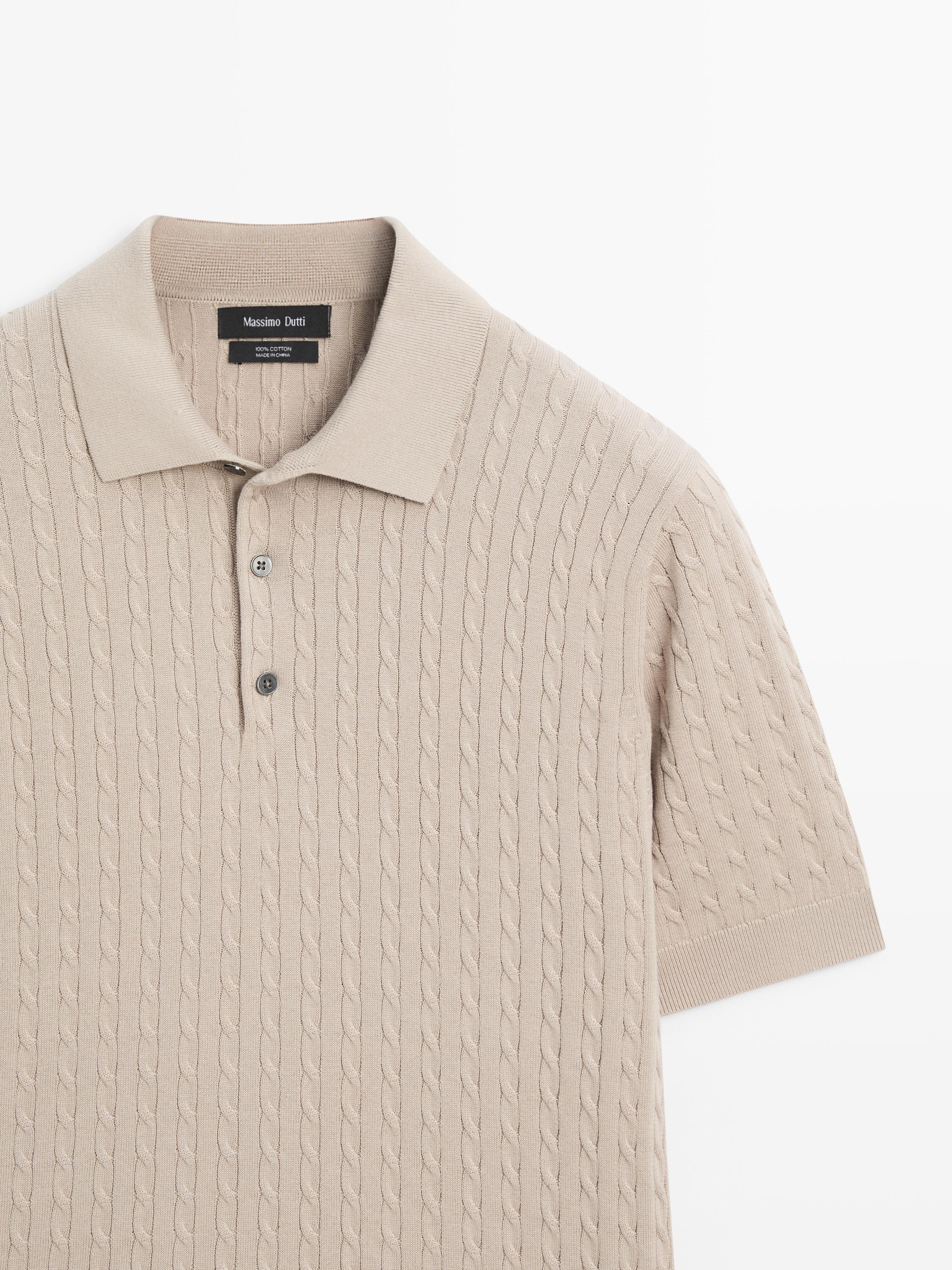 Massimo Dutti Поло из 100% хлопка с узором «косы», бежевый