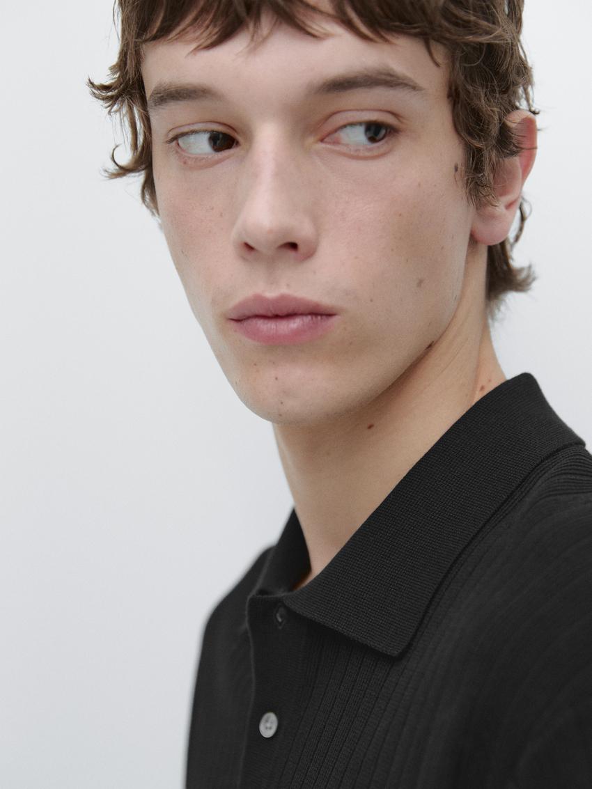 Massimo Dutti Поло из хлопковой трикотажной резинки, черный